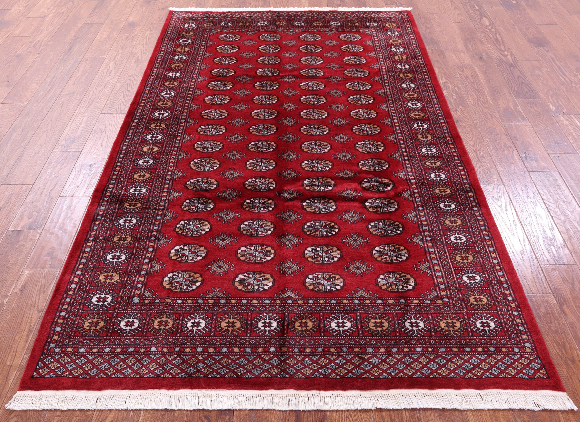 Bokharas are a type of handmade Pakistani rug; also known as Bukharas or Bokaras. Most are based on Turkmen prototypes called Tekkes. Pakistani Bokhara rugs are among the most popular handmade rugs in the world. They are popular for their soft, luxurious feel, heavy pile, attractive colors and appearance that consist of repeating octagonal figures called guls, usually on fields of burgundy red, gray blue, or sometimes green.