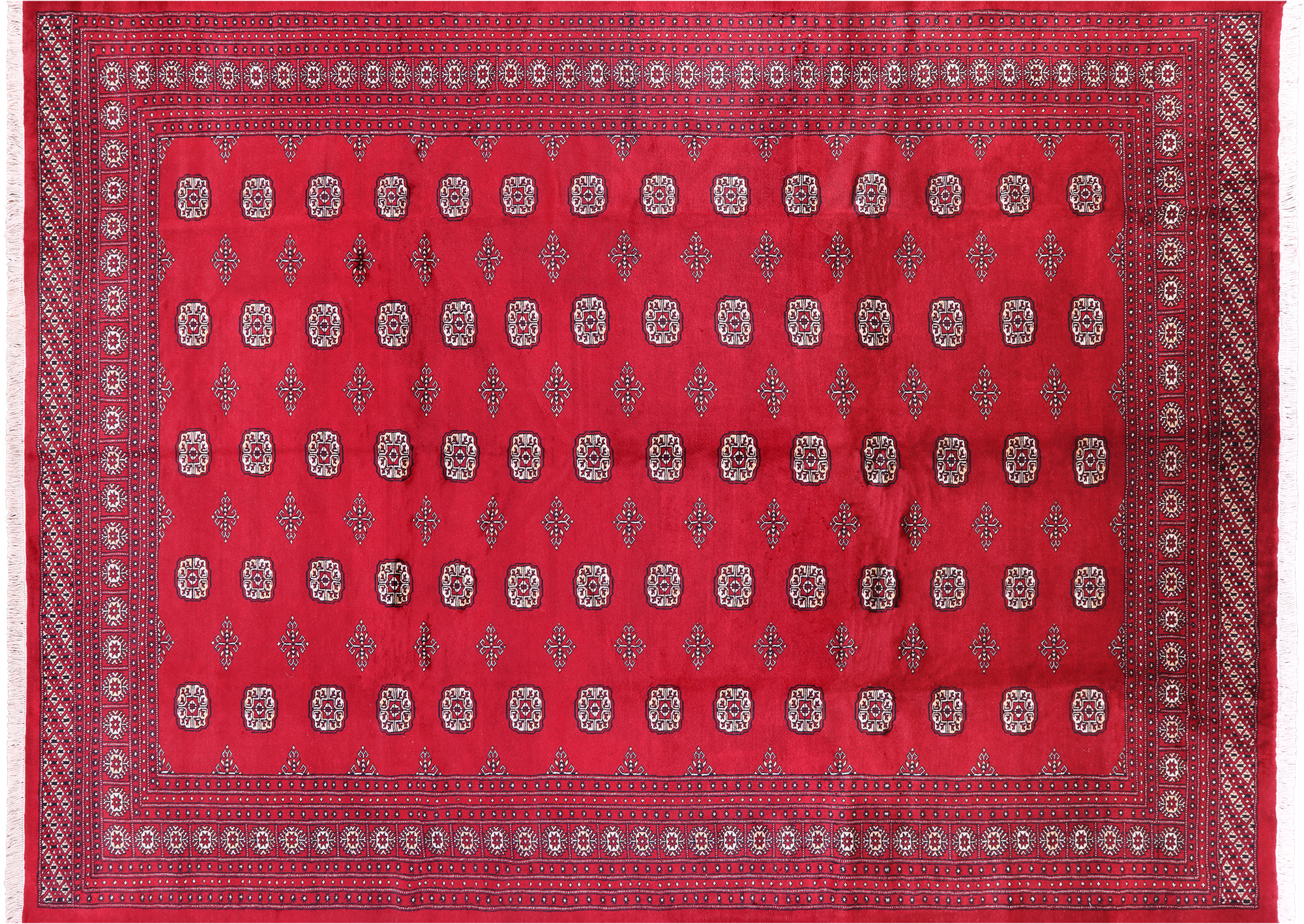 Bokharas are a type of handmade Pakistani rug; also known as Bukharas or Bokaras. Most are based on Turkmen prototypes called Tekkes. Pakistani Bokhara rugs are among the most popular handmade rugs in the world. They are popular for their soft, luxurious feel, heavy pile, attractive colors and appearance that consist of repeating octagonal figures called guls, usually on fields of burgundy red, gray blue, or sometimes green.