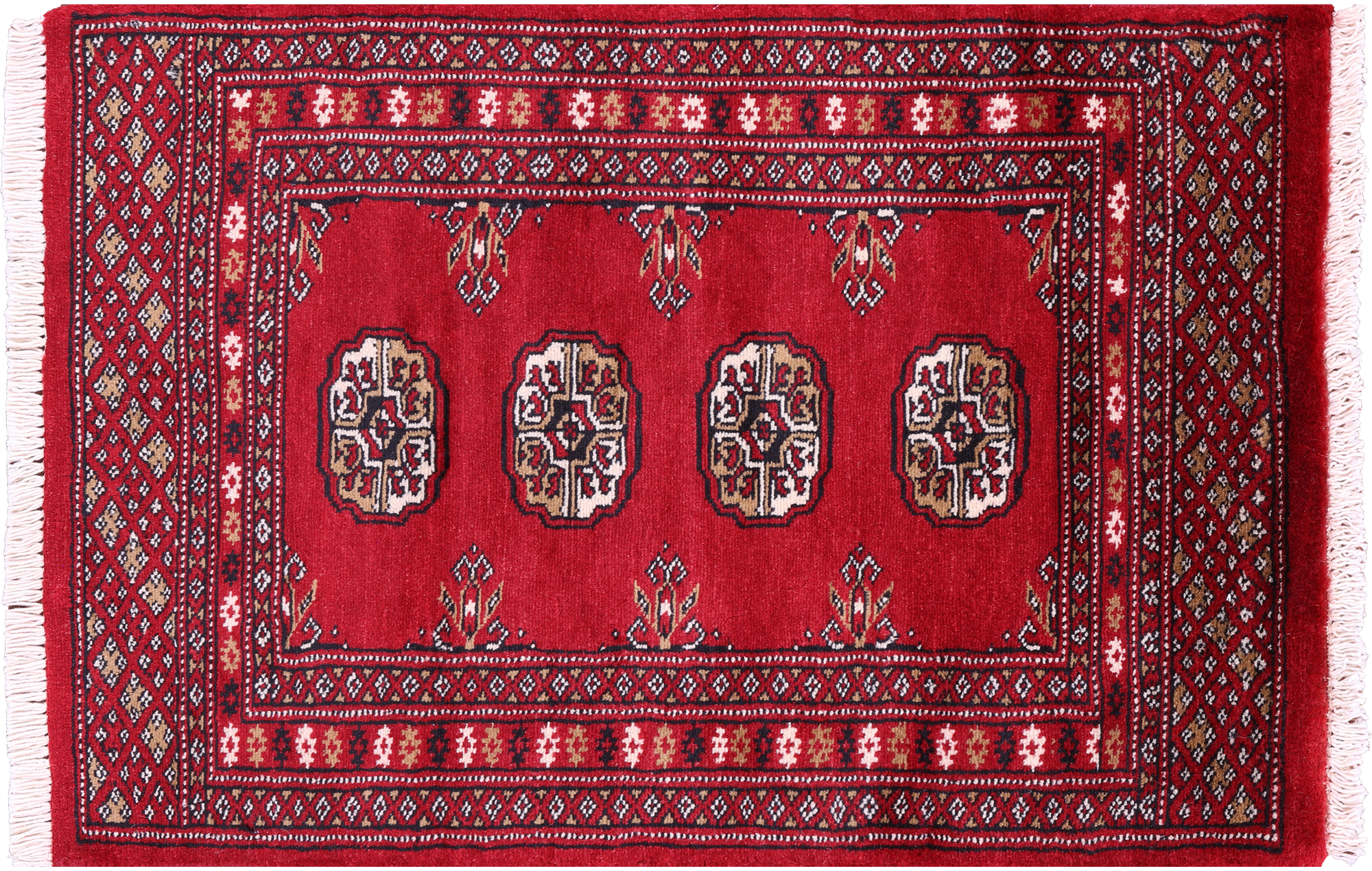Red 2' 0" X 3' 0" Silky Bokhara Handmade Wool Rug - Q23850