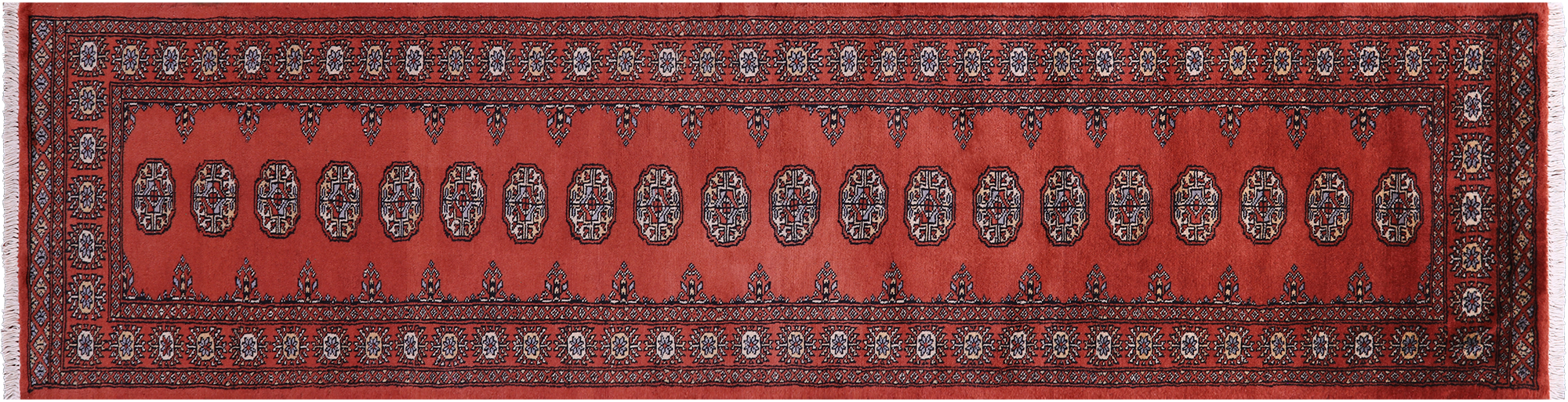 Rust 2' 6" X 10' 1" Runner Silky Bokhara Handmade Wool Rug - Q23881