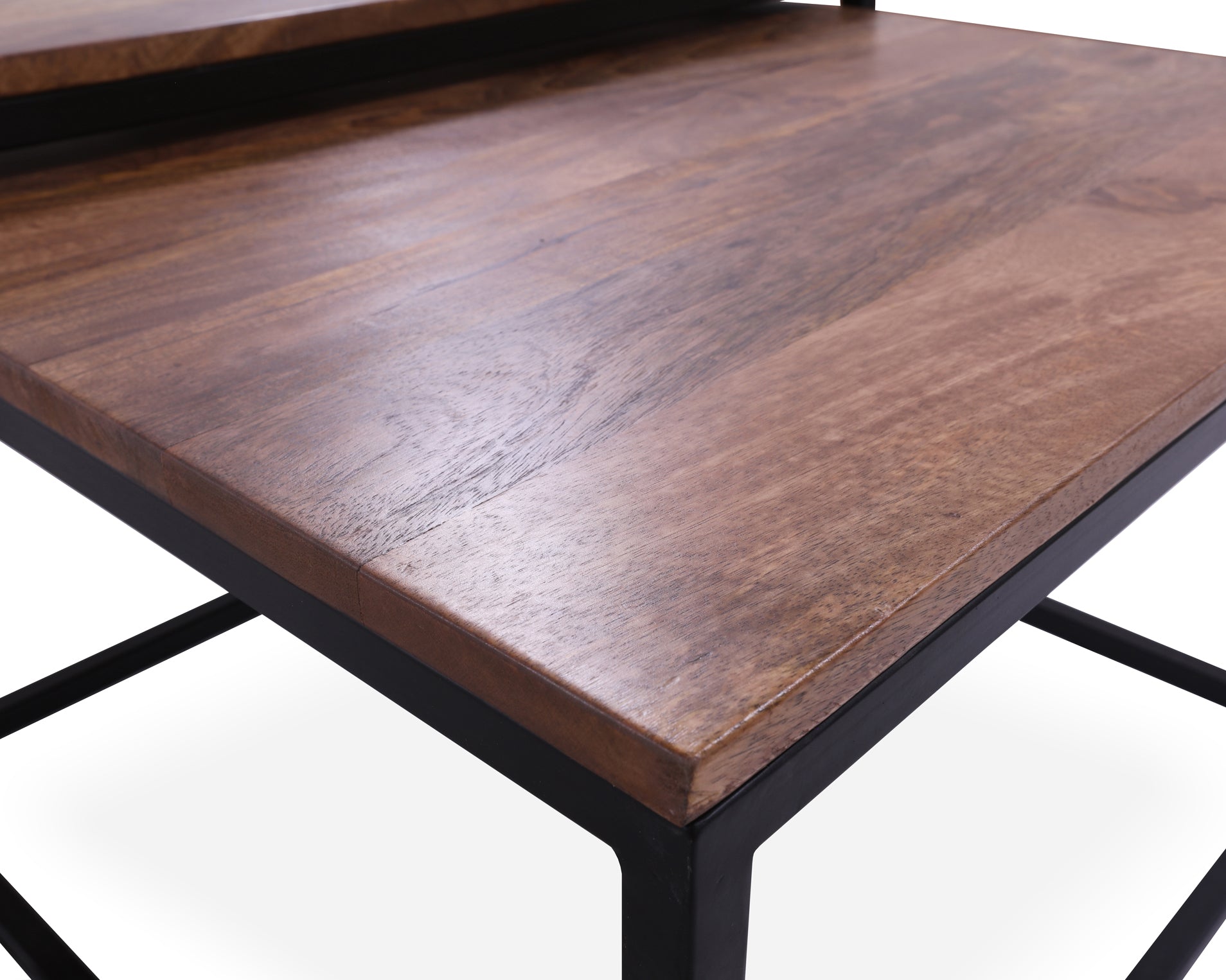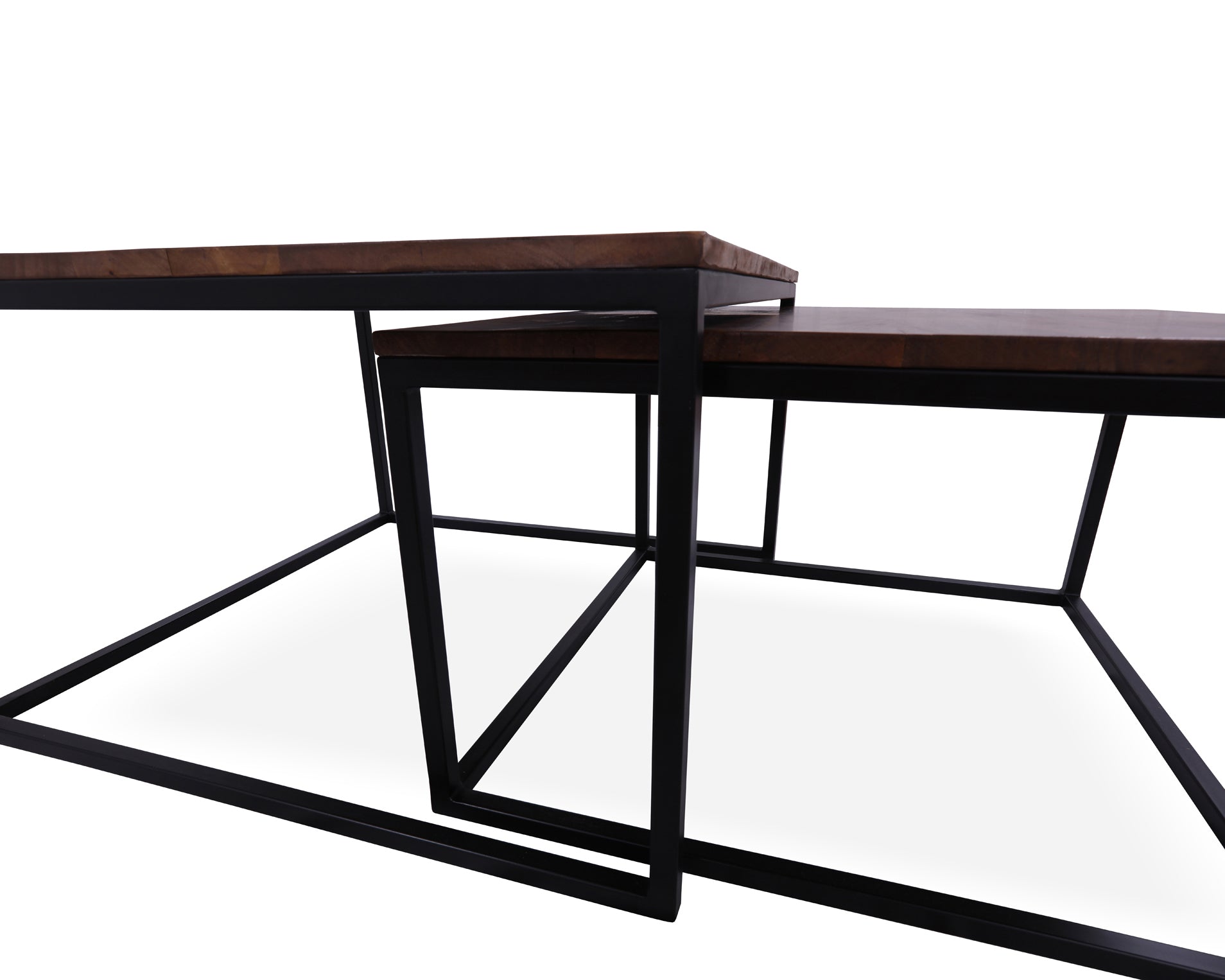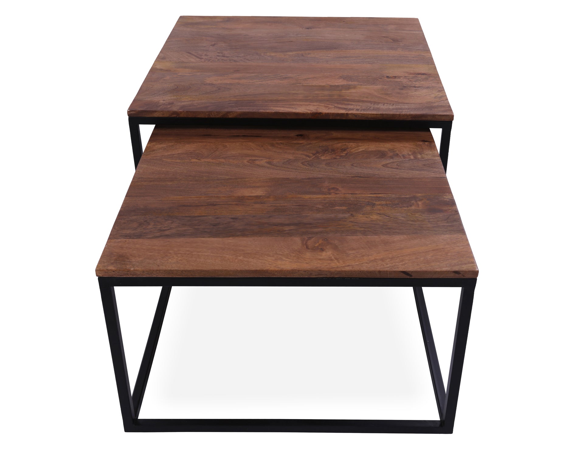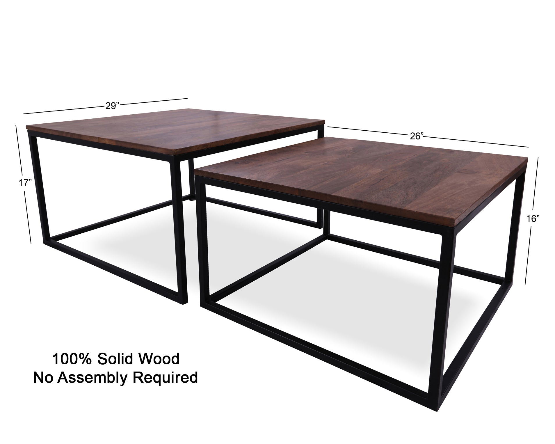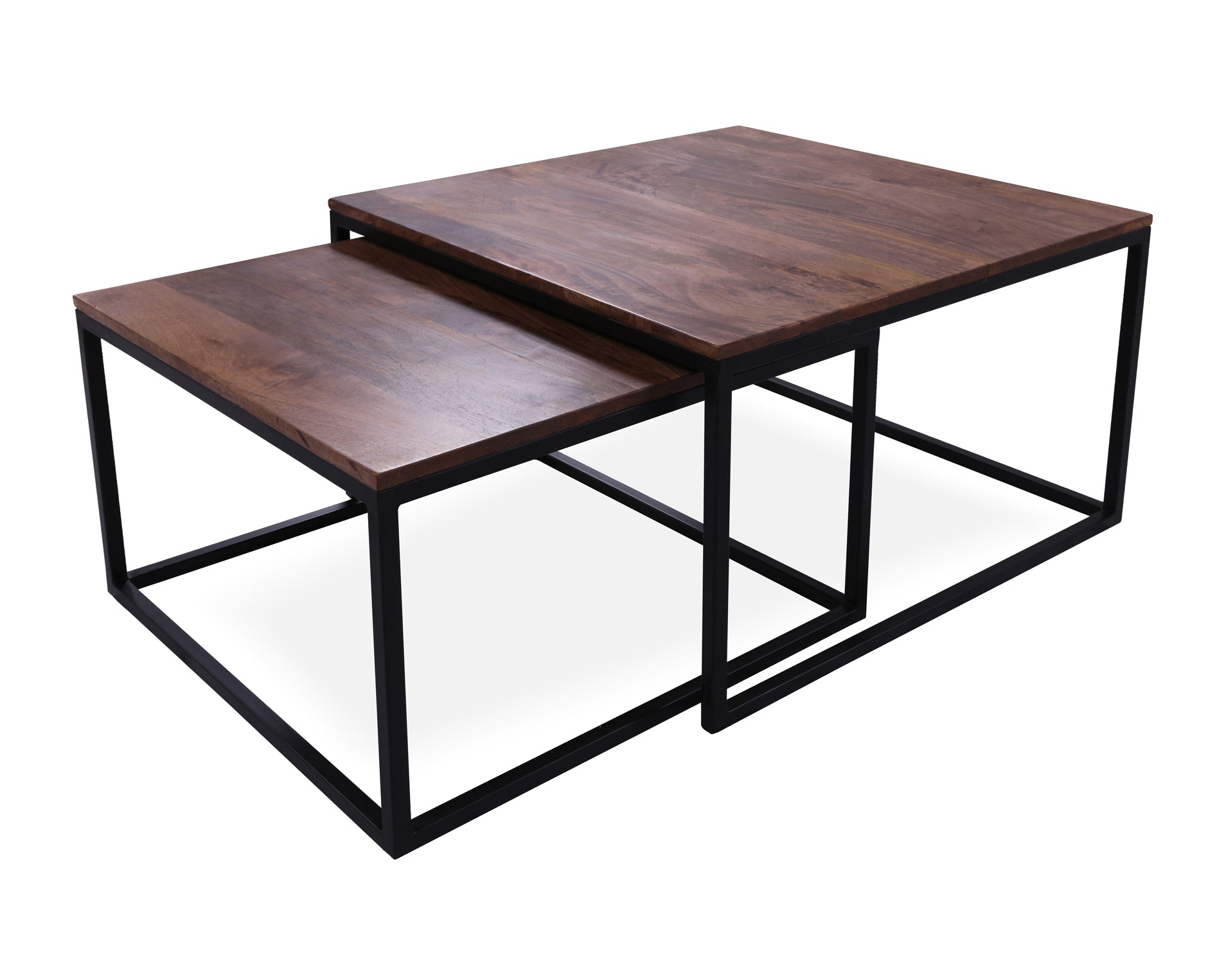 Add style and functionality to your living space with this elegant 2-piece coffee table and nesting table set. Featuring solid wood tops and sturdy metal legs, it combines natural warmth with a modern design. The nesting table easily slides under the larger table to save space when not in use, making it perfect for both small and large living rooms. Durable, versatile, and stylish, this set is a great addition to any modern home.