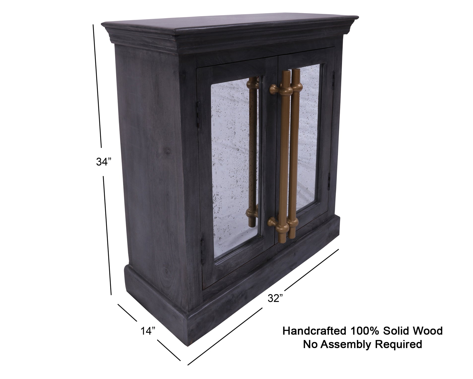 Solid Wood Handcrafted Sideboard Cabinet With Mirror - 34"H x 32"W x 14"D