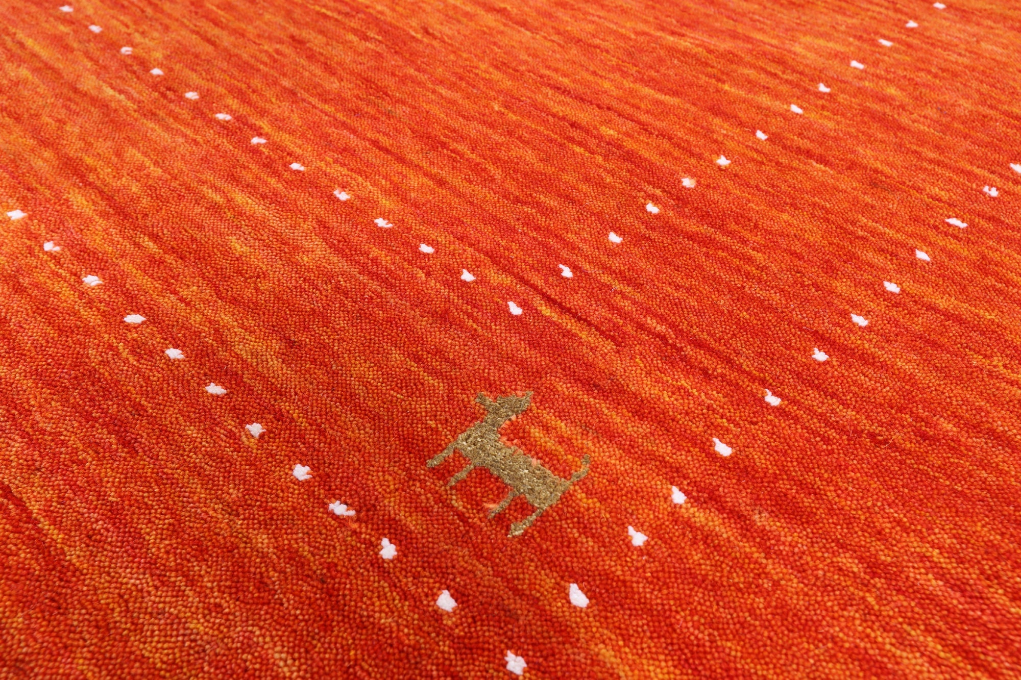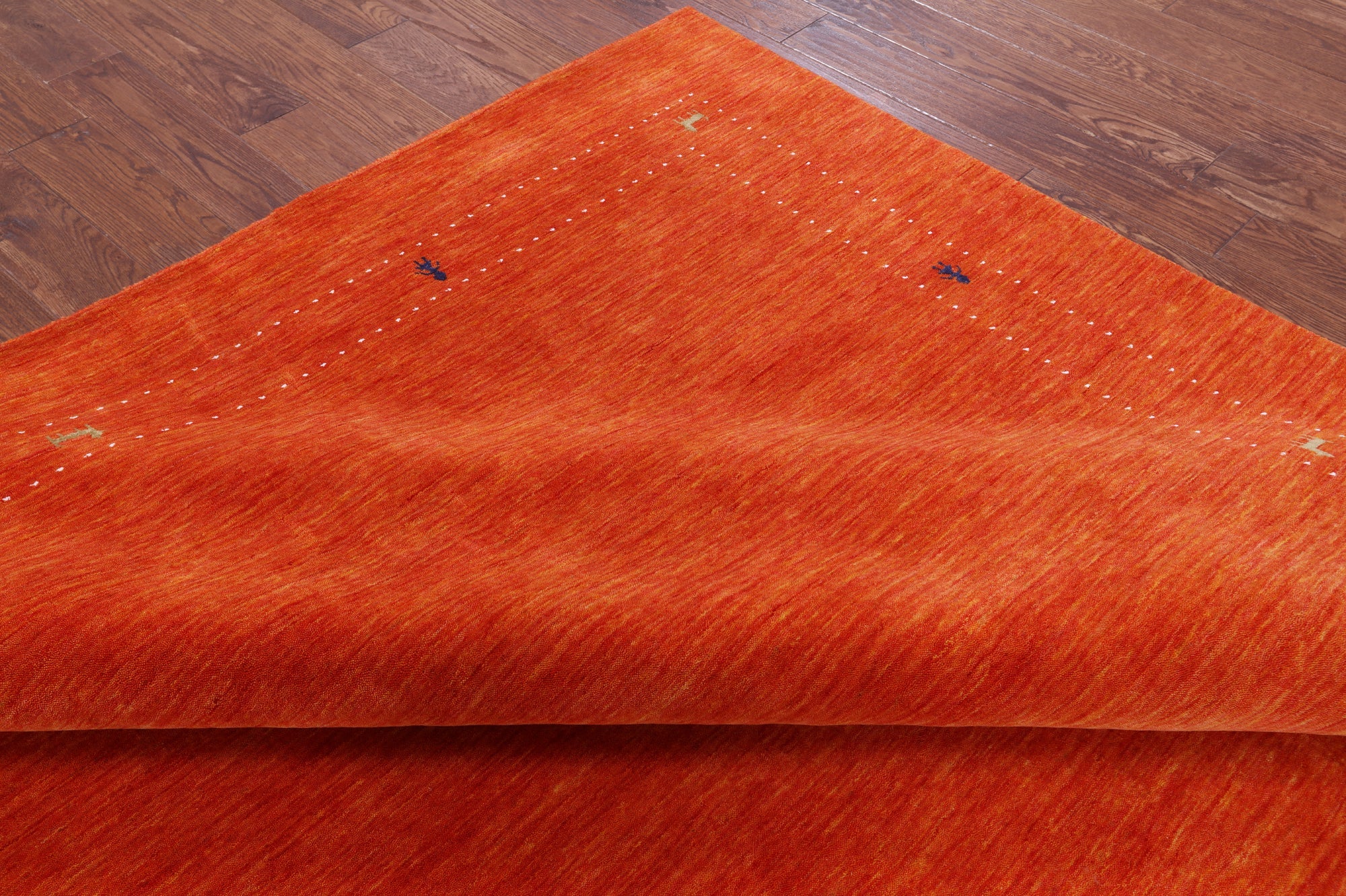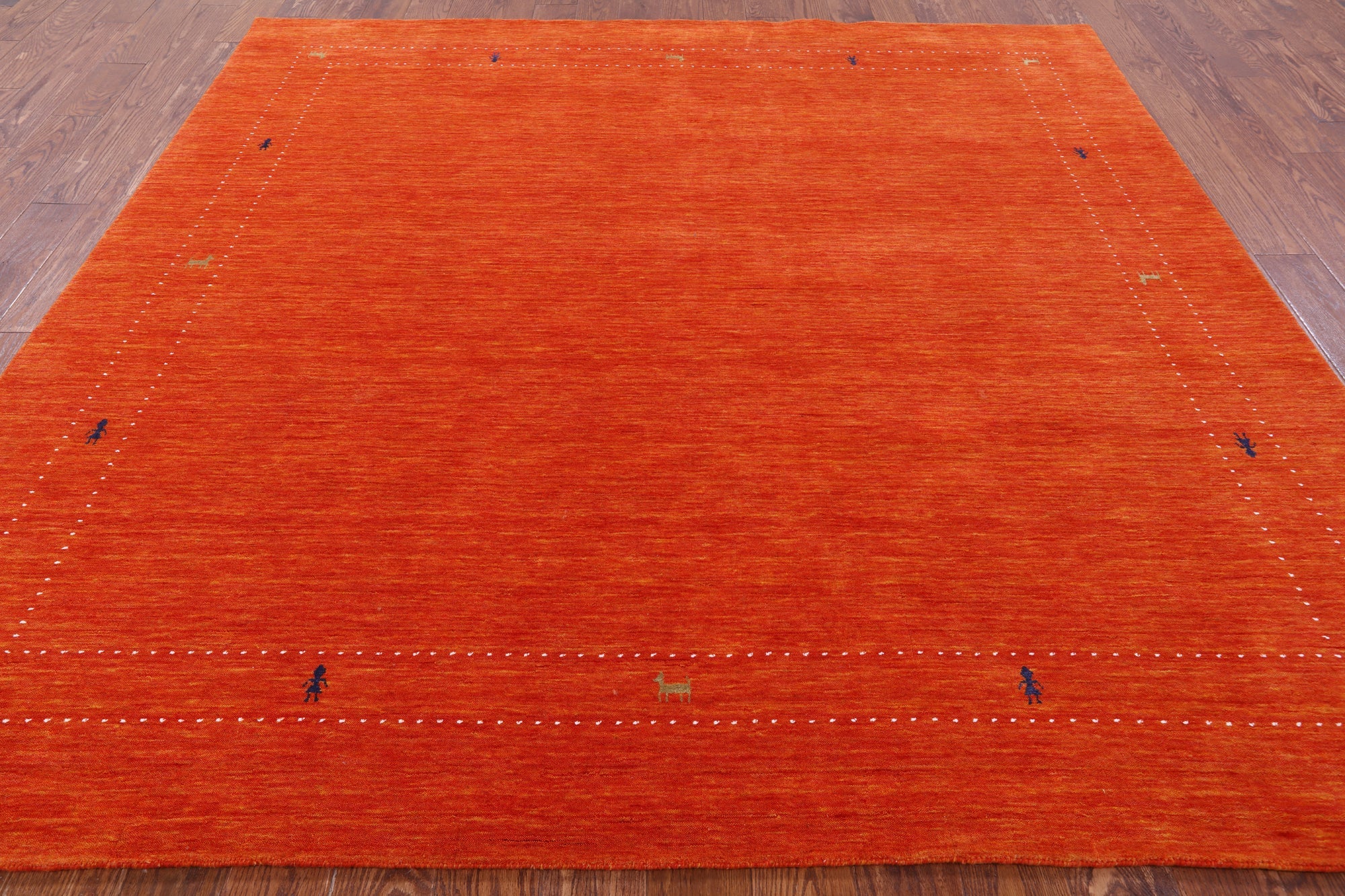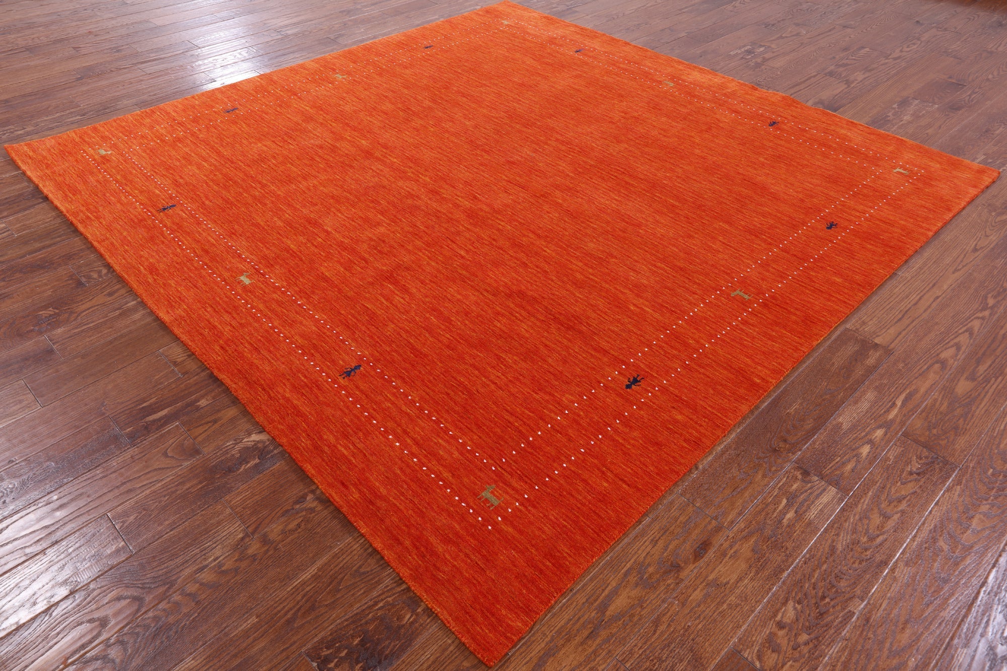 Orange 9' Square Handmade Persian Gabbeh Wool Rug - Q6977