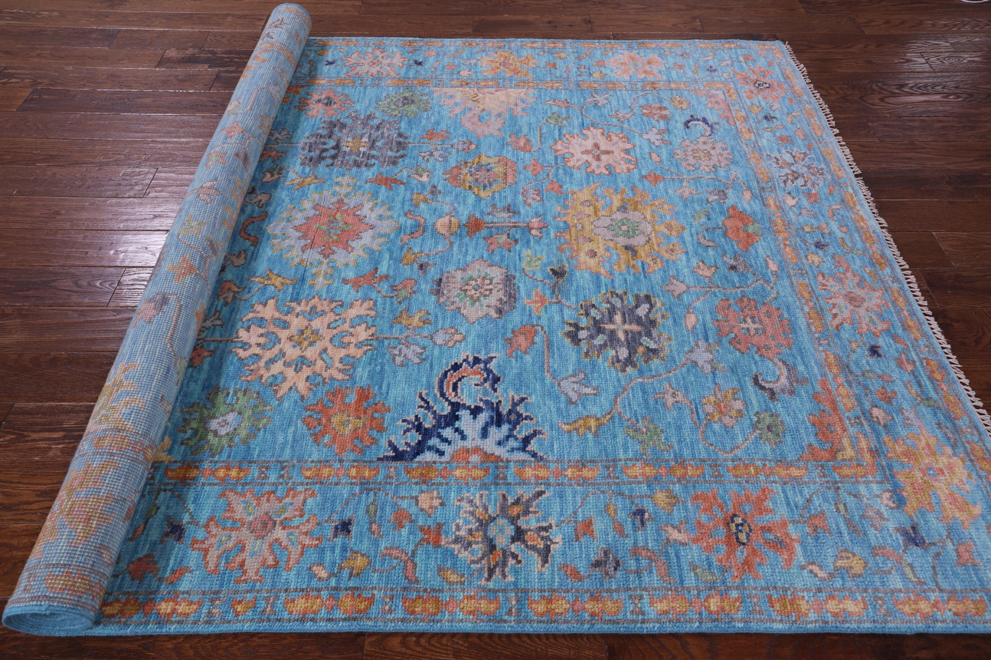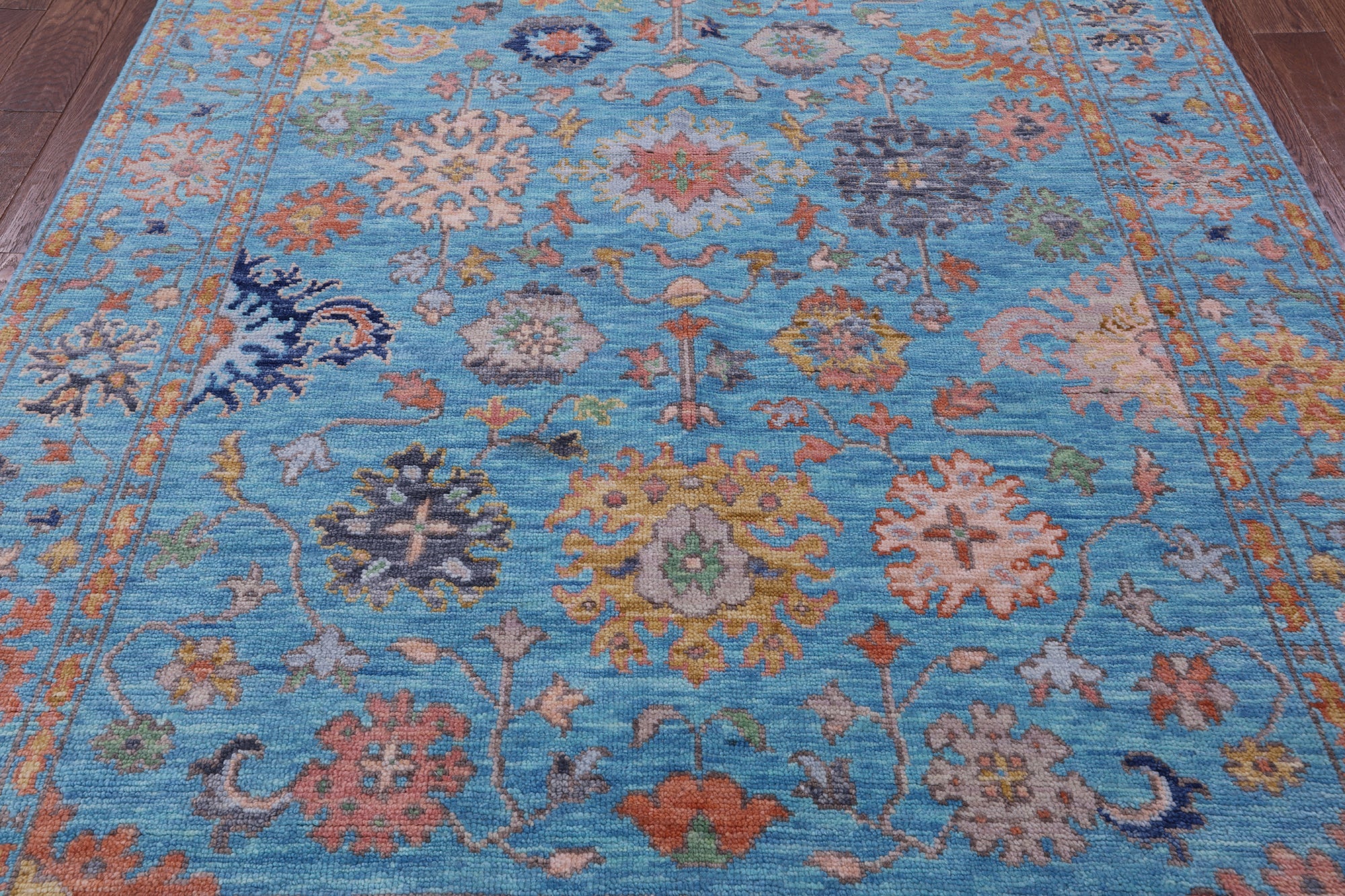 Blue Turkish Angora Oushak Hand-Knotted Wool Rug 6' 4" X 9' 1" - Q14954 is backordered and will ship as soon as it is back in stock.