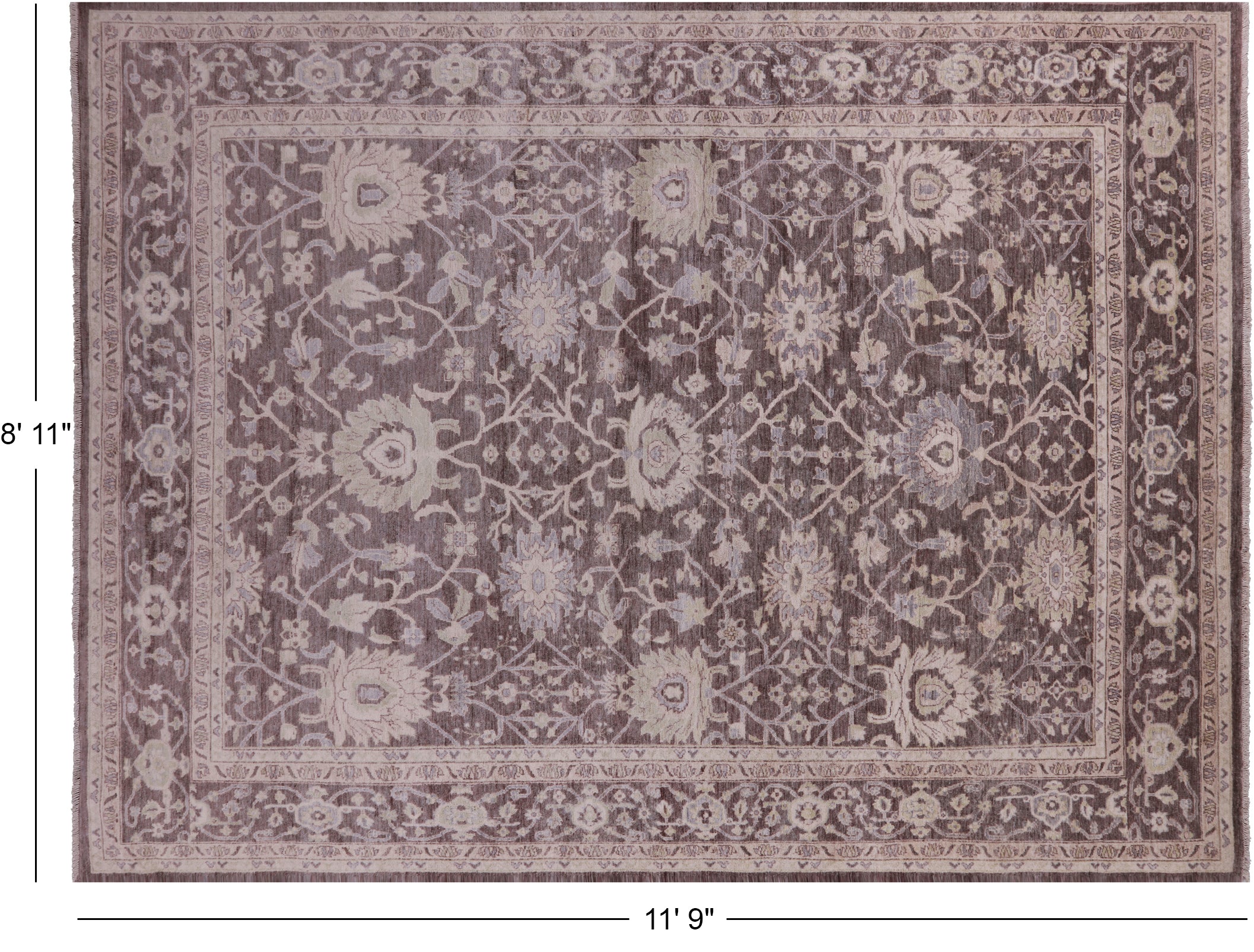 Hand Knotted Turkish Oushak Wool Rug 8' 11" X 11' 9" - Q9546