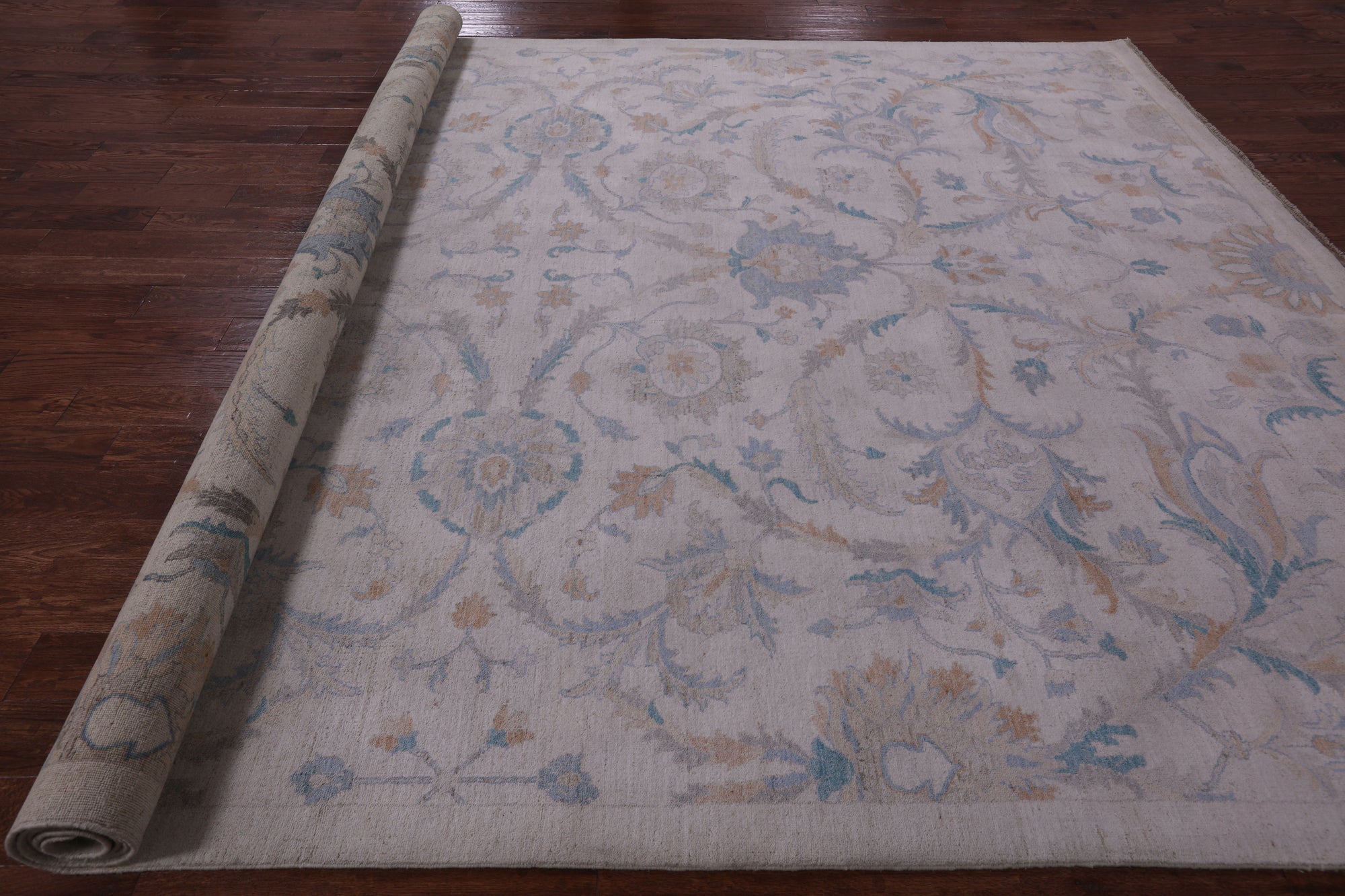 Ivory Hand-Knotted Turkish Oushak Wool Rug 9' 11" X 13' 11" - Q9540