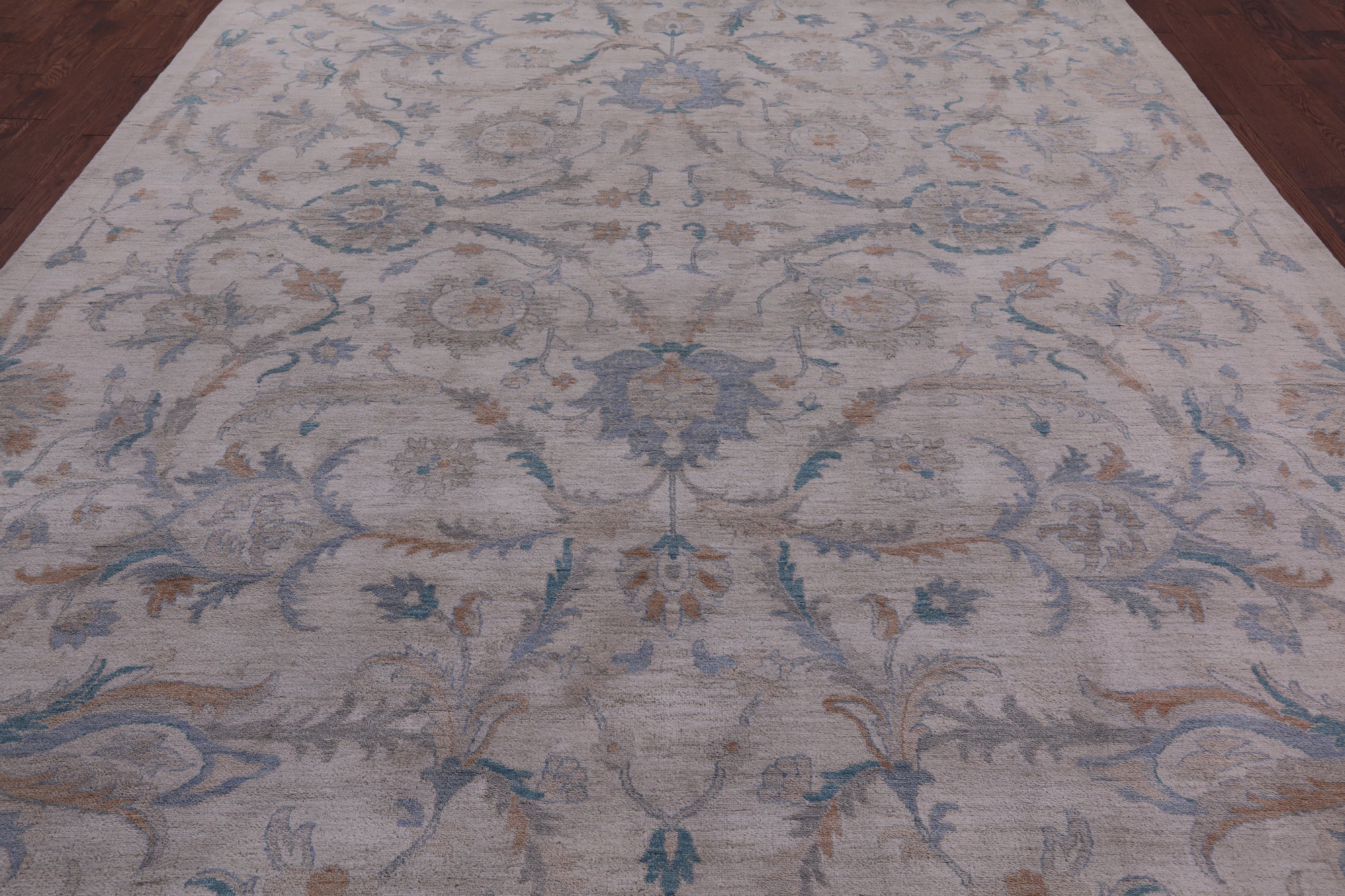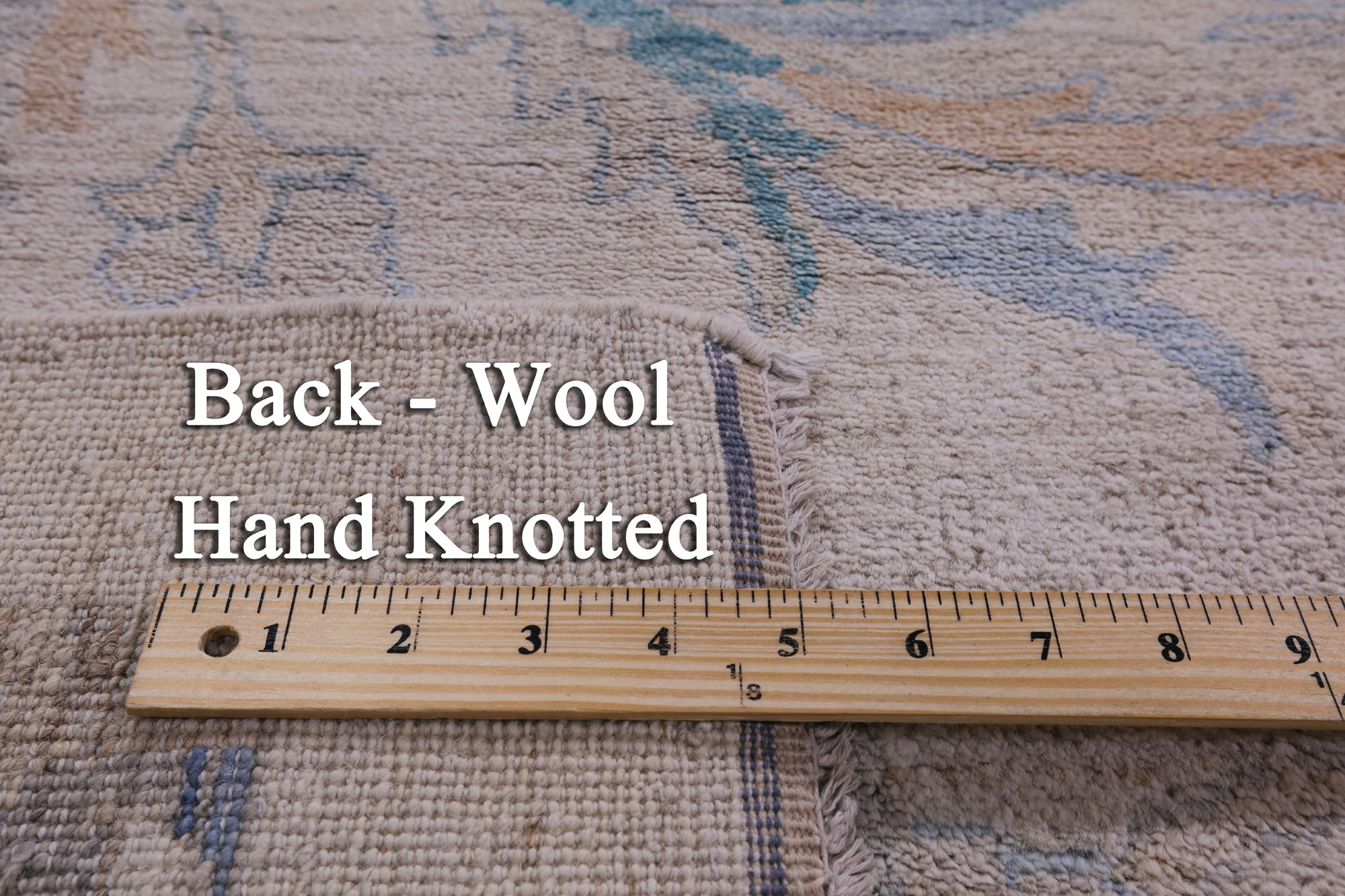 Ivory Hand-Knotted Turkish Oushak Wool Rug 9' 11" X 13' 11" - Q9540 is backordered and will ship as soon as it is back in stock.