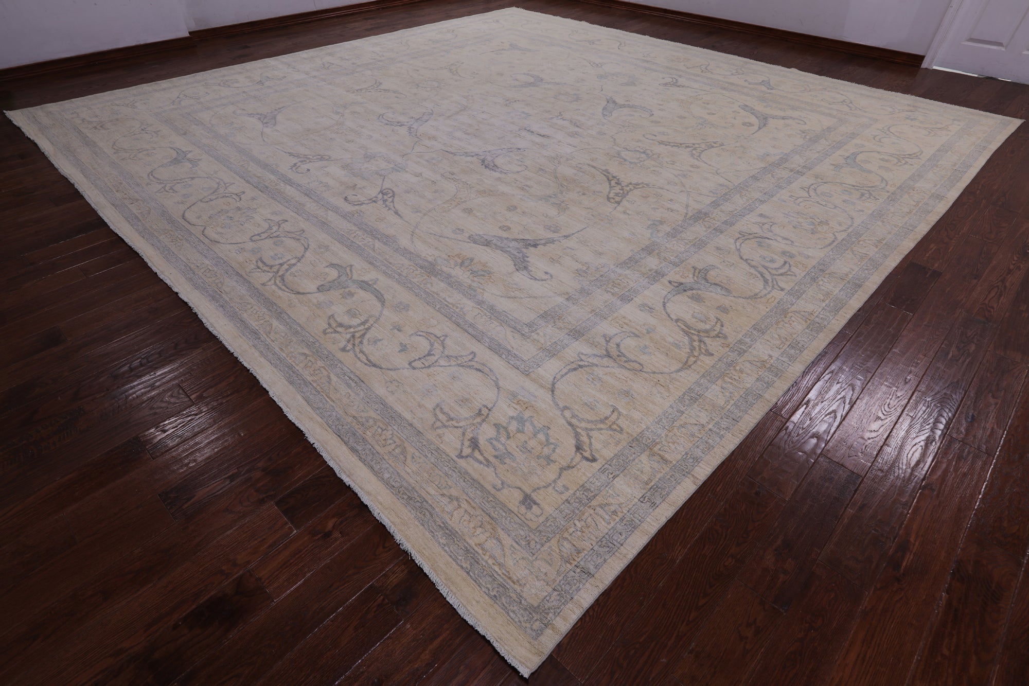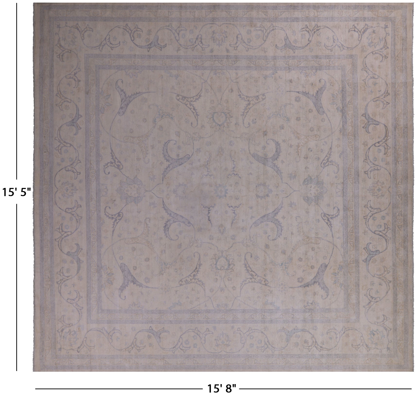 Ivory Square Super Turkish Oushak Hand-Knotted Wool Rug 15' 5" X 15' 8" - Q14425