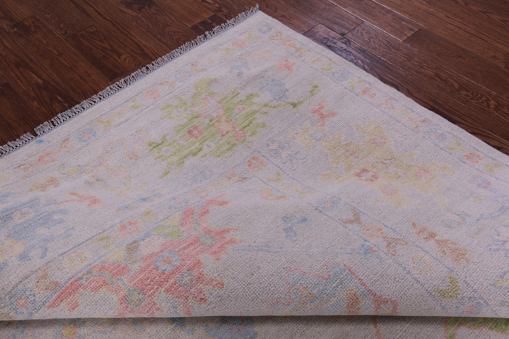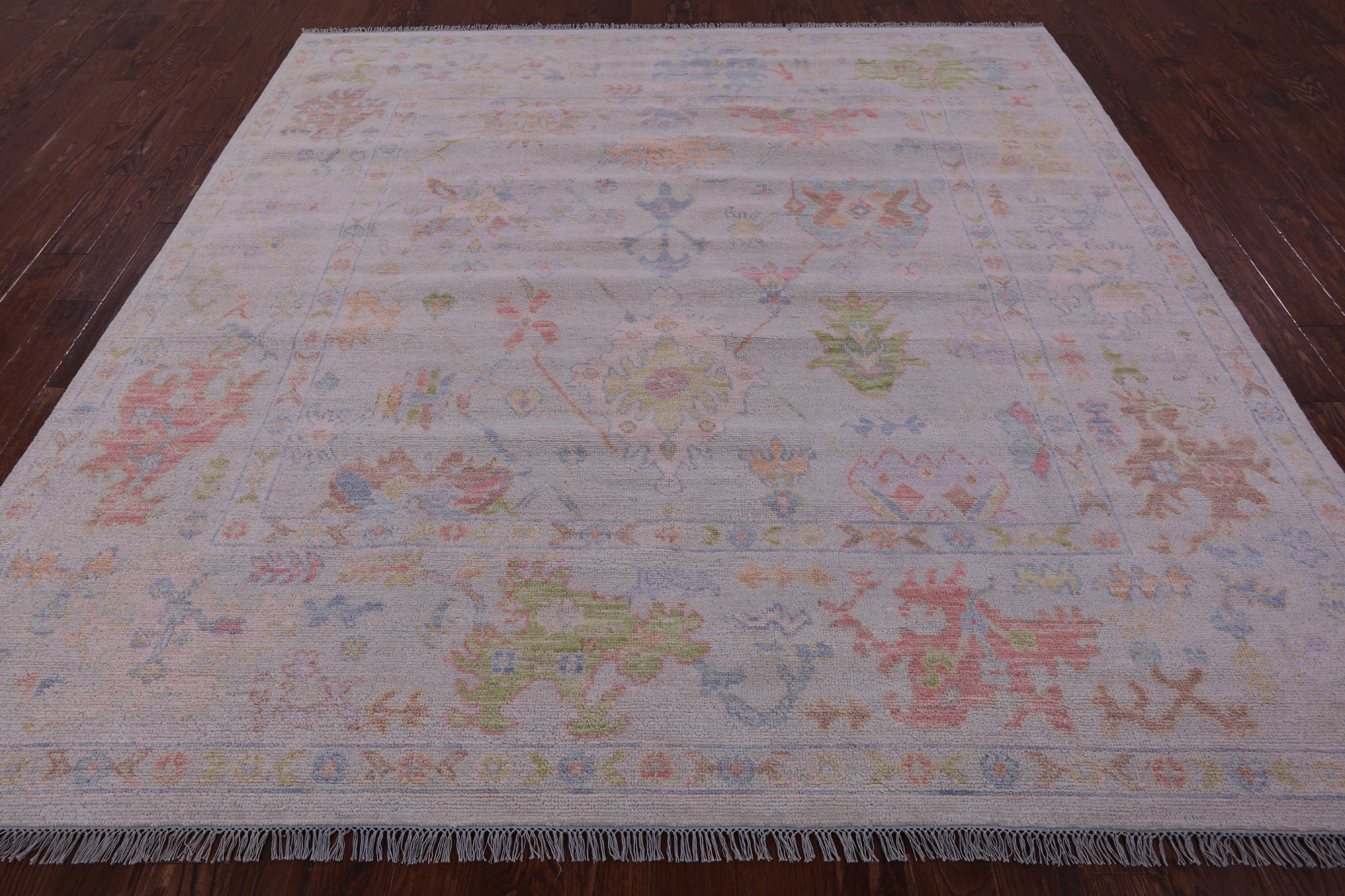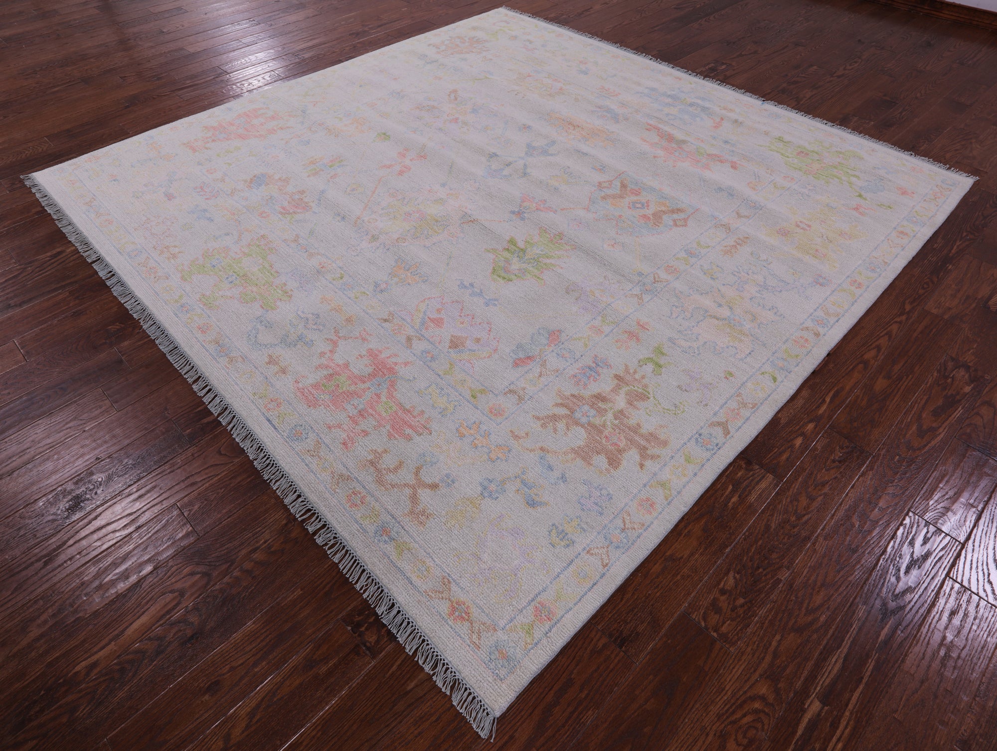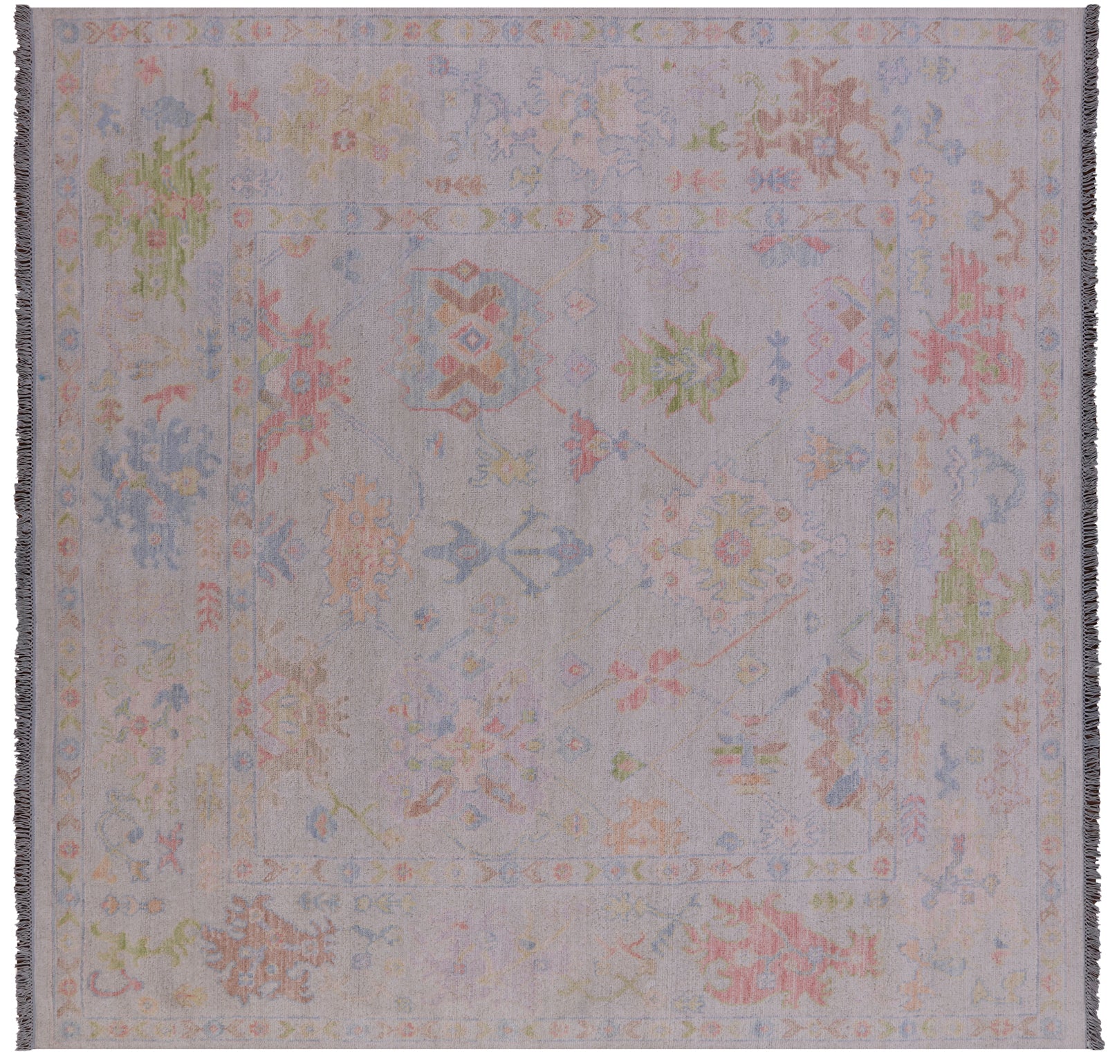 Ivory 9' Square Turkish Angora Oushak Handmade Wool Rug - Q21307 is backordered and will ship as soon as it is back in stock.
