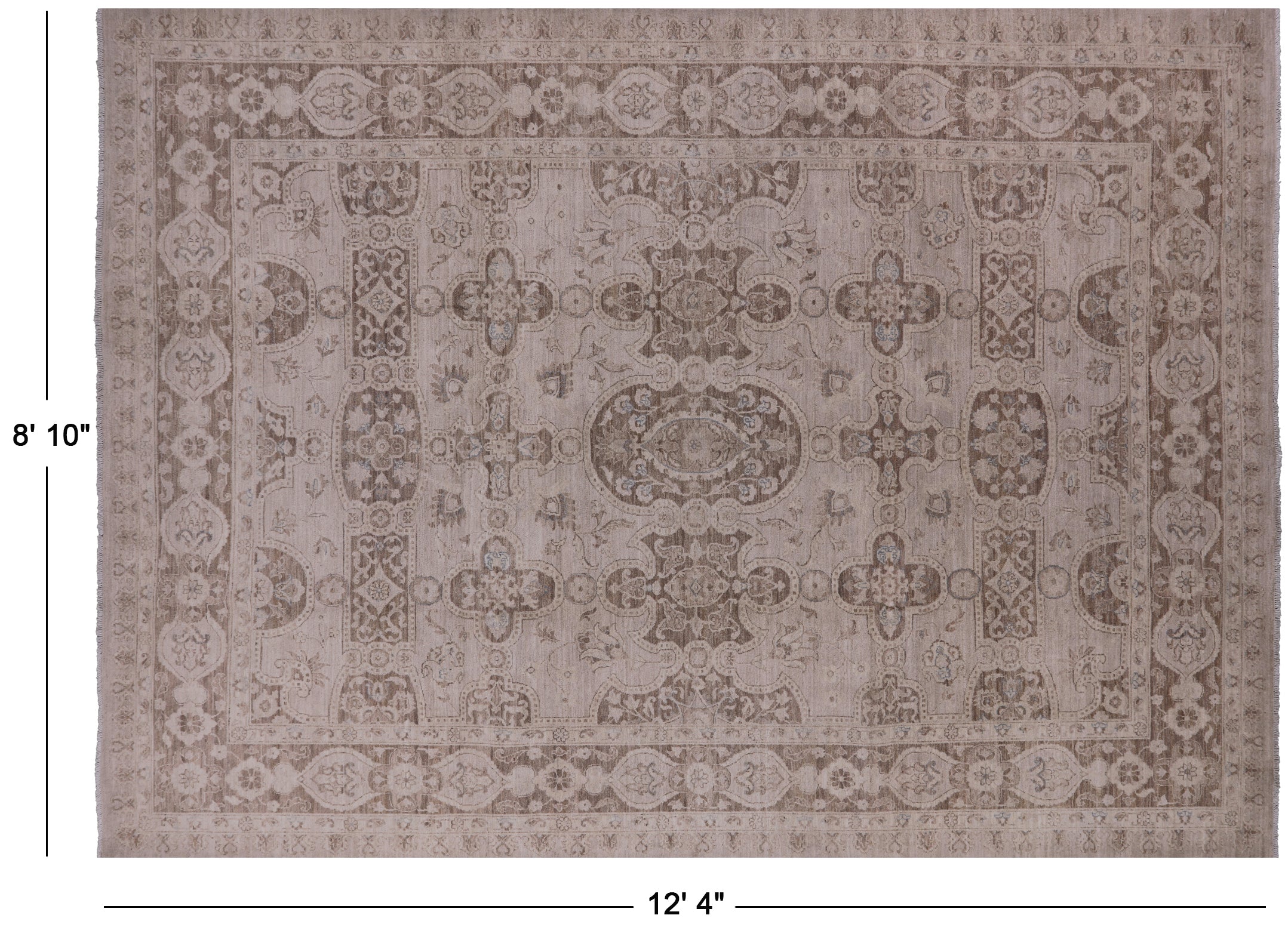 Ivory 8' 10" X 12' 4" Turkish Oushak Hand Knotted Rug - P6664