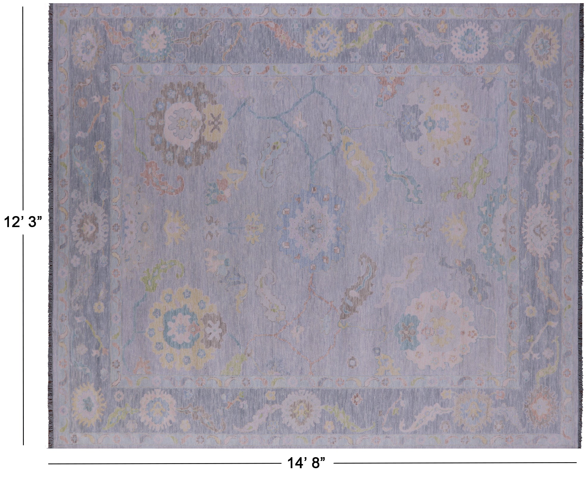 Silver Handmade Turkish Angora Oushak Wool Rug 12' 3" X 14' 8"- Q21204