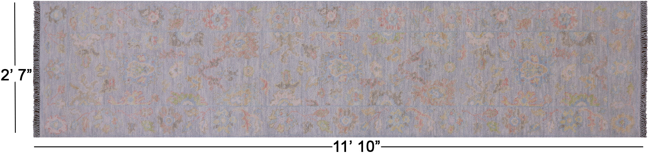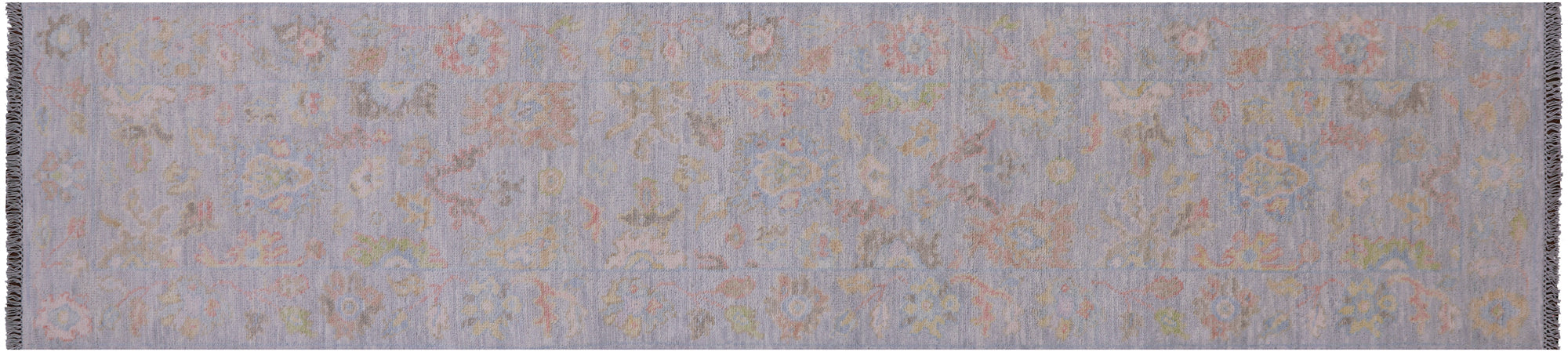 Silver 2' 7" X 11' 10" Runner Handmade Turkish Angora Oushak Wool Rug - Q21342