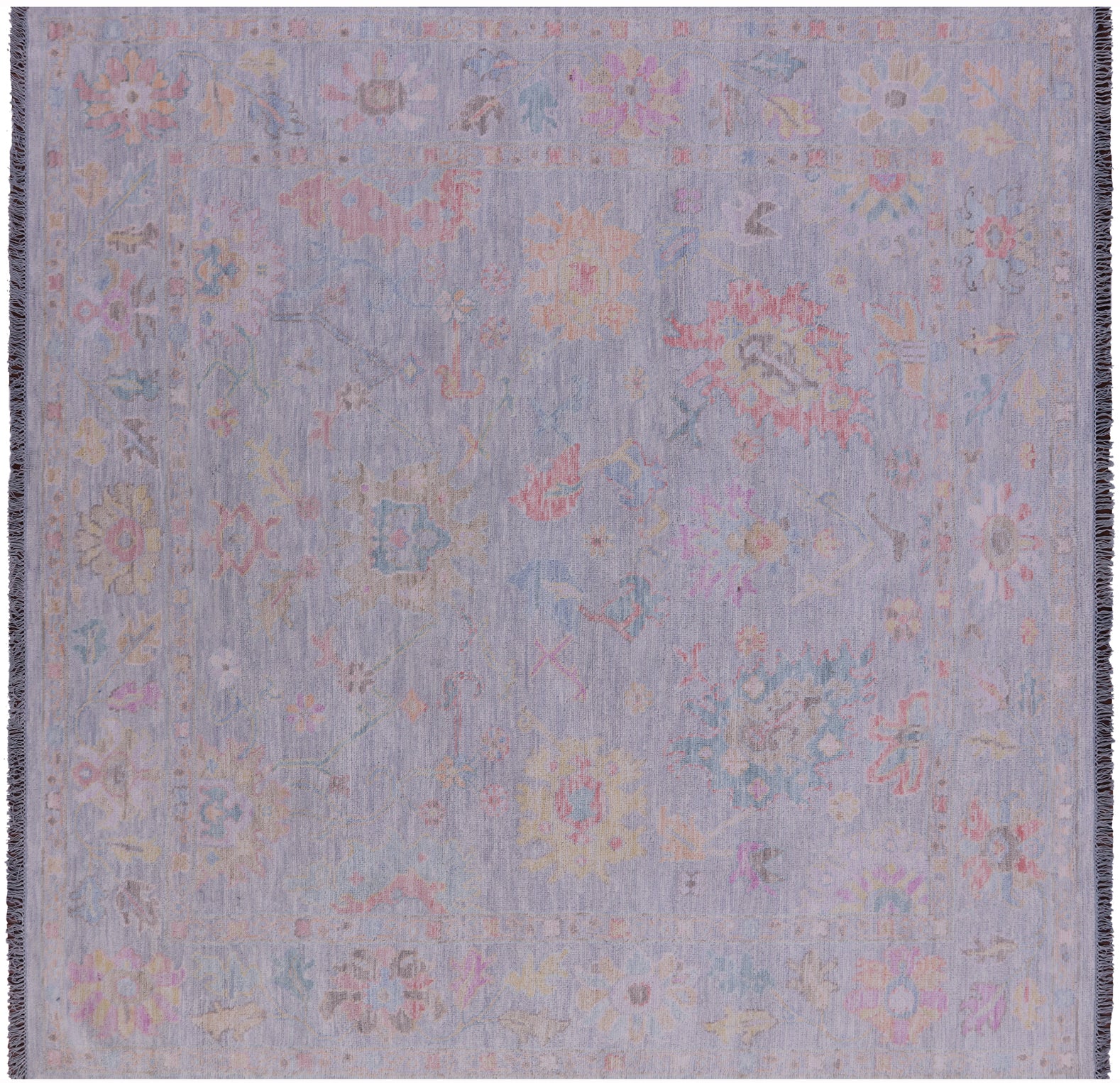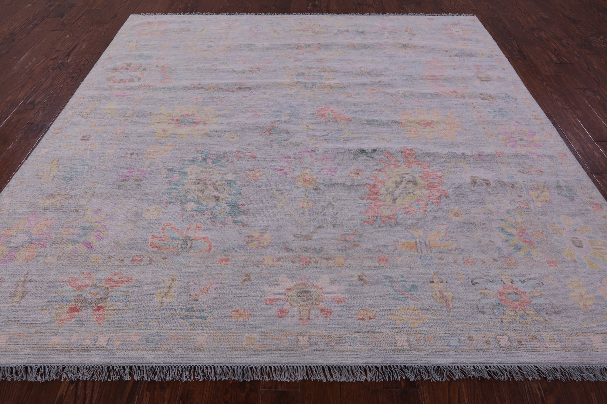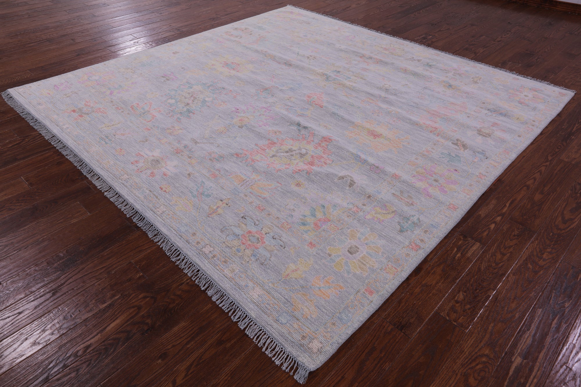 Silver 9' Square Hand-Knotted Turkish Angora Oushak Wool Rug - Q22329 is backordered and will ship as soon as it is back in stock.