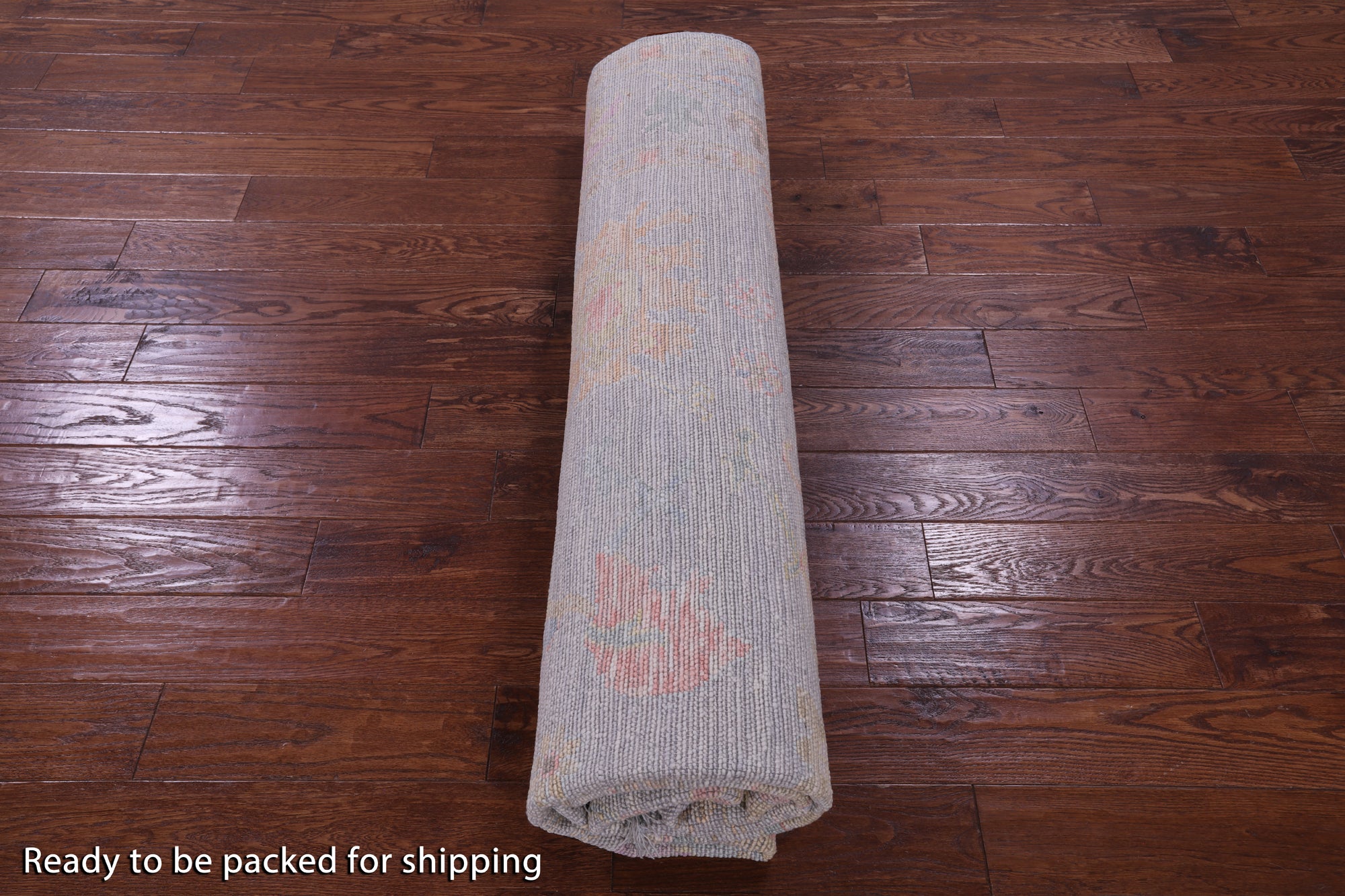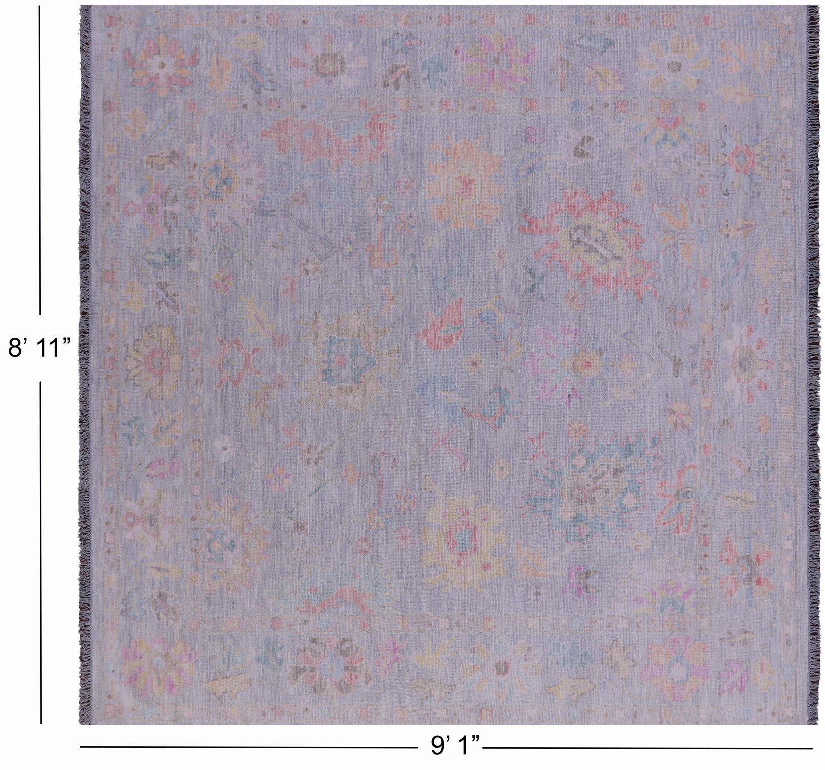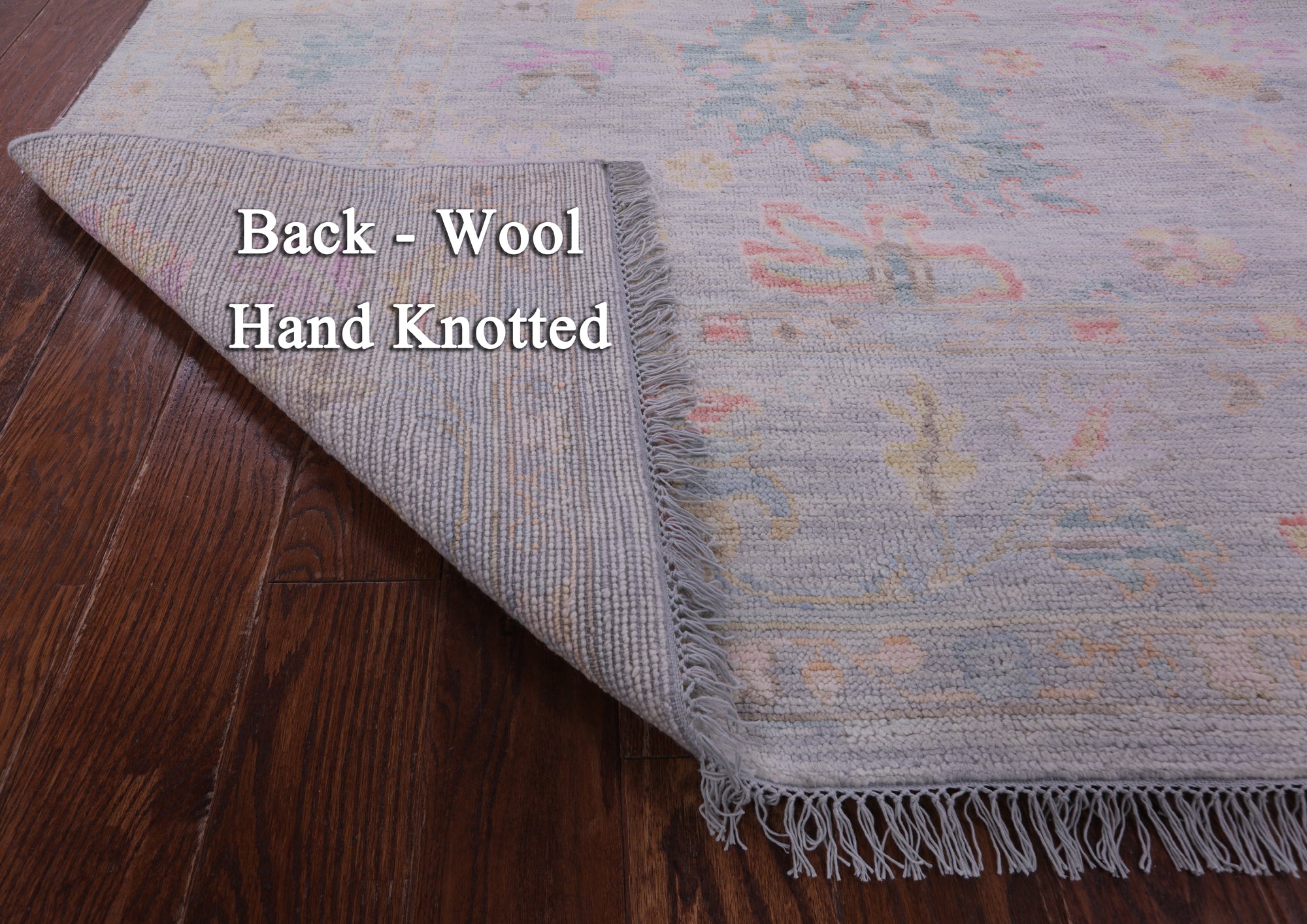 Silver 9' Square Hand-Knotted Turkish Angora Oushak Wool Rug - Q22329 is backordered and will ship as soon as it is back in stock.