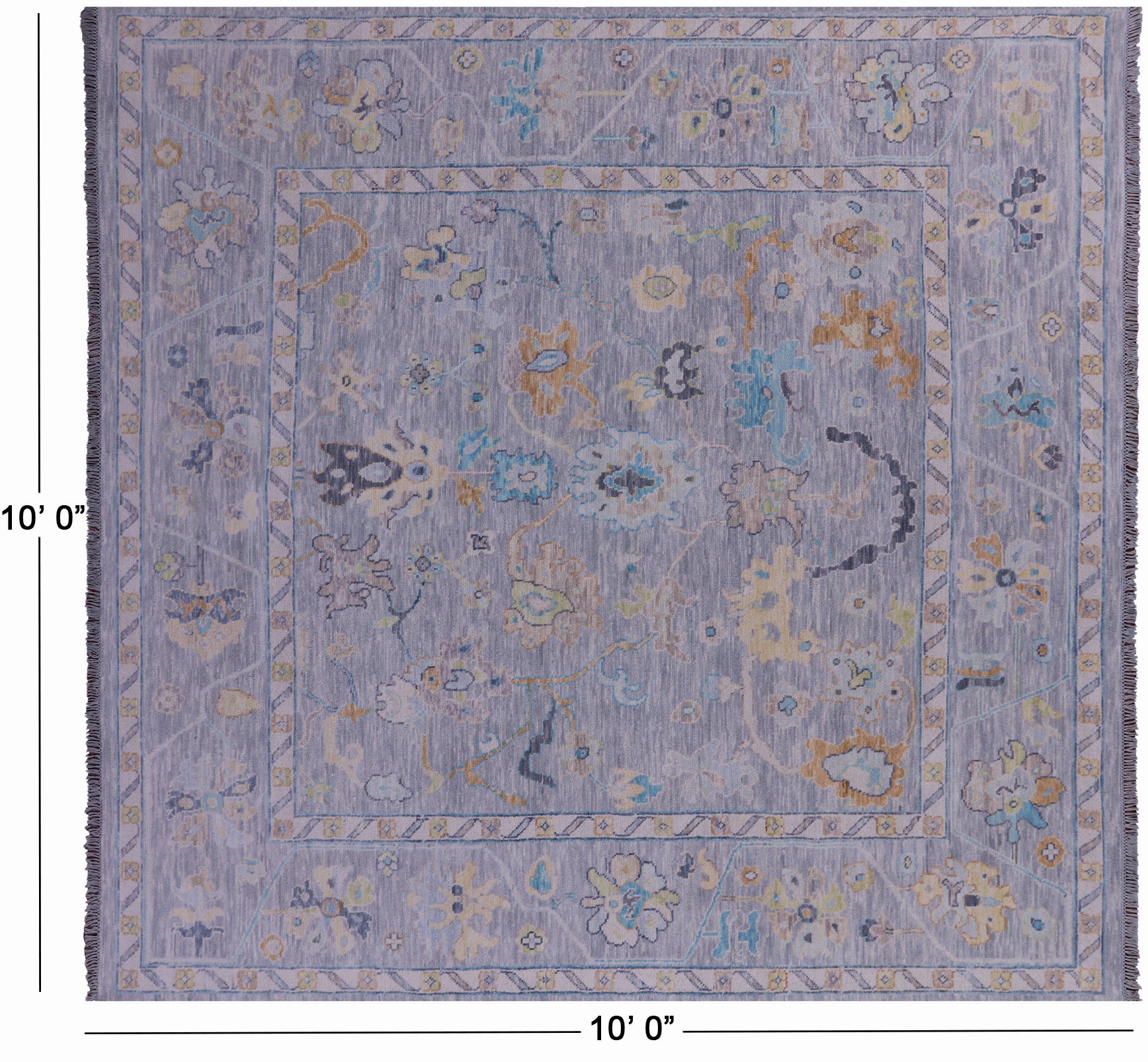 Silver 10' Square Turkish Angora Oushak Hand-Knotted Rug - Q21276