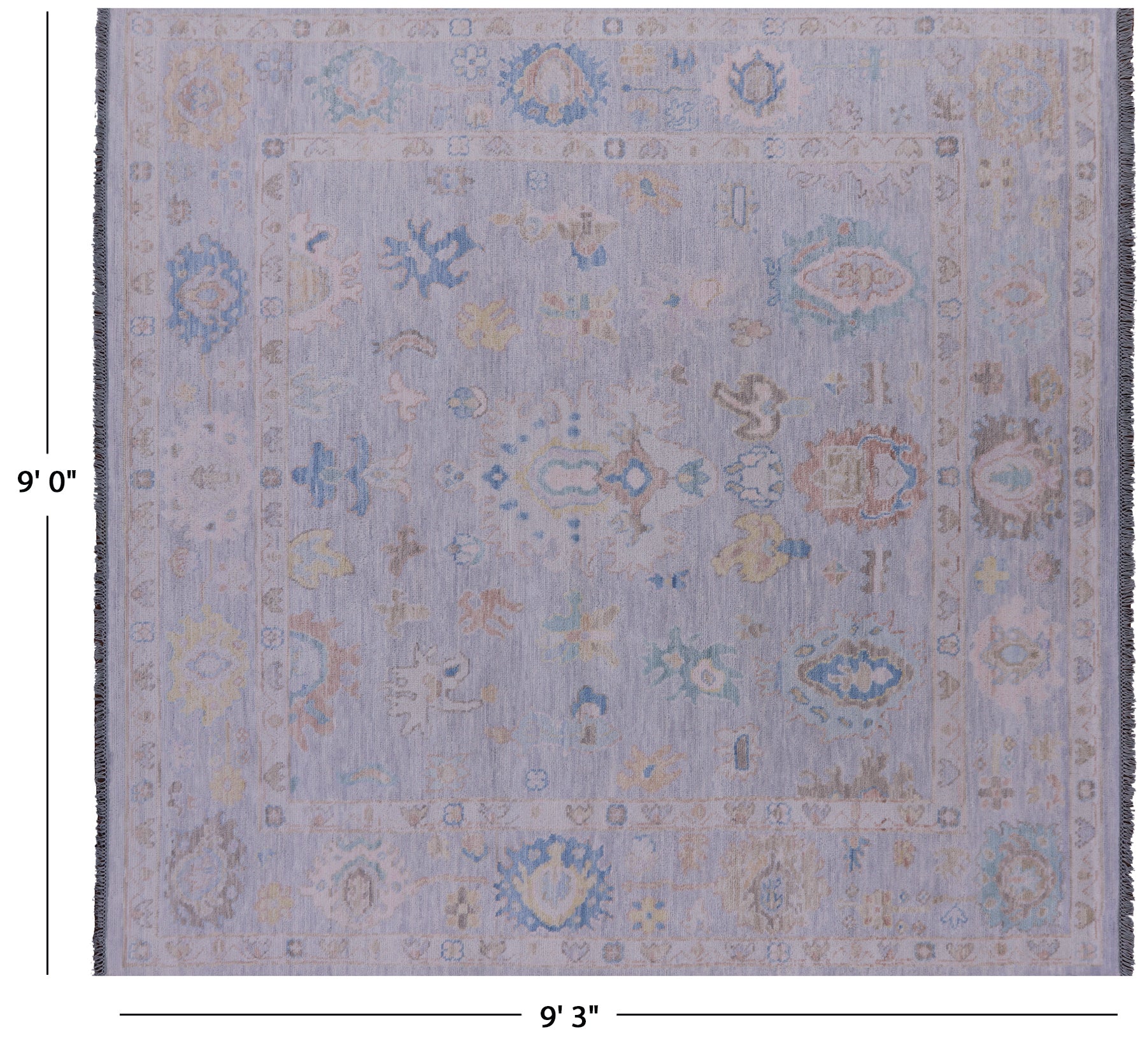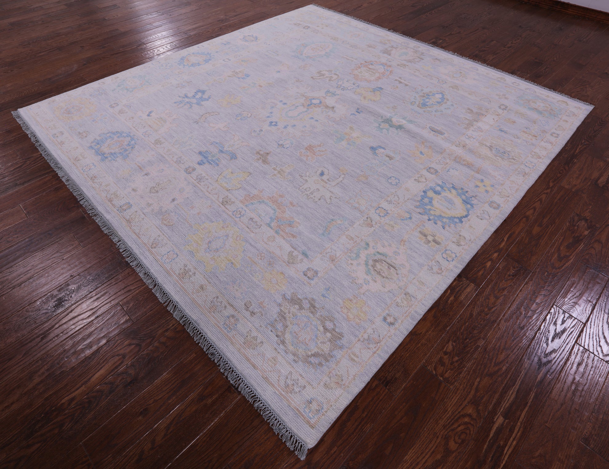 Silver 9' Square Turkish Angora Oushak Hand-Knotted Rug - Q21355