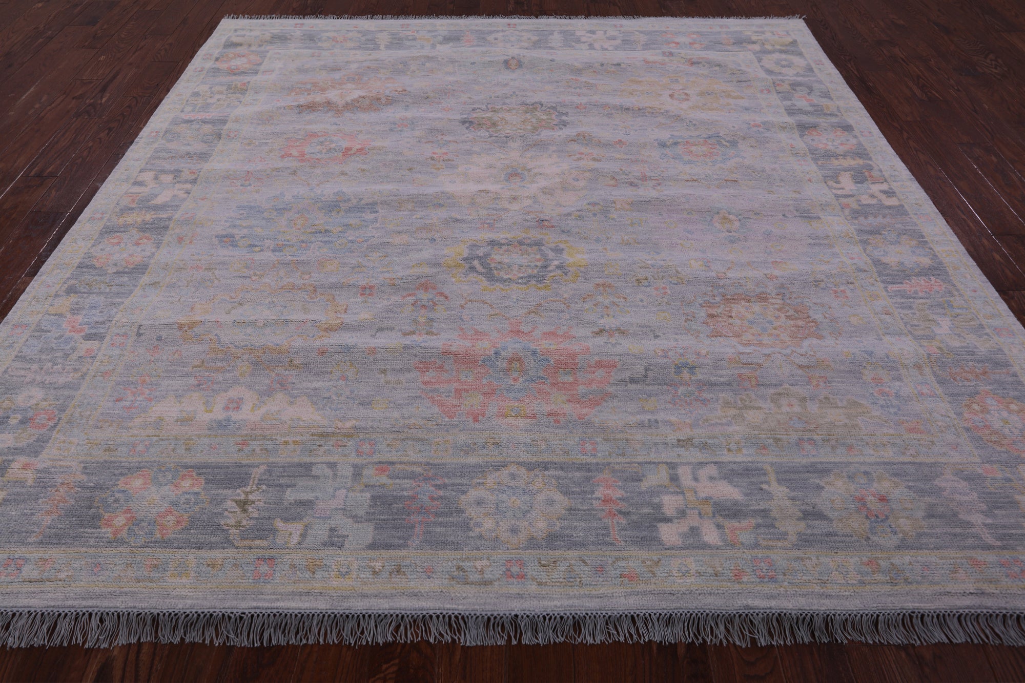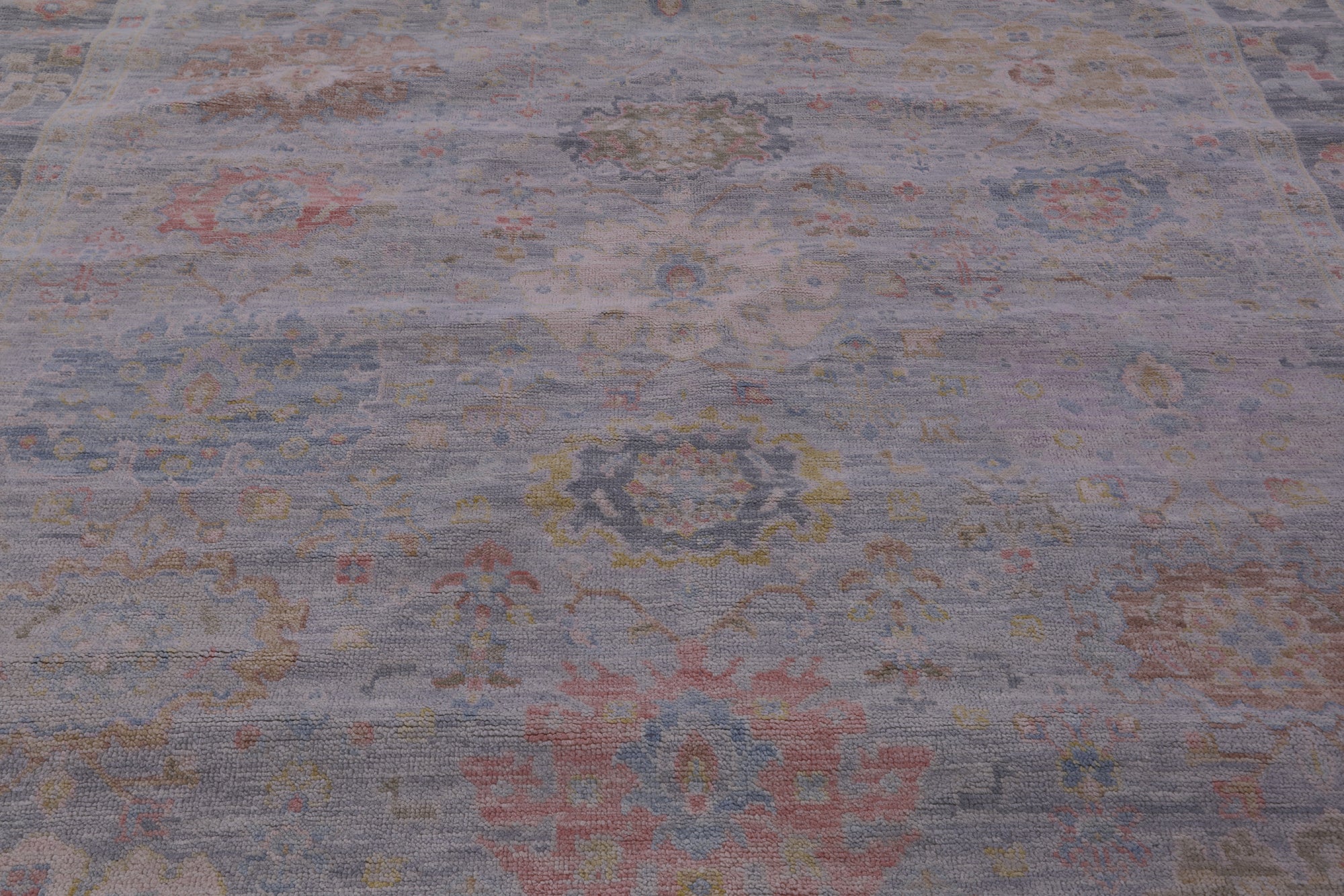 Silver 9' Square Turkish Angora Oushak Handmade Wool Rug - Q22327 is backordered and will ship as soon as it is back in stock.