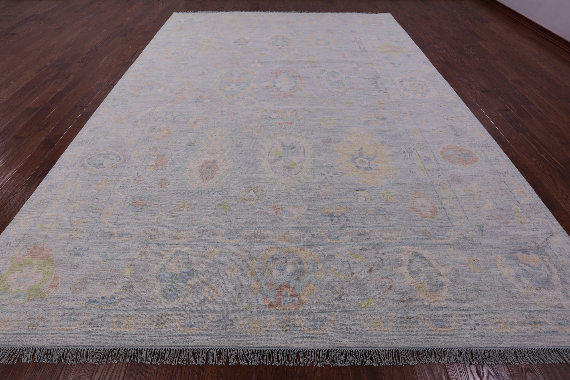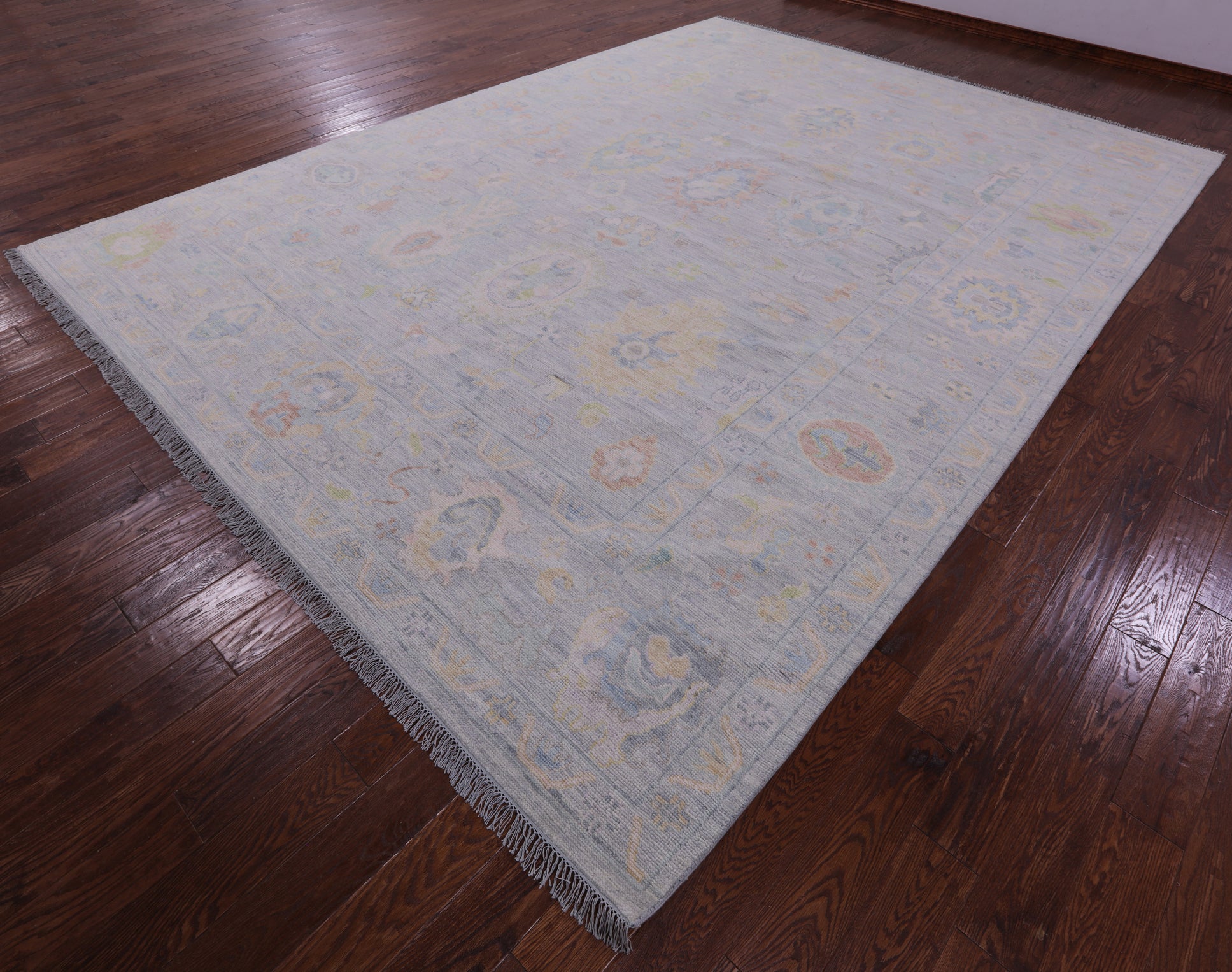 Silver Turkish Oushak Hand Knotted Wool Rug 10' 2" X 13' 10" - Q22271 is backordered and will ship as soon as it is back in stock.
