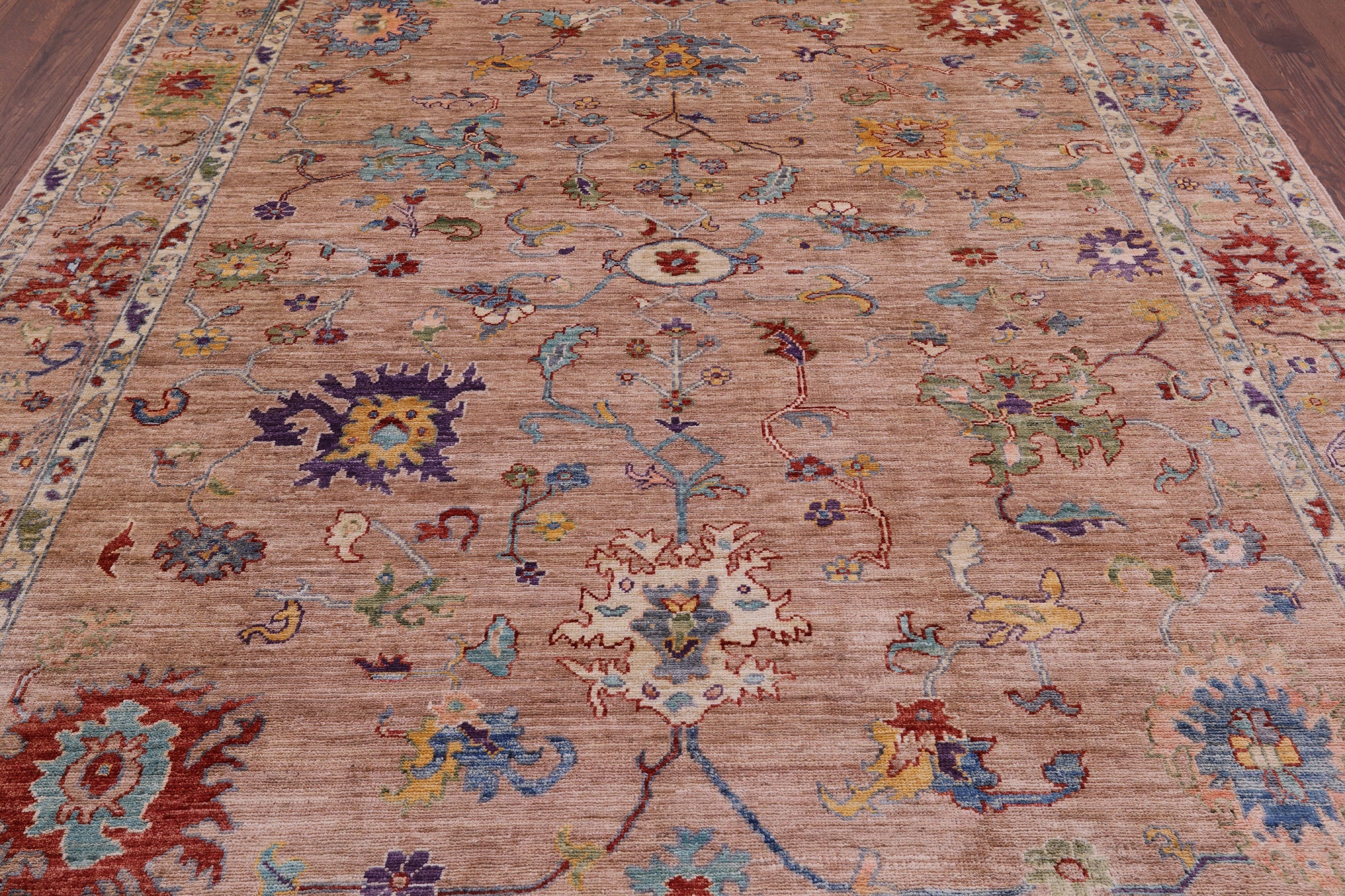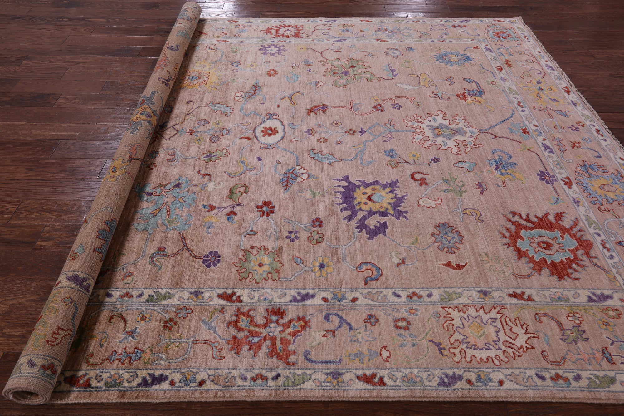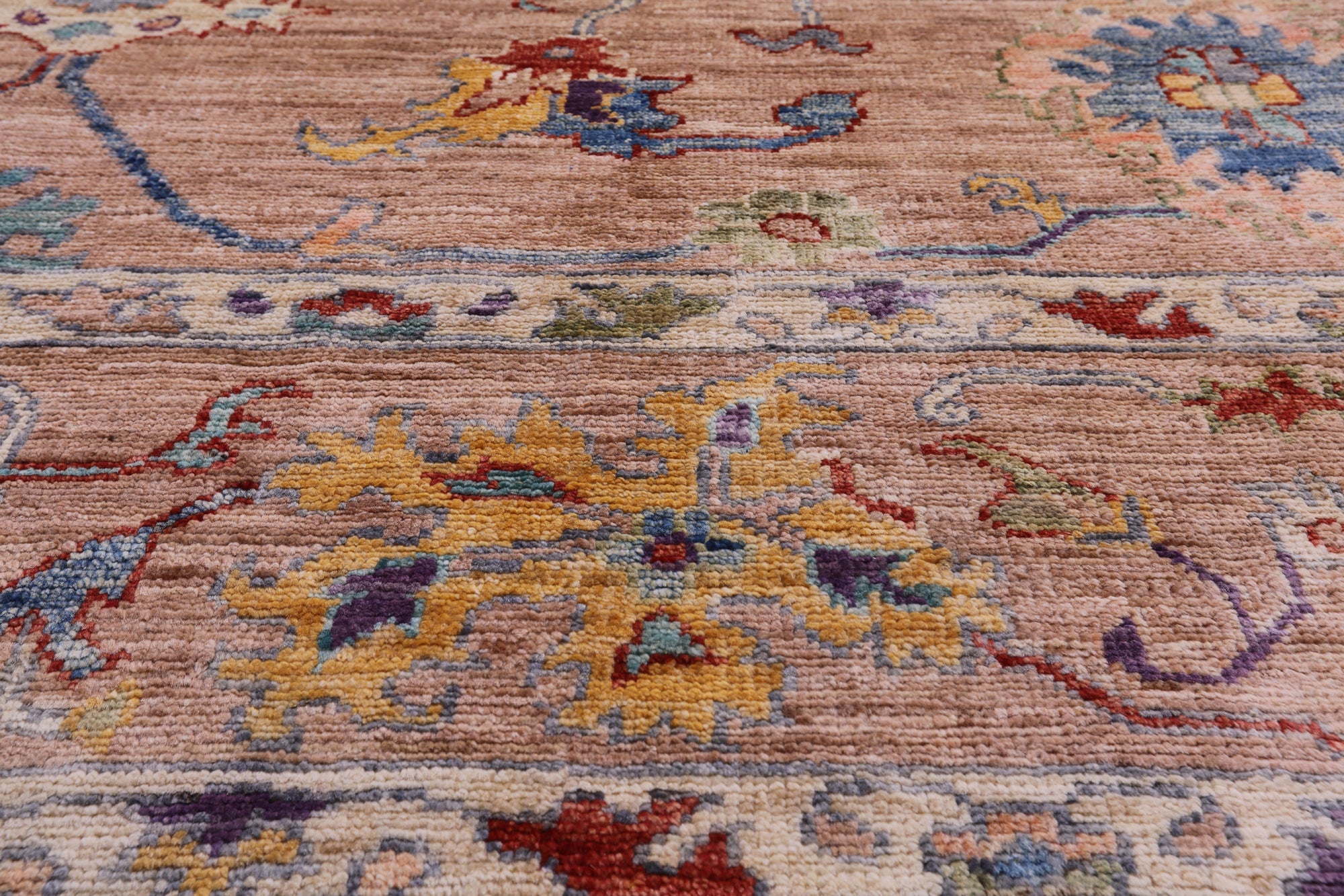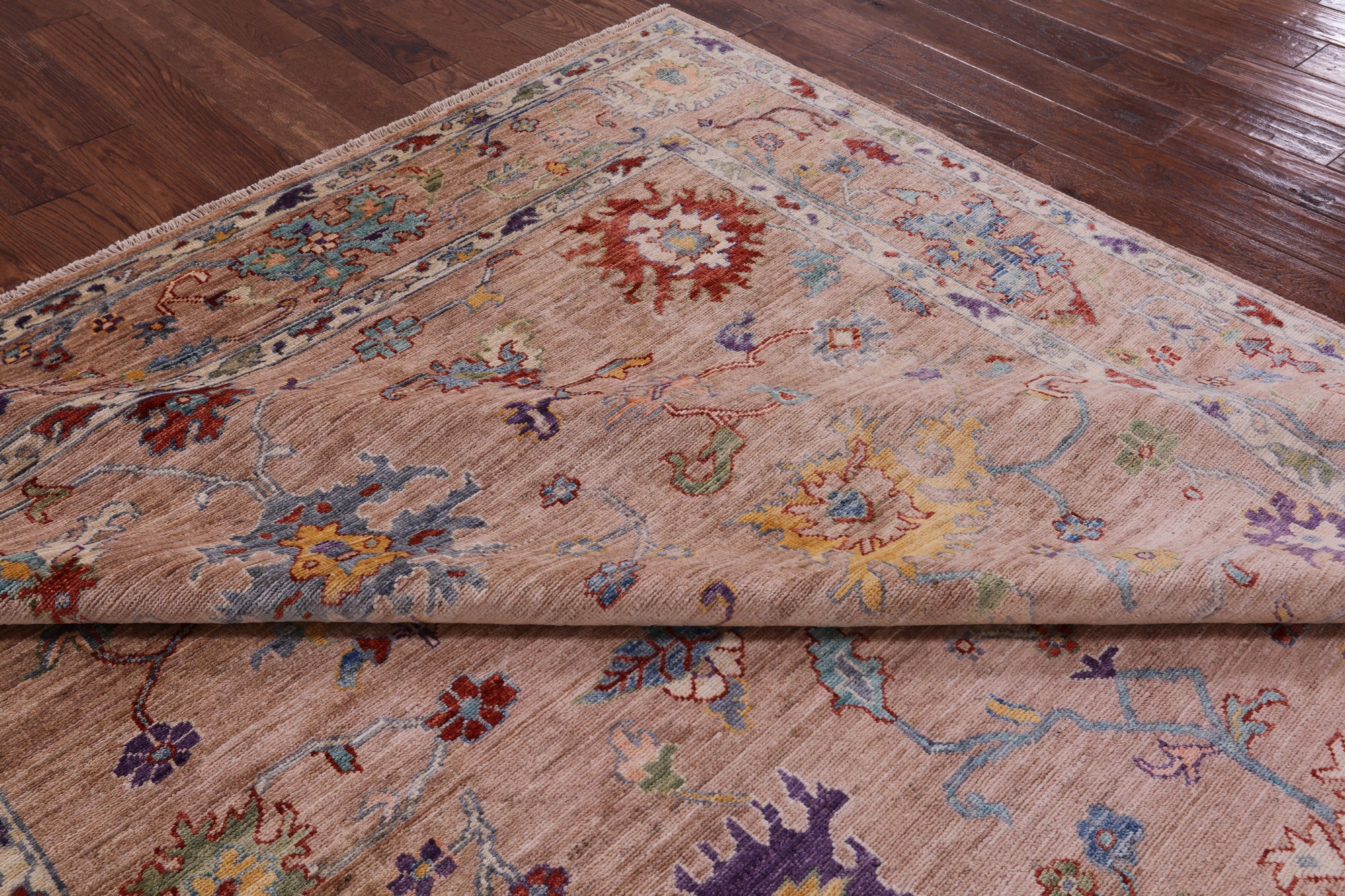 Oushak rugs, hand-knotted with meticulous craftsmanship, are celebrated for their timeless beauty, luxurious feel, and vibrant colors. These rugs feature a harmonious blend of muted earthy tones and colorful hues, with intricate designs inspired by traditional Turkish motifs. Their versatile style seamlessly complements various interiors, from traditional to modern. With a dense pile and careful hand-knotting techniques, Oushak handmade rugs not only enhance visual appeal but also stand as enduring pieces, adding a touch of refined elegance and a splash of color to any space.