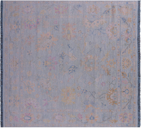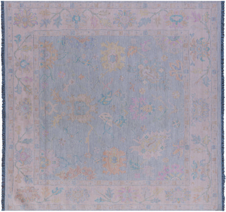 Blue 9' Square Turkish Angora Oushak Handmade Wool Rug - Q21310