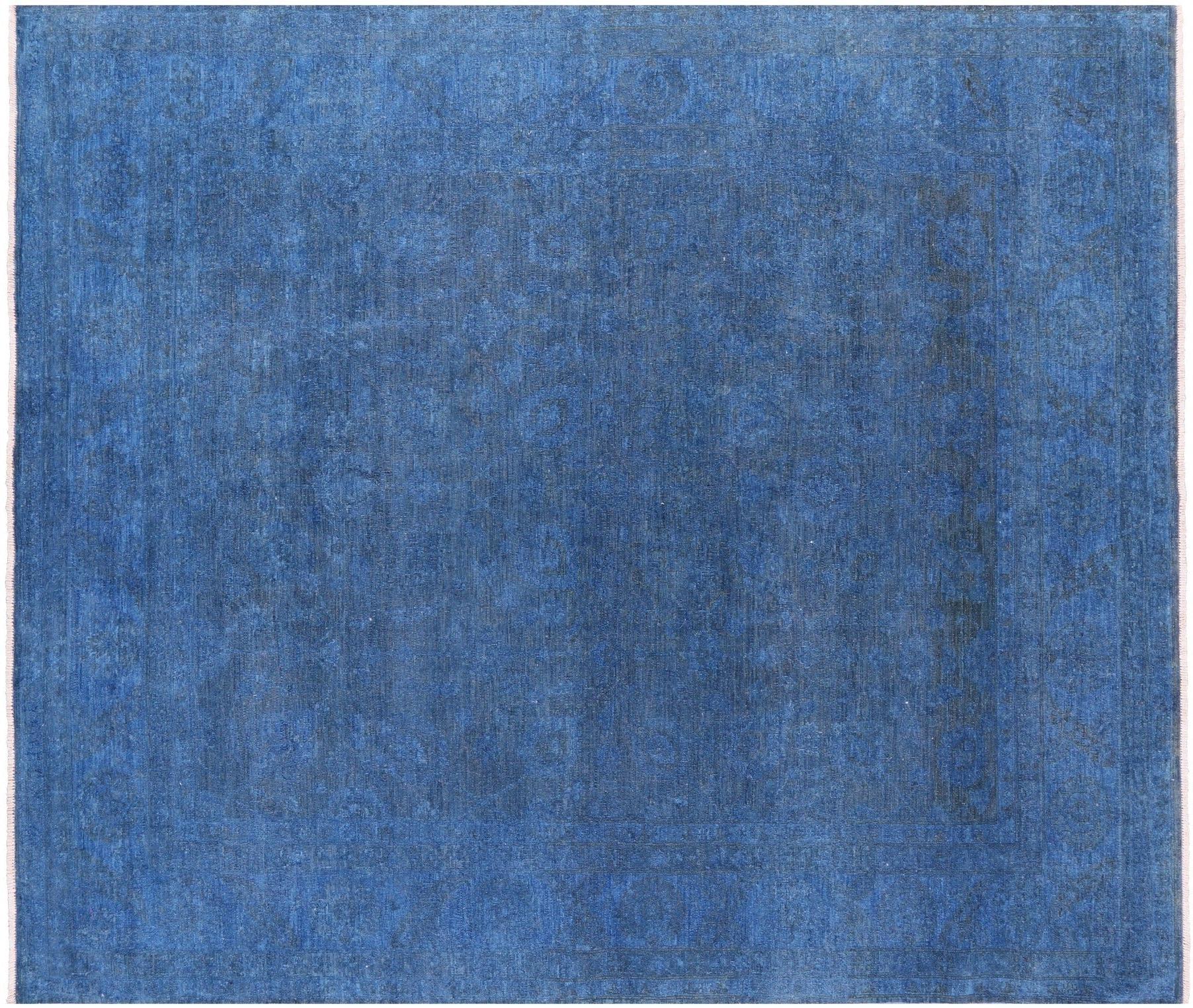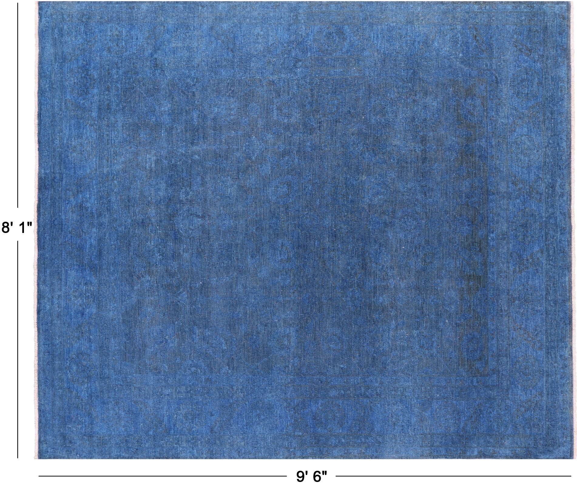 Blue 8' 1" X 9' 6" Handmade Zero Pile Overdyed Wool Rug - Q11196