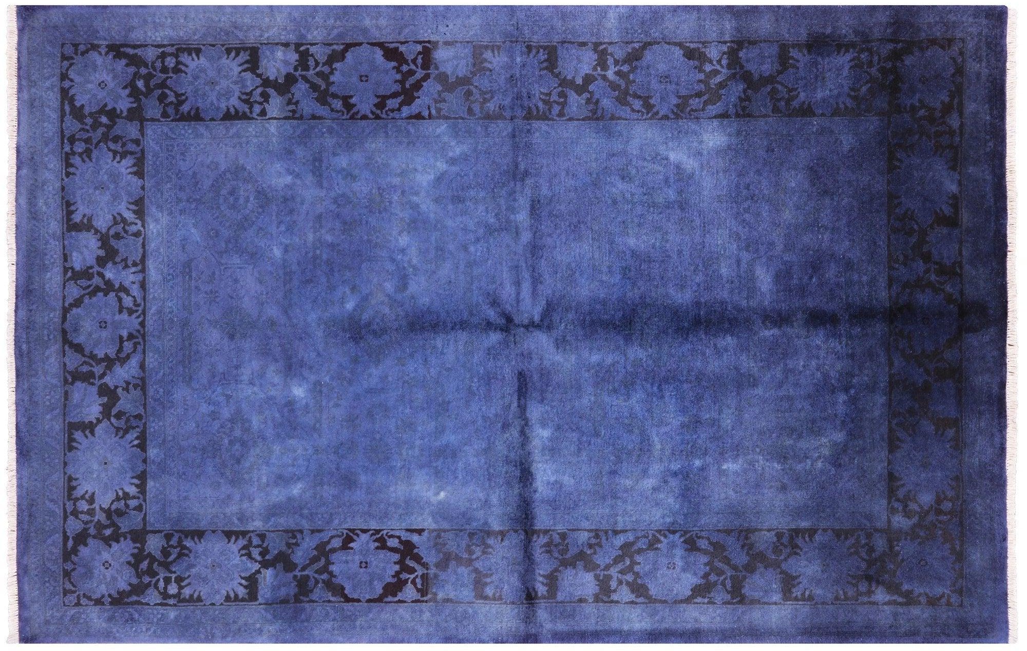Blue 6' 0" X 9' 2" Overdyed Full Pile Handmade Wool Rug - P5540