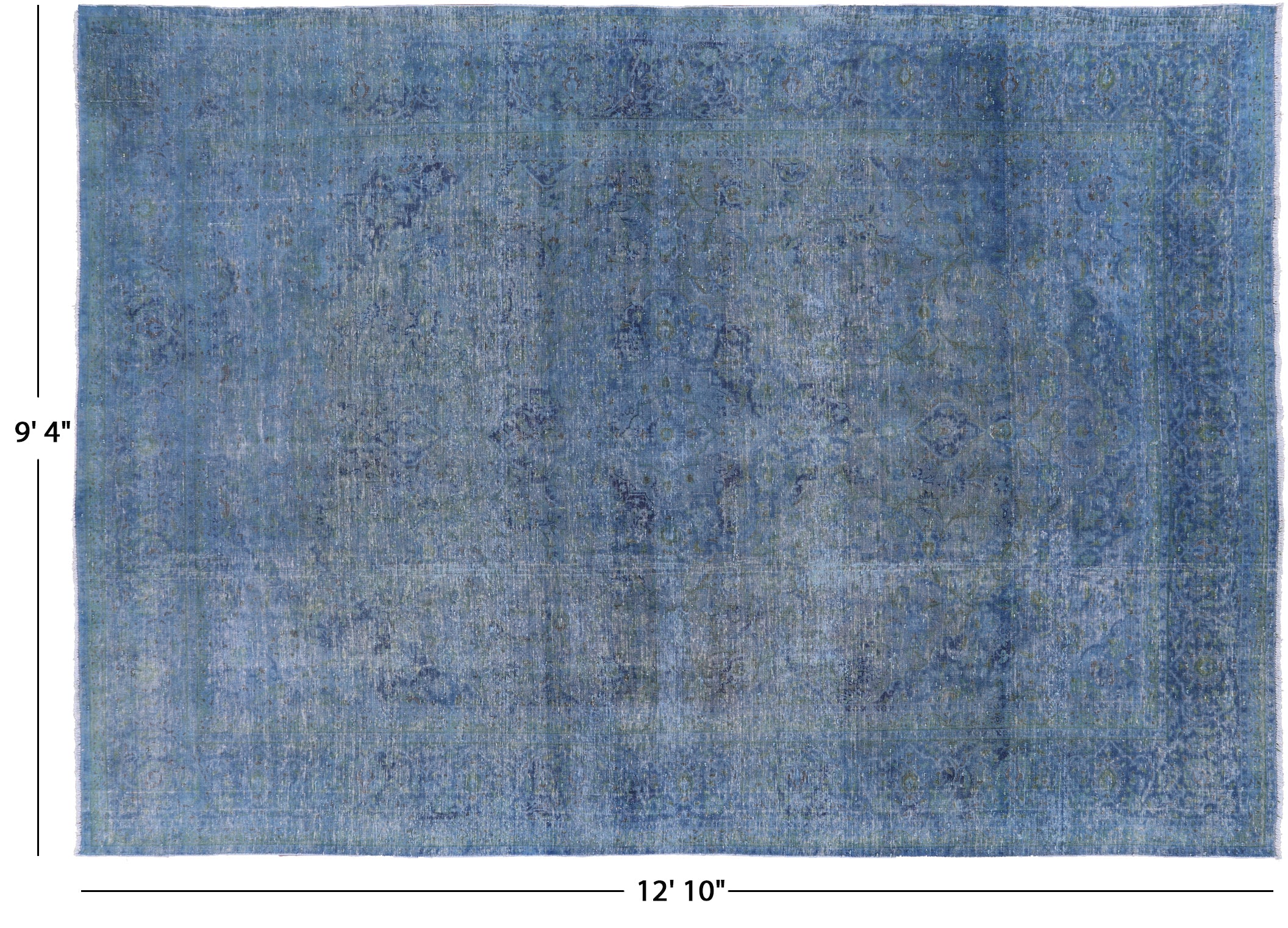 Blue 9' 4" X 12' 10" Persian Overdyed Handmade Wool Area Rug - Q2582