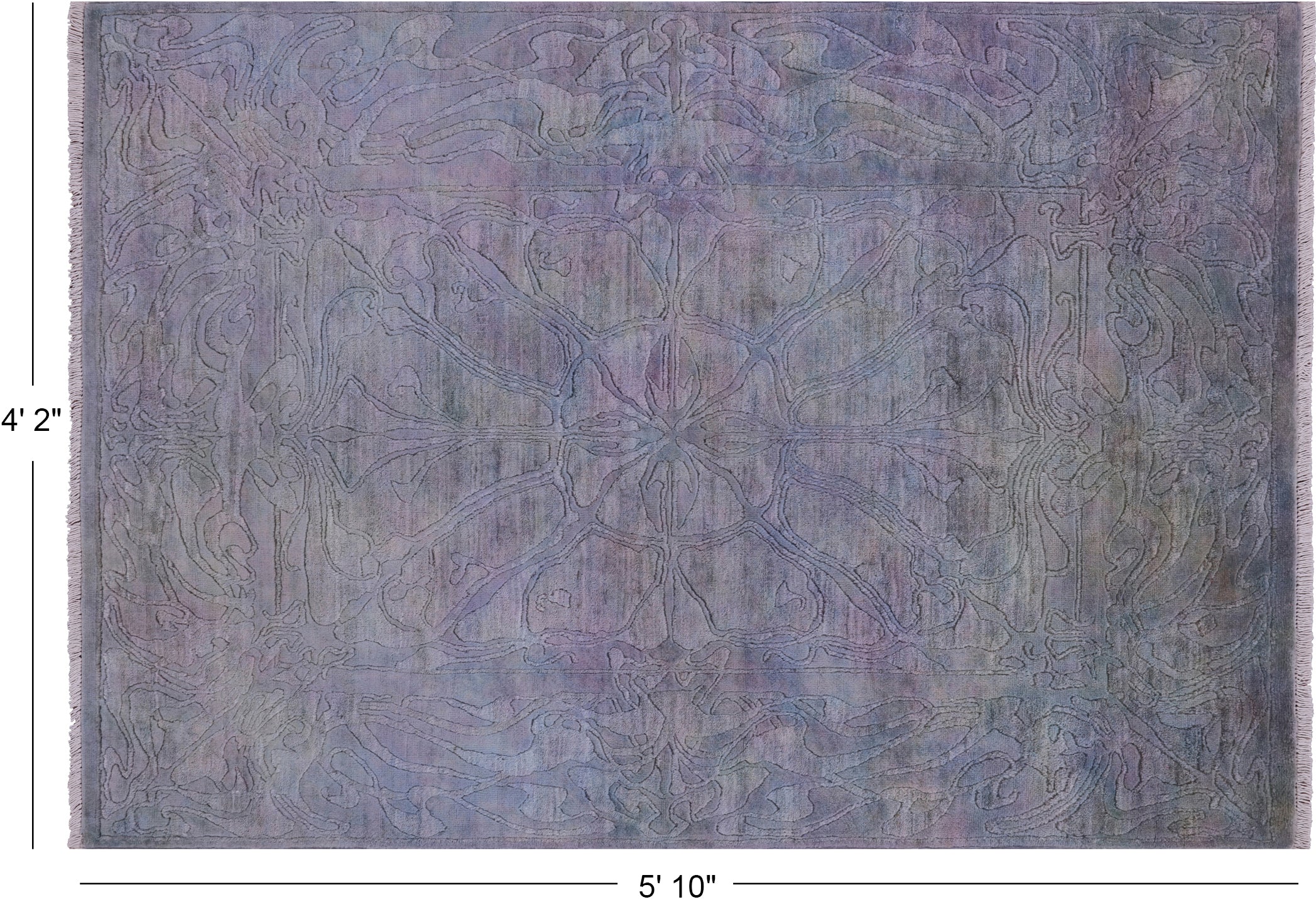 4' 2" X 5' 10" Carved Full Pile Wool Overdyed Rug - Q3694