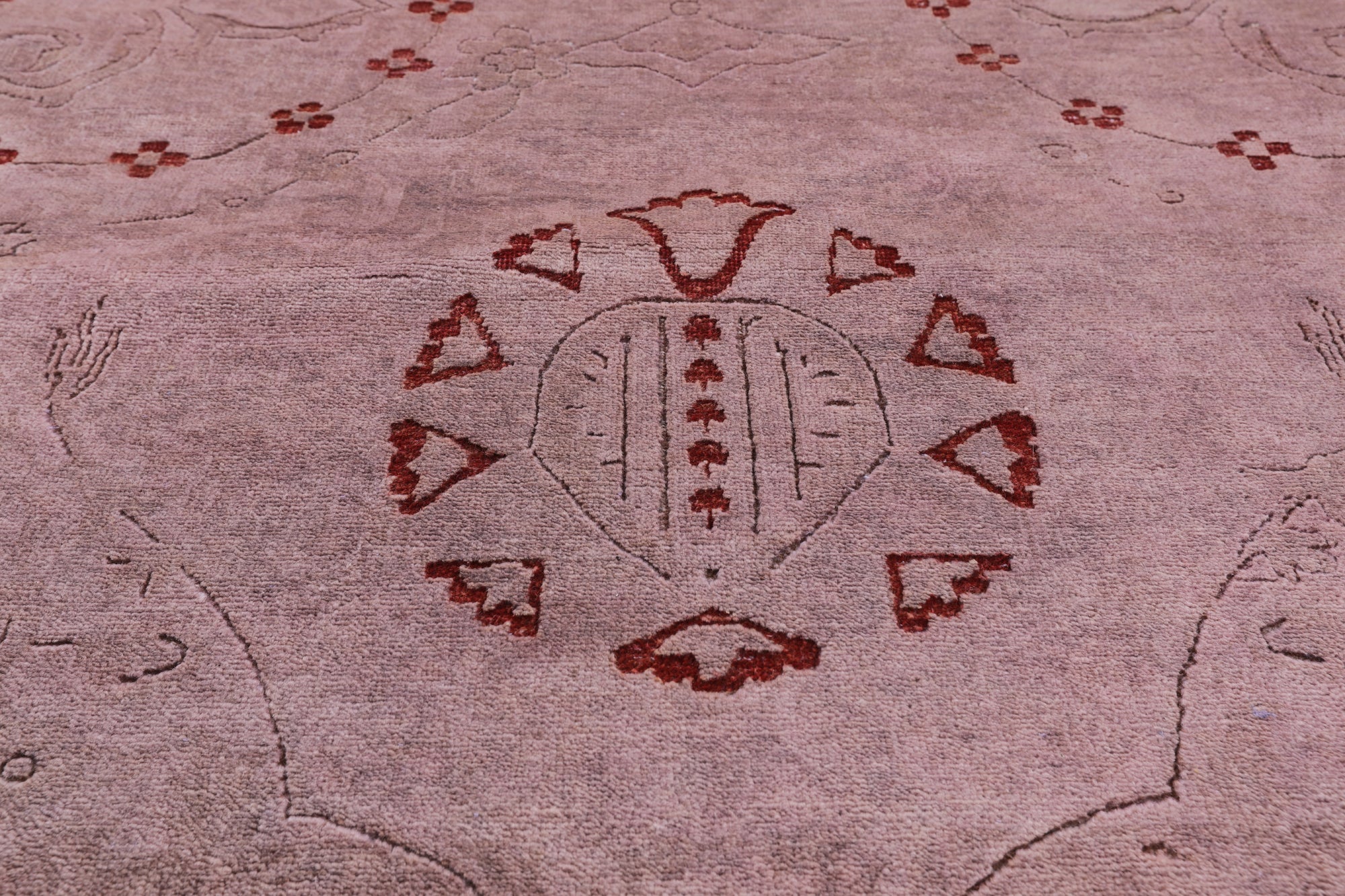 Overdyed rugs have become popular, because of their vibrant colors and vintage look. Each one is unique; there are no two alike. They are hand knotted and are made through a natural dye process. After this process is completed the end result is an oversaturated color.