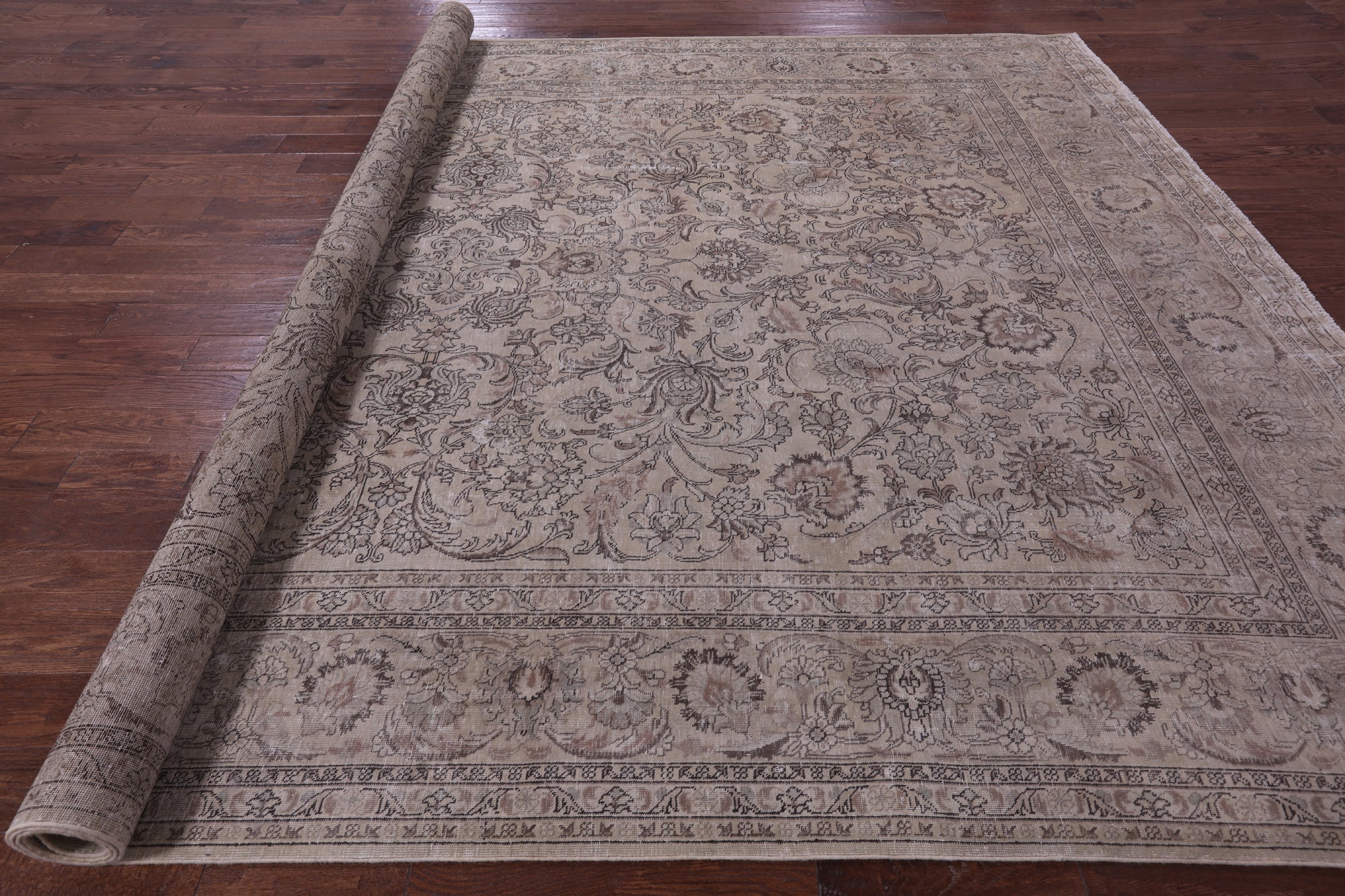 Ivory Persian Vintage White Wash Hand Knotted Rug 9' 10" X 12' 10" - Q19582