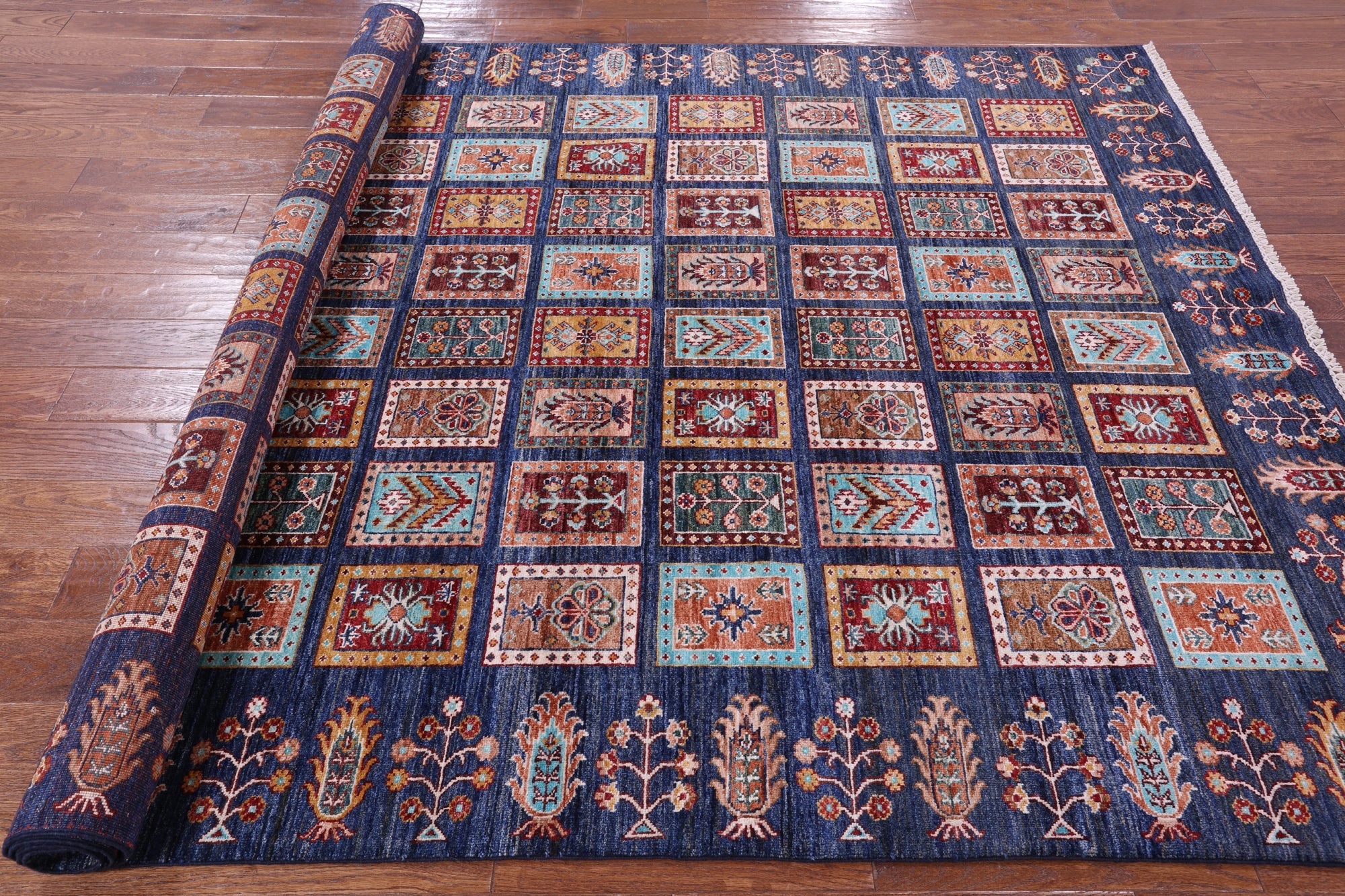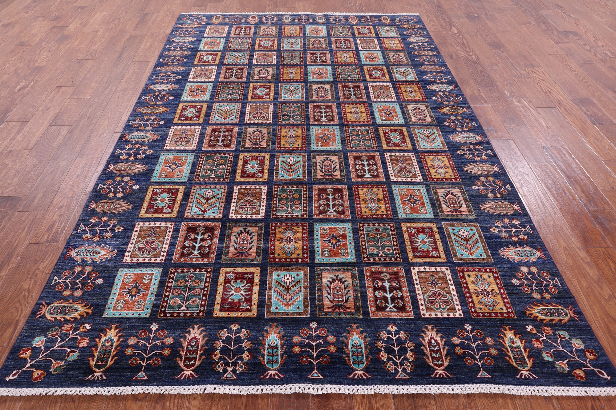 Blue Persian Garden Design Hand-Knotted Wool Rug 6' 6" X 9' 9" - Q12917