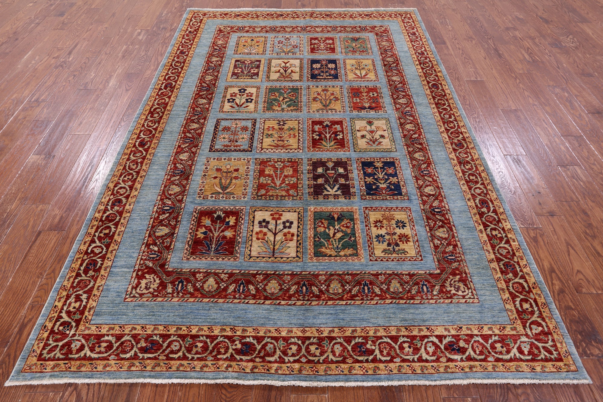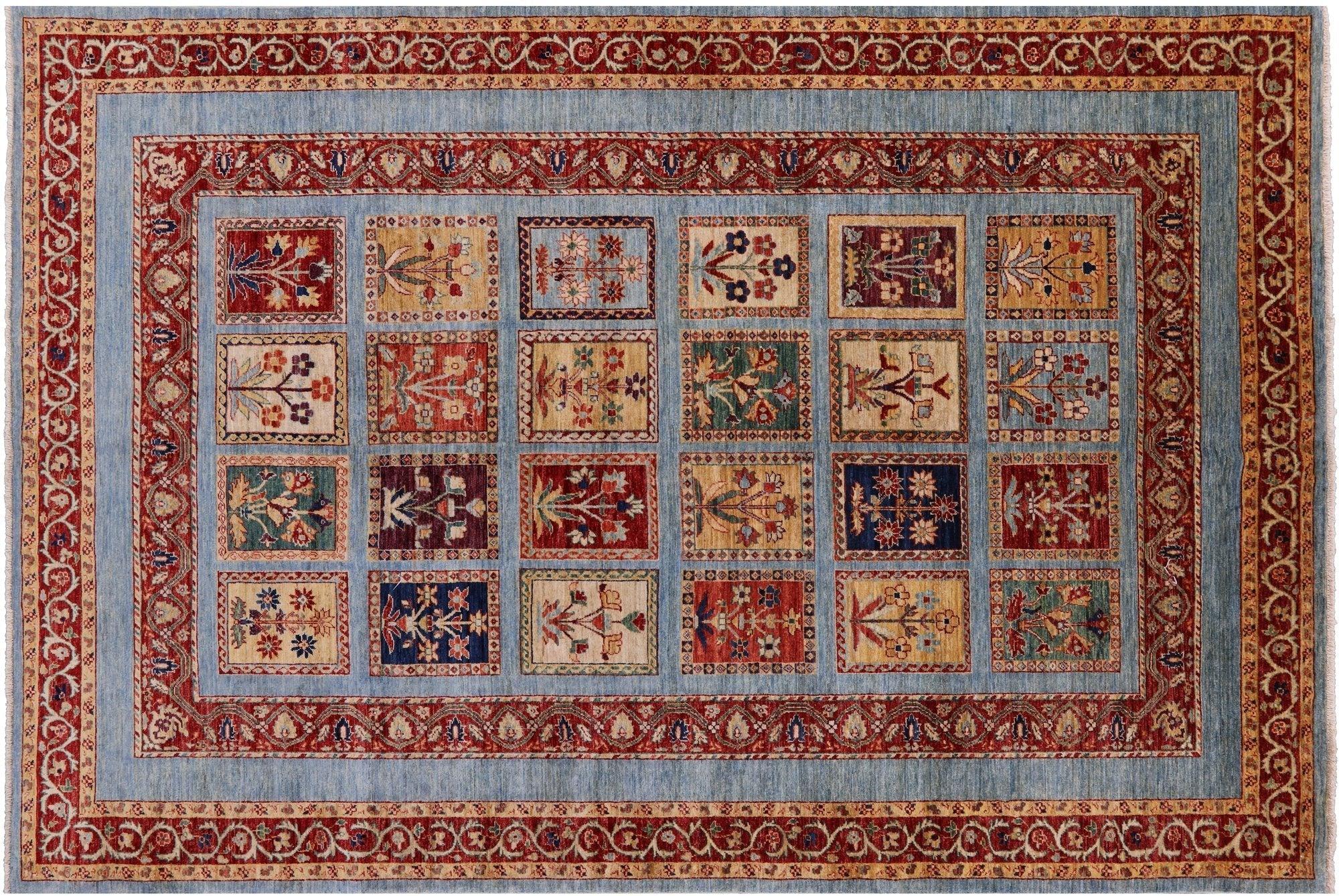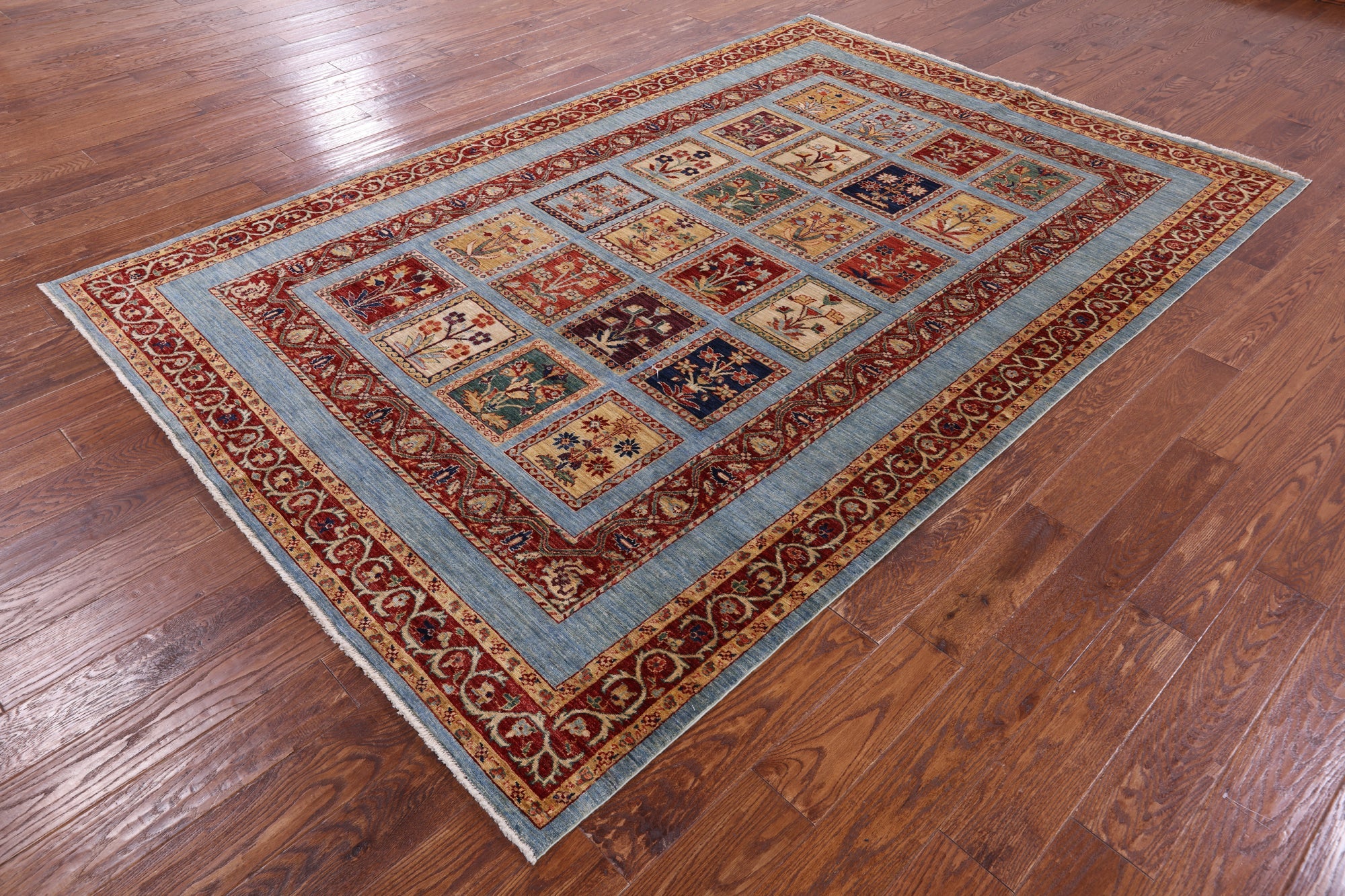 Blue 6' 6" X 9' 8" Persian Garden Design Handmade Rug - Q10655