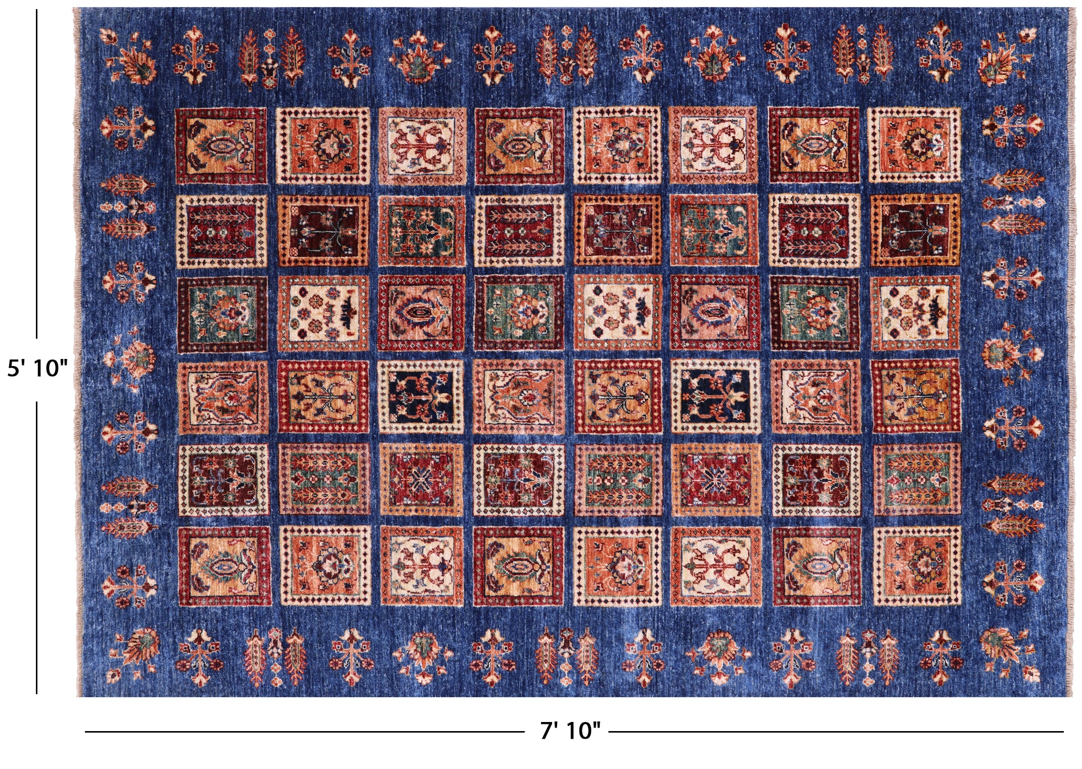 Blue Persian Garden Design Handmade Wool Rug 5' 10" X 7' 10" - Q18307