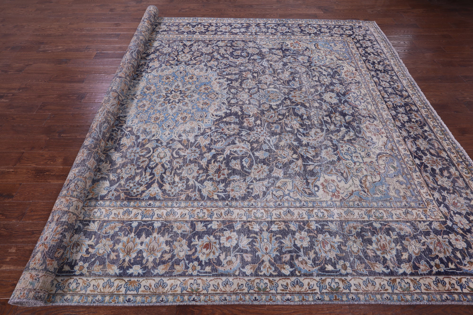 Blue 9' 9" X 13' 3" Persian Kashan Zero Pile Hand-Knotted Rug - Q19614 is backordered and will ship as soon as it is back in stock.