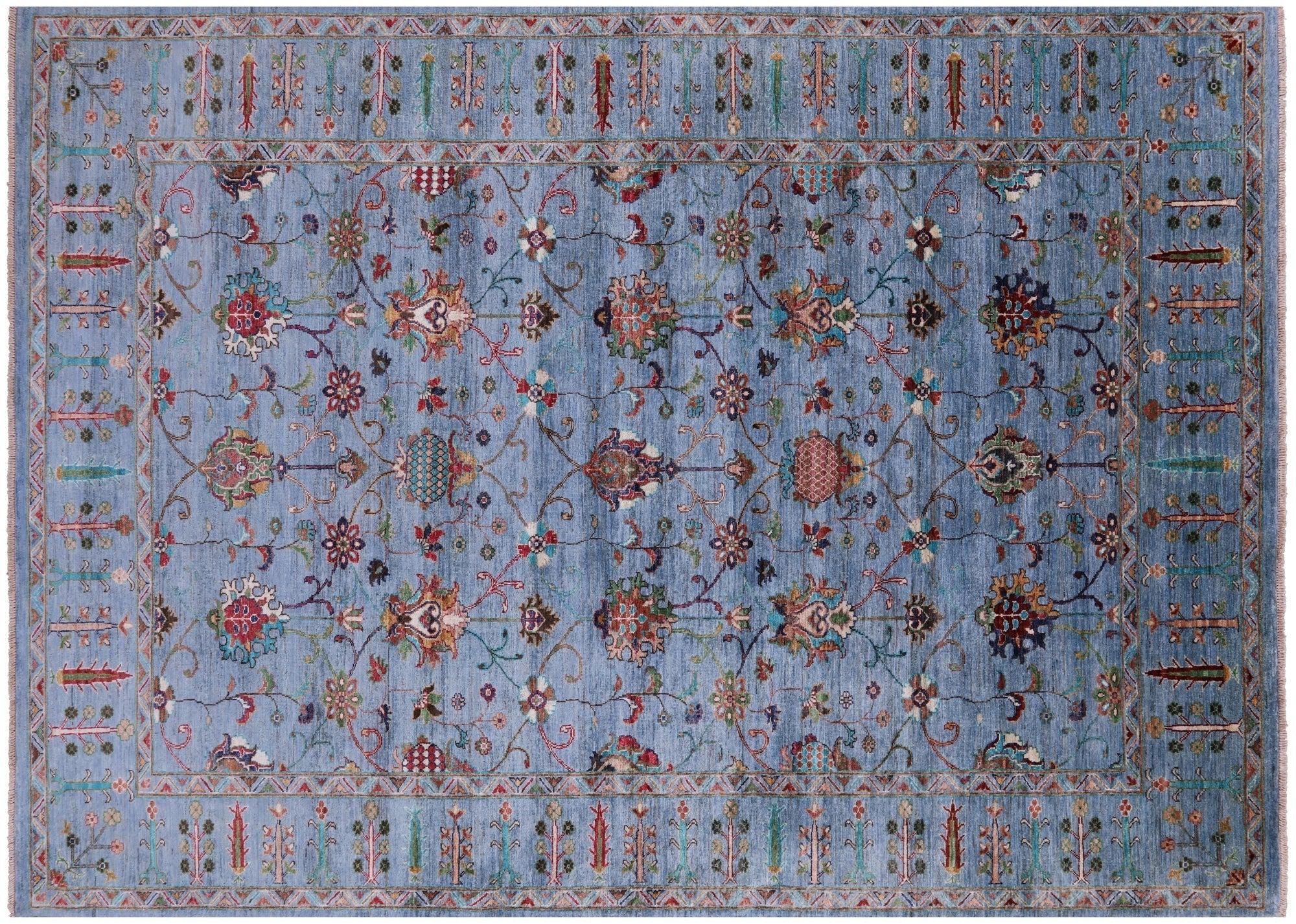 Blue 6' 10" X 9' 9" Persian Tabriz Hand-Knotted Wool Rug - Q16391