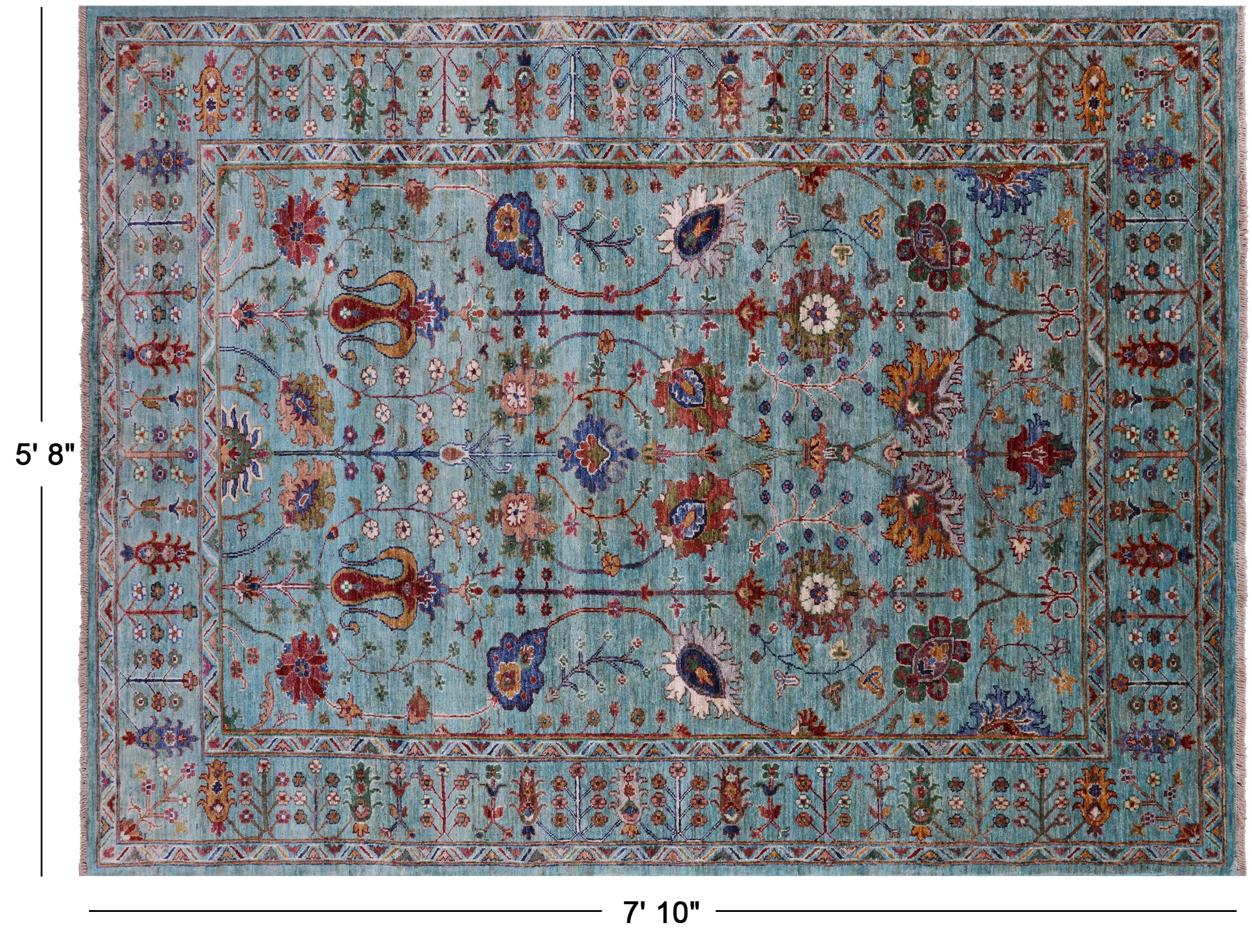 Blue 5' 8" X 7' 10" Persian Tabriz Hand Knotted Wool Rug - Q16399