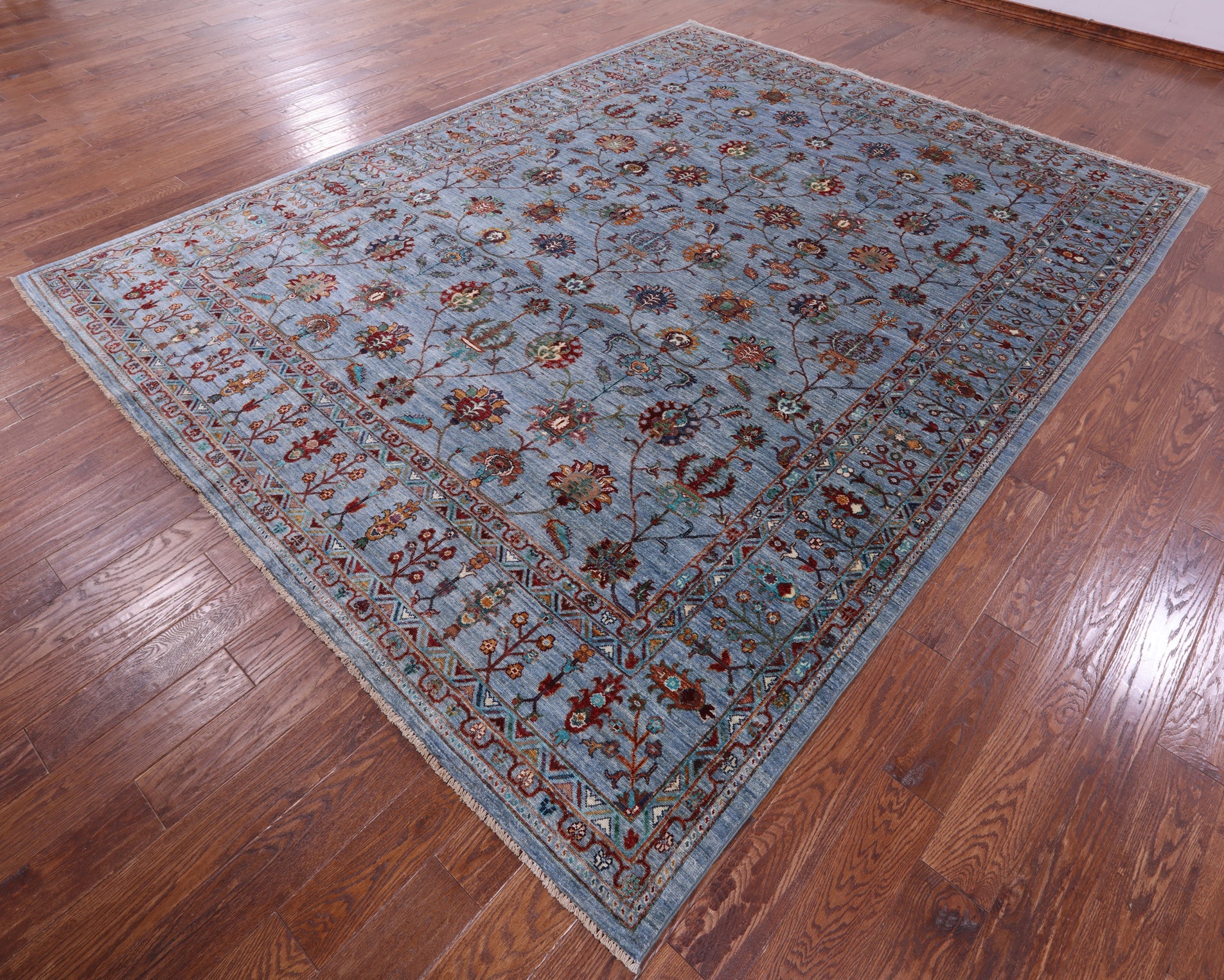 Blue Persian Tabriz Hand-Knotted Wool Rug 8' 11" X 11' 8" - Q16635