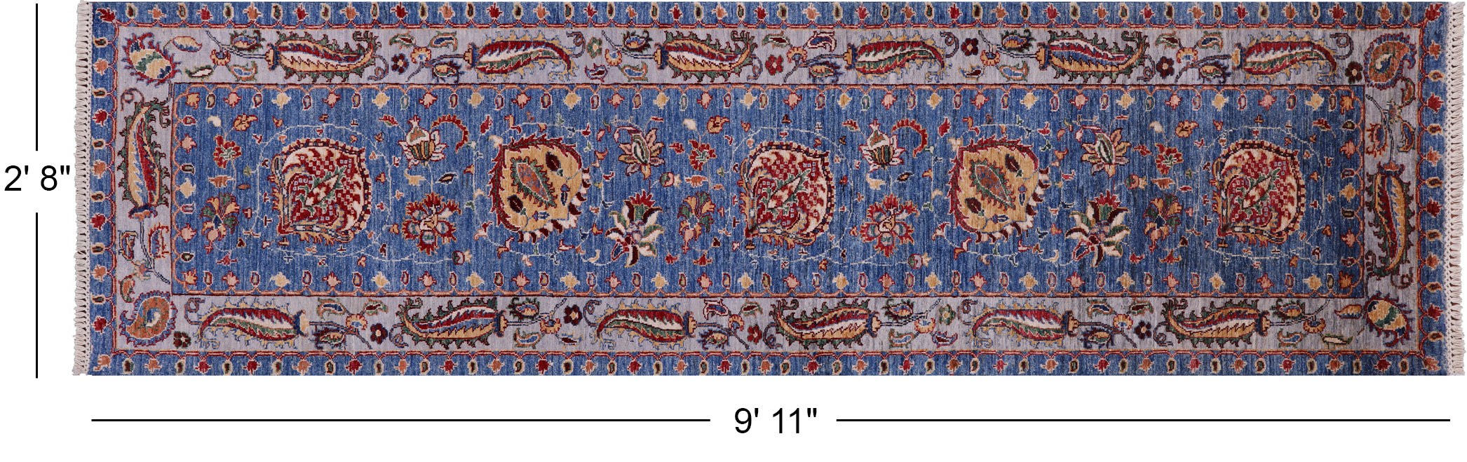 Blue Runner Persian Tabriz Handmade Rug 2' 8" X 9' 11" - Q10070