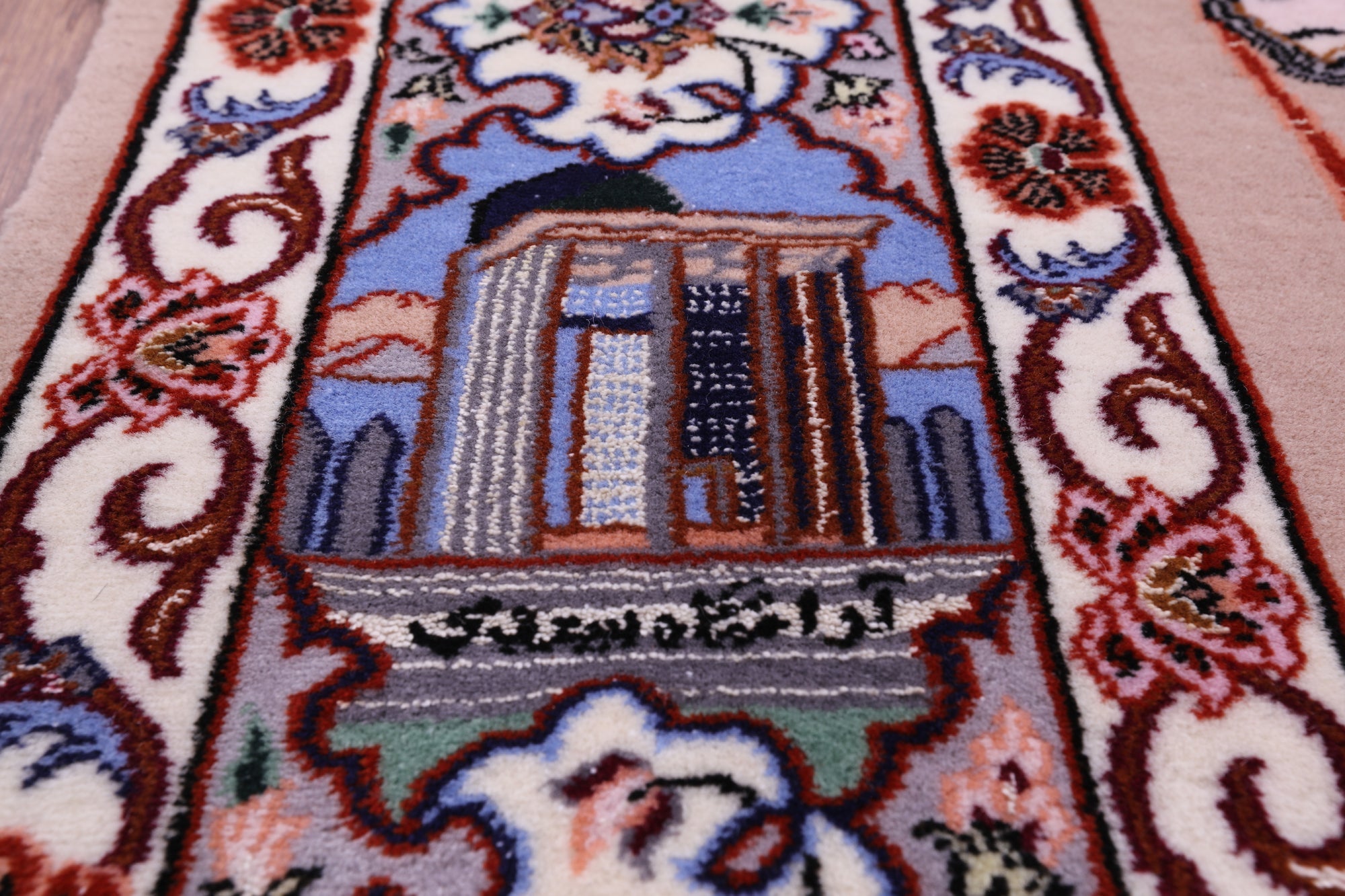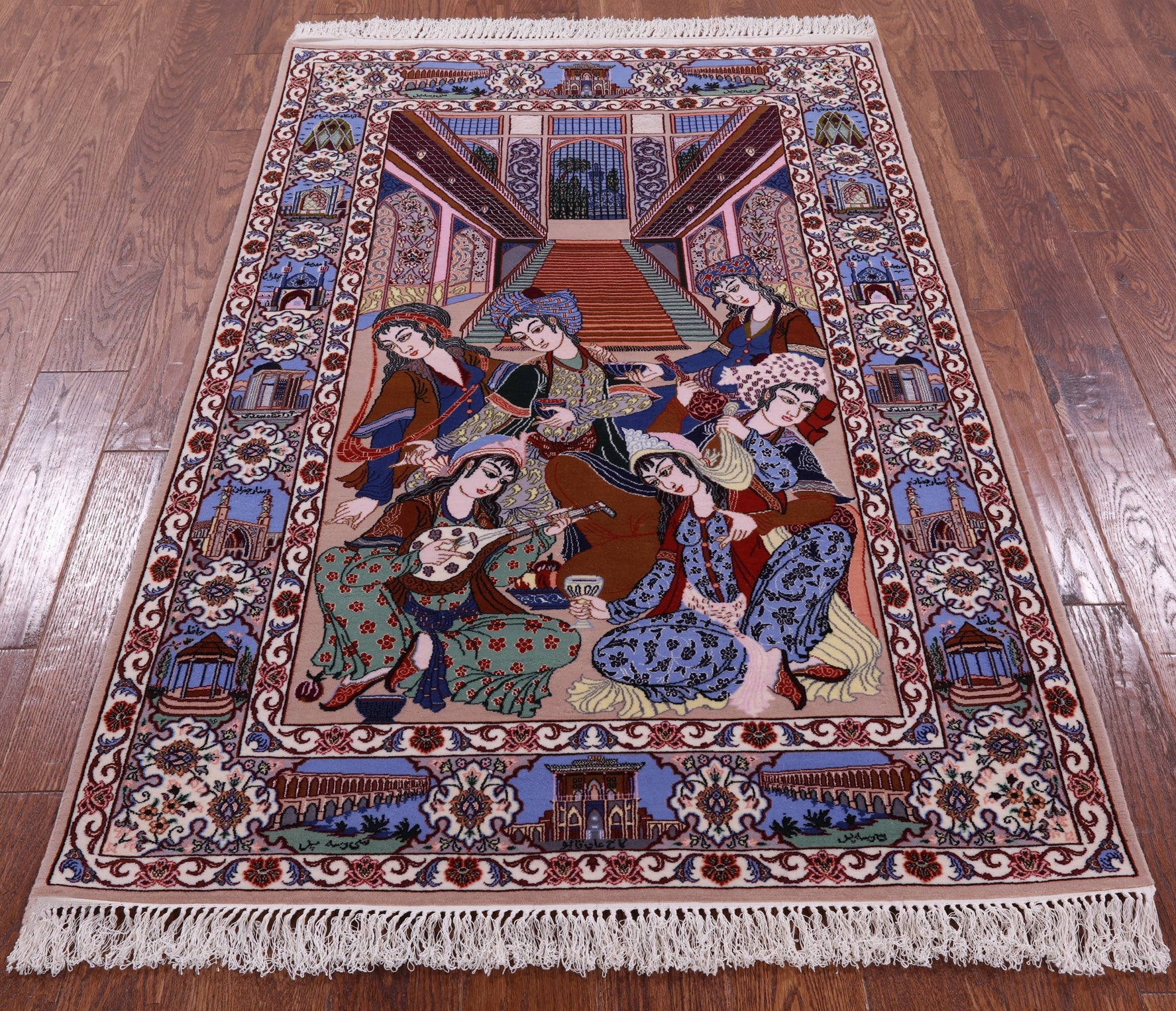 3' 7" X 5' 5" Pictorial Scene Persian Isfahan Signed Hand Knotted Wool & Silk Rug - SA2756 is backordered and will ship as soon as it is back in stock.