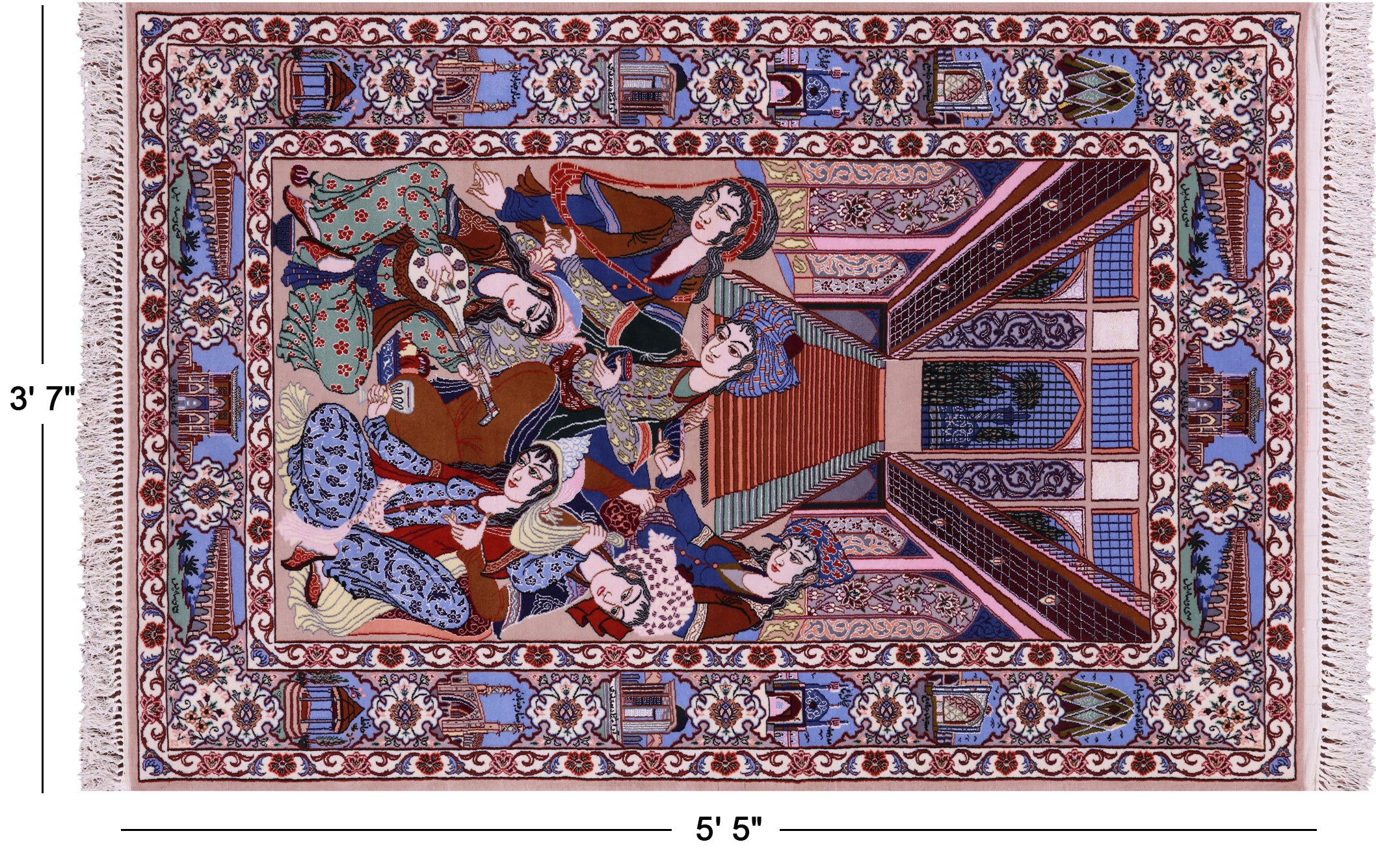 3' 7" X 5' 5" Pictorial Scene Persian Isfahan Signed Hand Knotted Wool & Silk Rug - SA2756