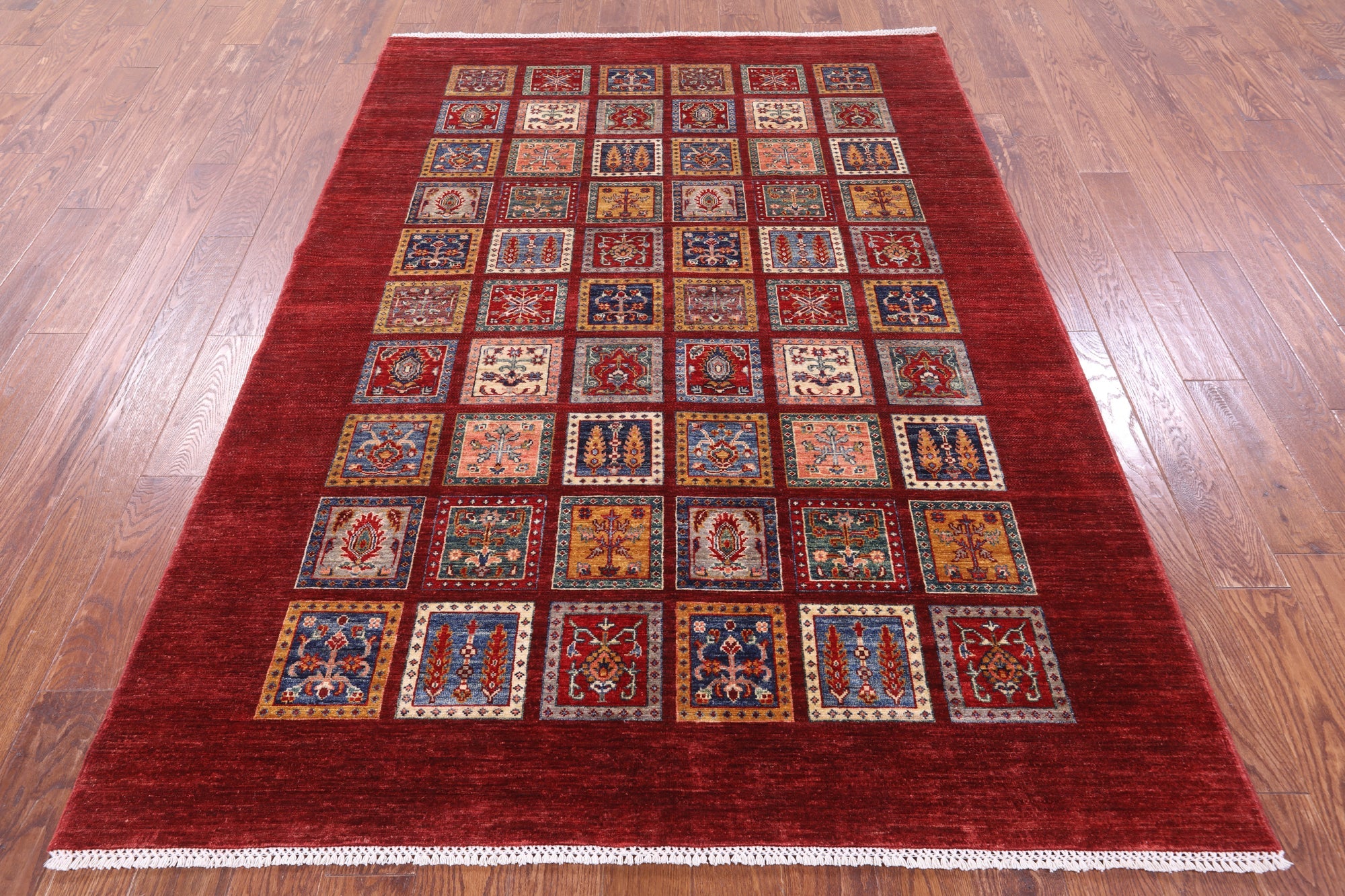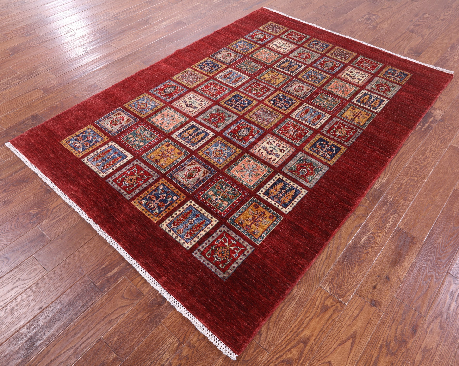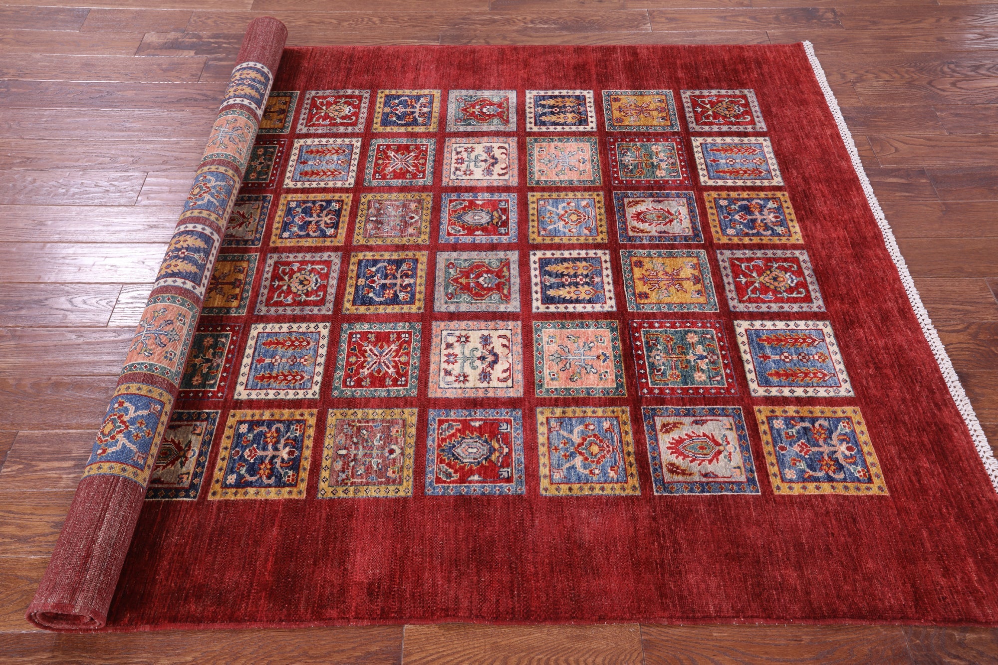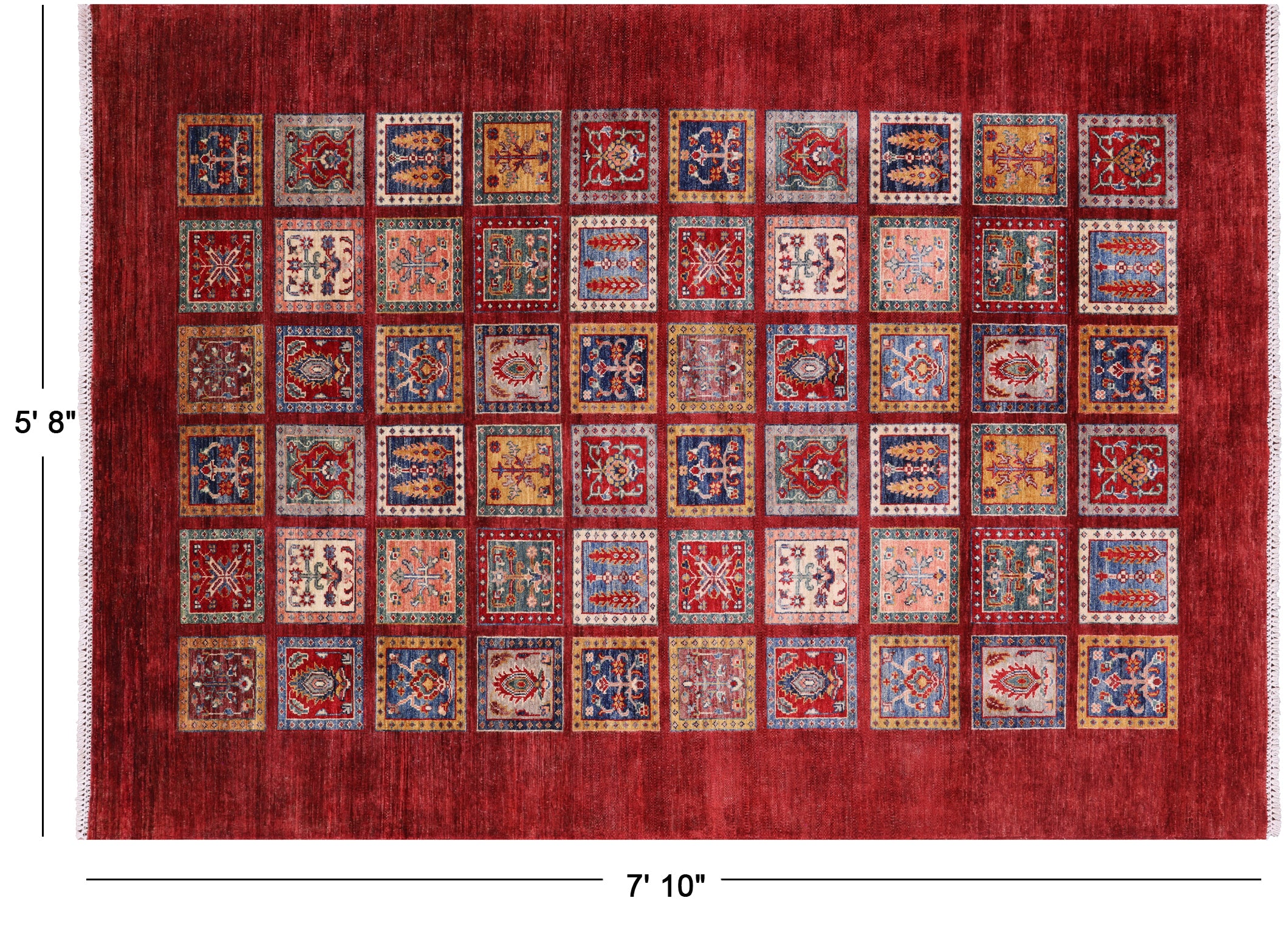 Red Hand Knotted Persian Garden Design Wool Rug 5' 8" X 7' 10" - Q16151