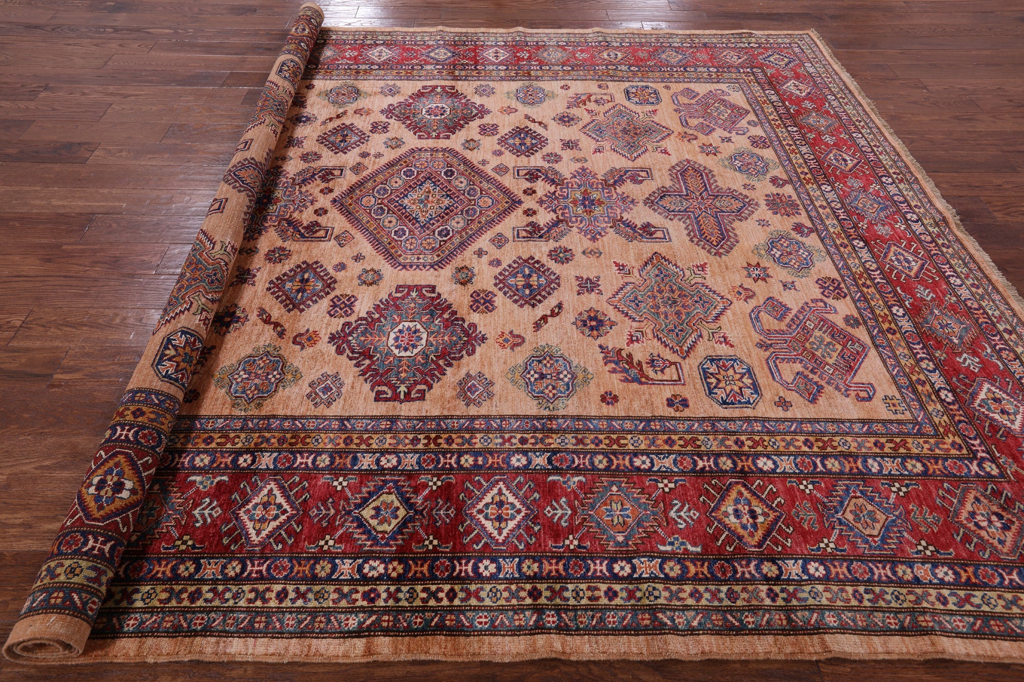 Kazak Rugs are popular for their stunning geometric designs & high quality dyes. Kazak patterns tend to be red, yellow/gold and blue. Designs include, but are not limited to animals, flowers, medallions, & iconic figures such as geometric people/ and animals & symbolic motifs.