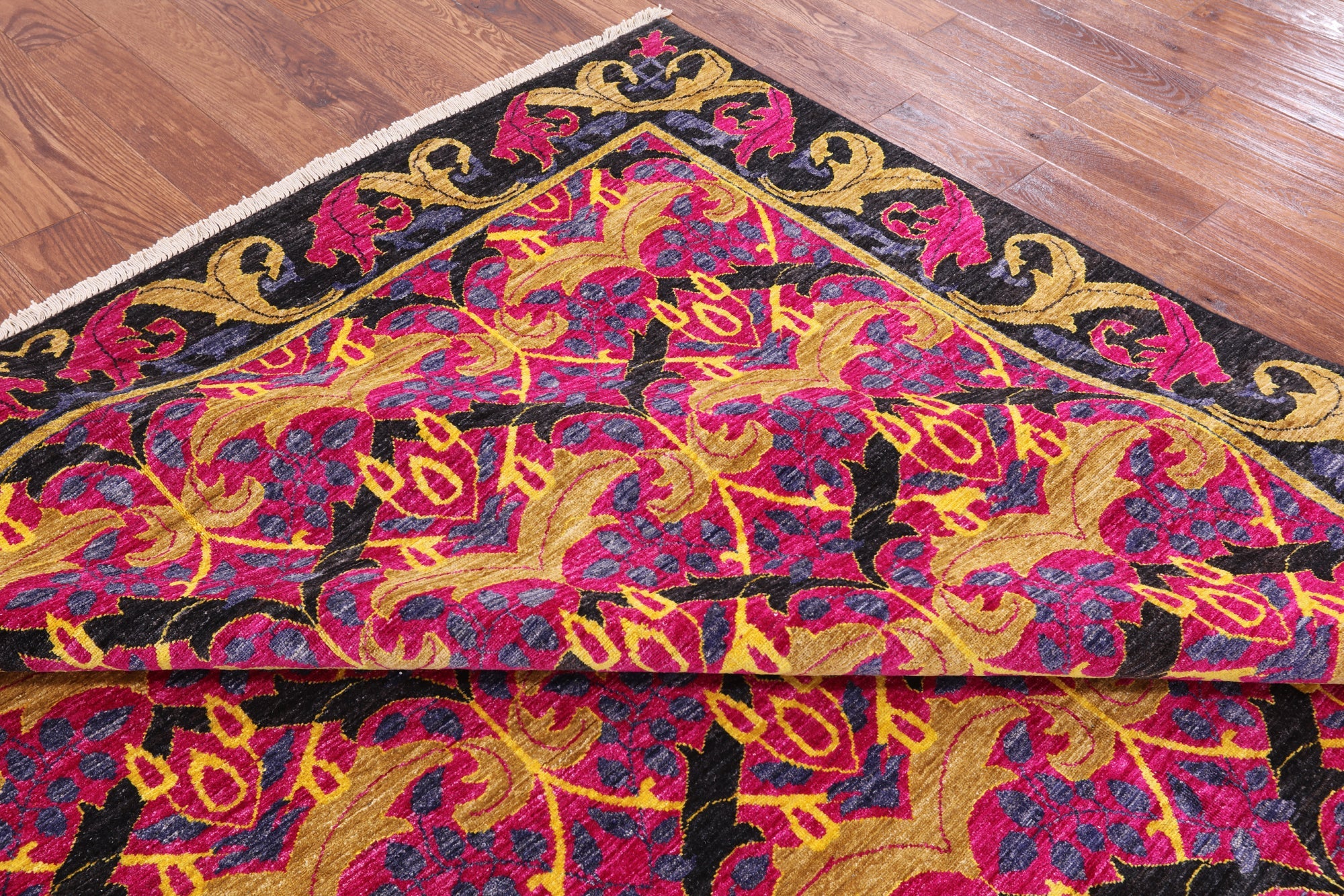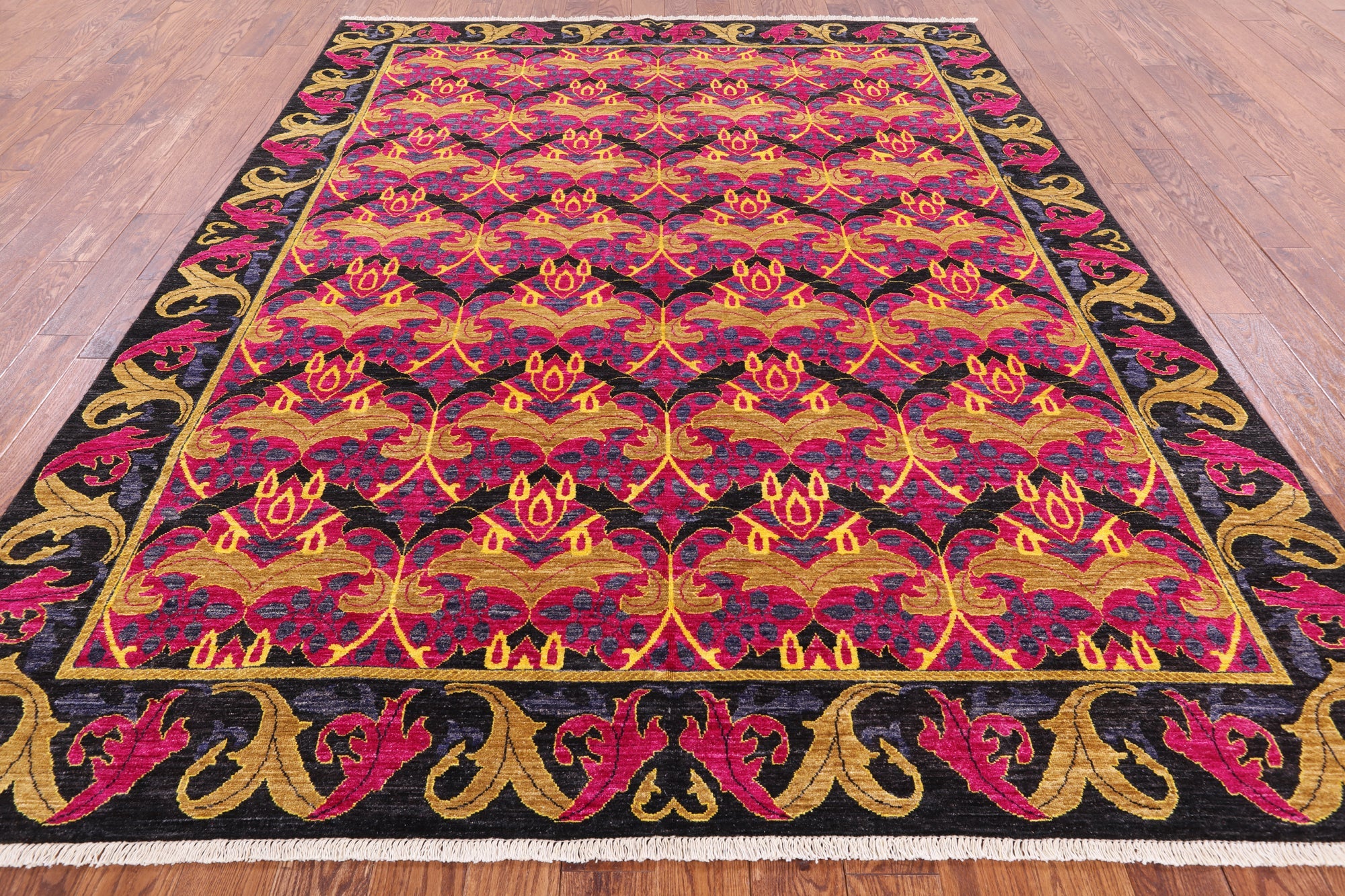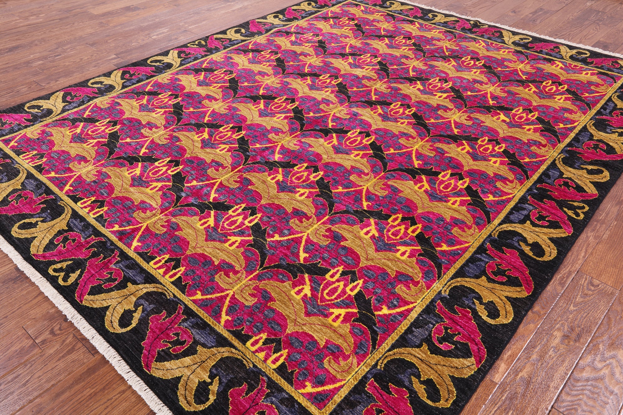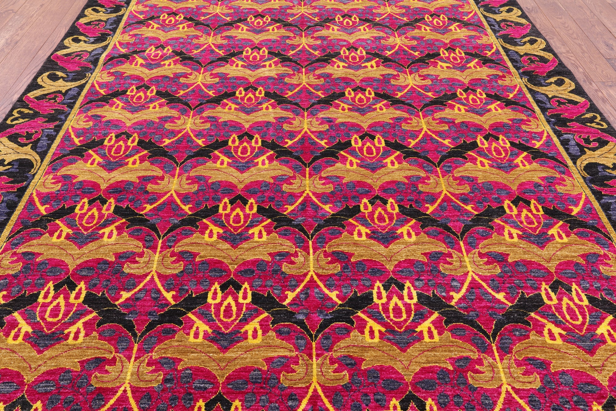 William Morris design are part of arts and crafts movement often including natural forms. These 19th and early 20th century designs are distinctive for their stylized natural forms, their symmetry and their vibrant colors. William Morris patterns are based on nature such thistles, ginkgo leaves, willow trees and flowers. These modern hand knotted rugs are woven with high quality wool, silk or both.
