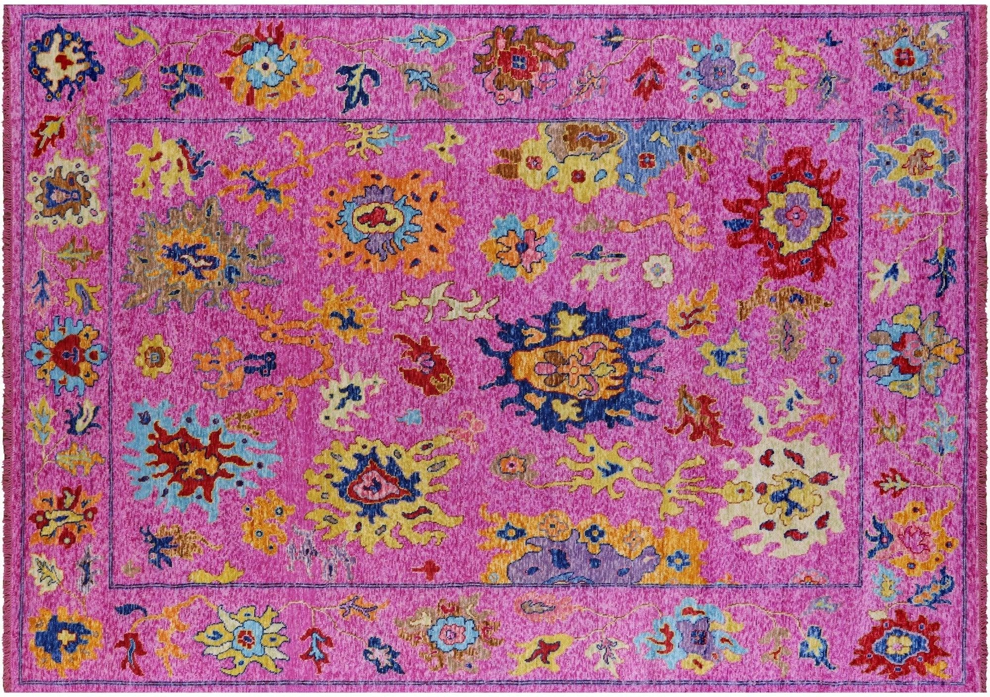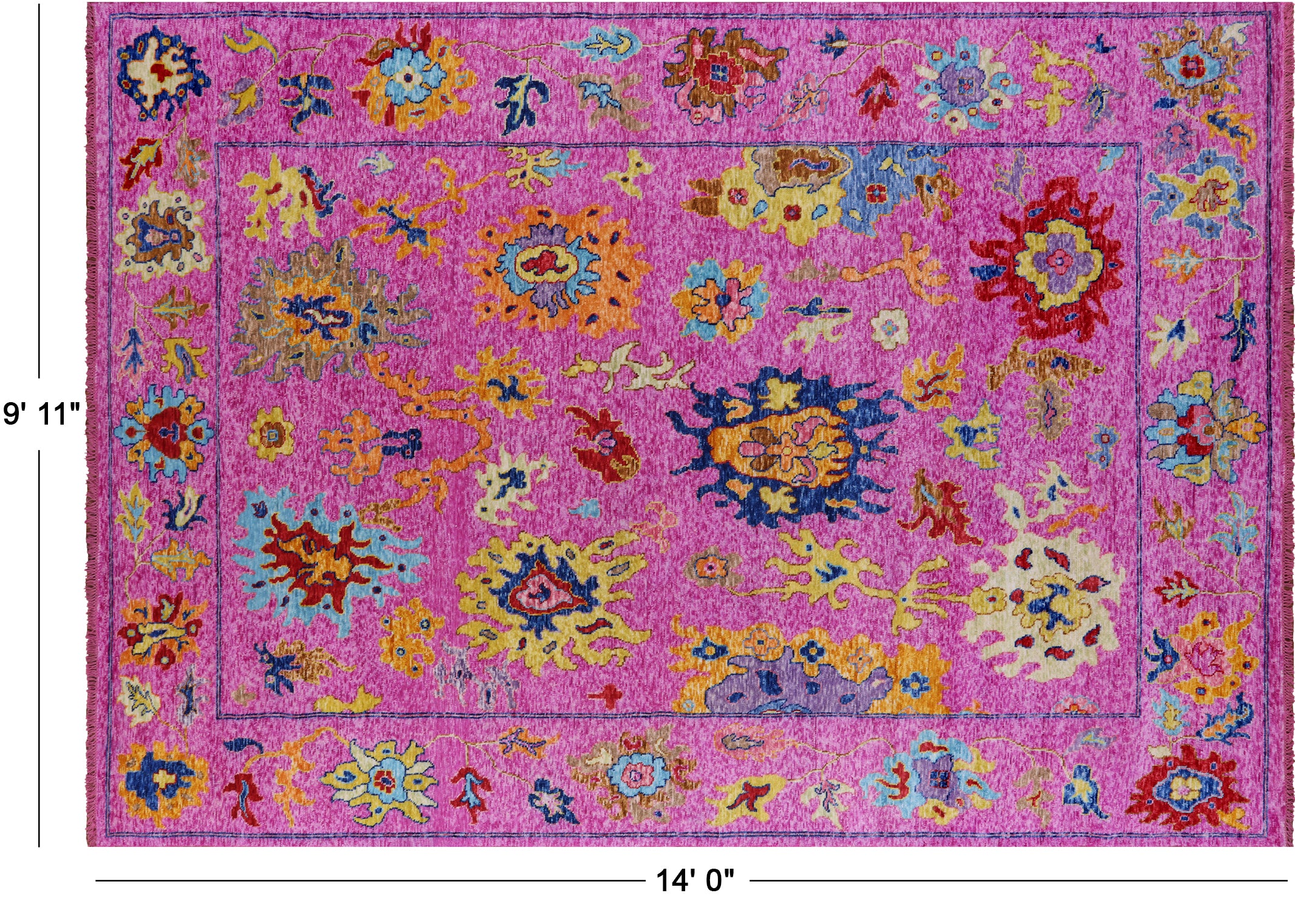 Pink Turkish Angora Oushak Handmade Wool Rug 9' 11" X 14' 0" - Q16116