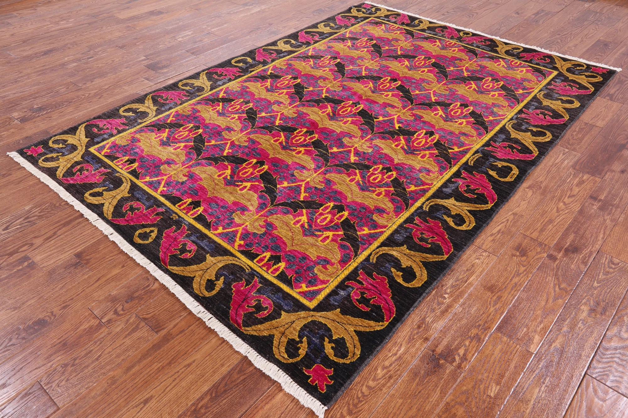 William Morris design are part of arts and crafts movement often including natural forms. These 19th and early 20th century designs are distinctive for their stylized natural forms, their symmetry and their vibrant colors. William Morris patterns are based on nature such thistles, ginkgo leaves, willow trees and flowers. These modern hand knotted rugs are woven with high quality wool, silk or both.