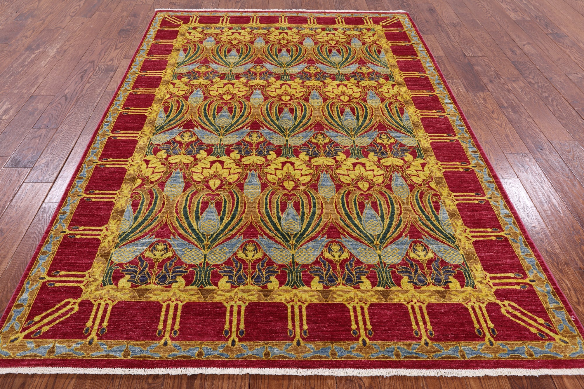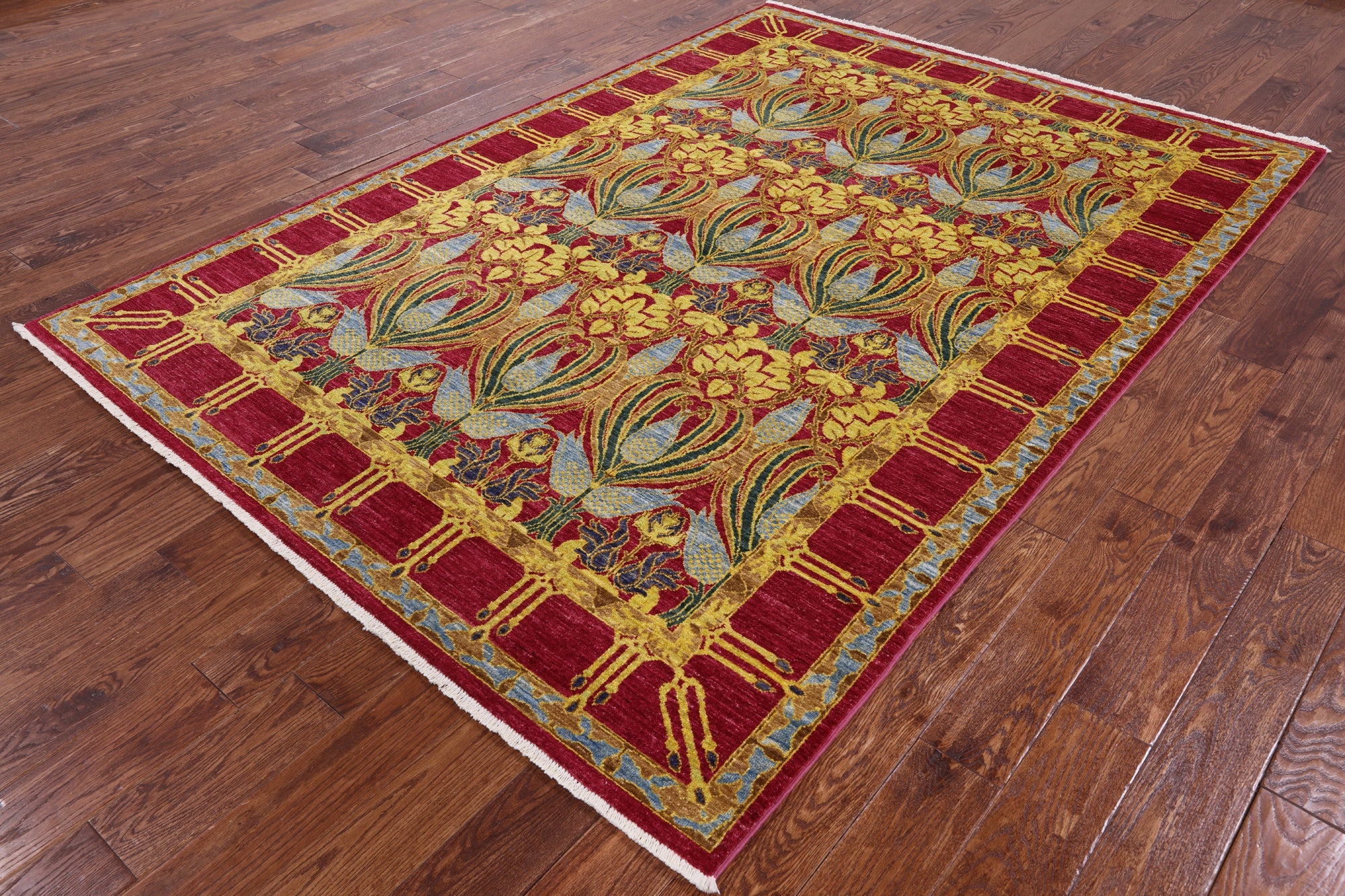 William Morris design are part of arts and crafts movement often including natural forms. These 19th and early 20th century designs are distinctive for their stylized natural forms, their symmetry and their vibrant colors. William Morris patterns are based on nature such thistles, ginkgo leaves, willow trees and flowers. These modern hand knotted rugs are woven with high quality wool, silk or both.