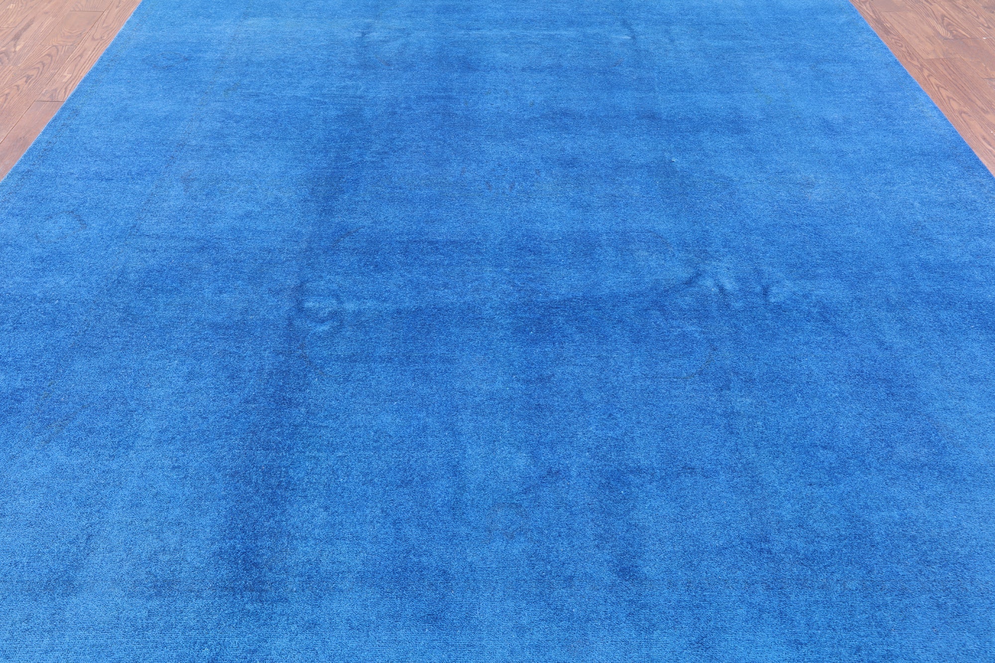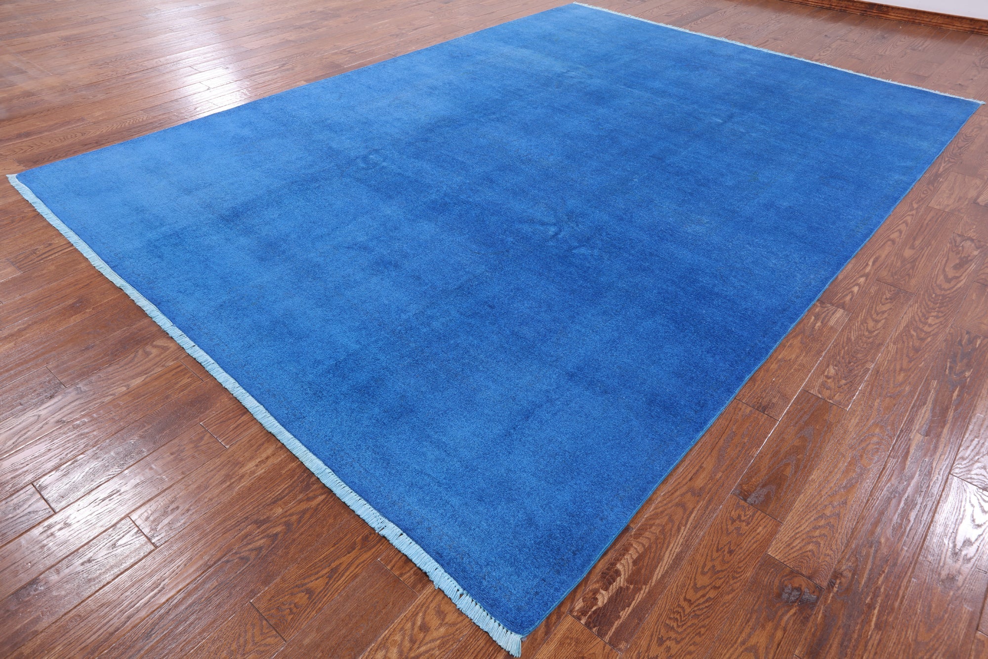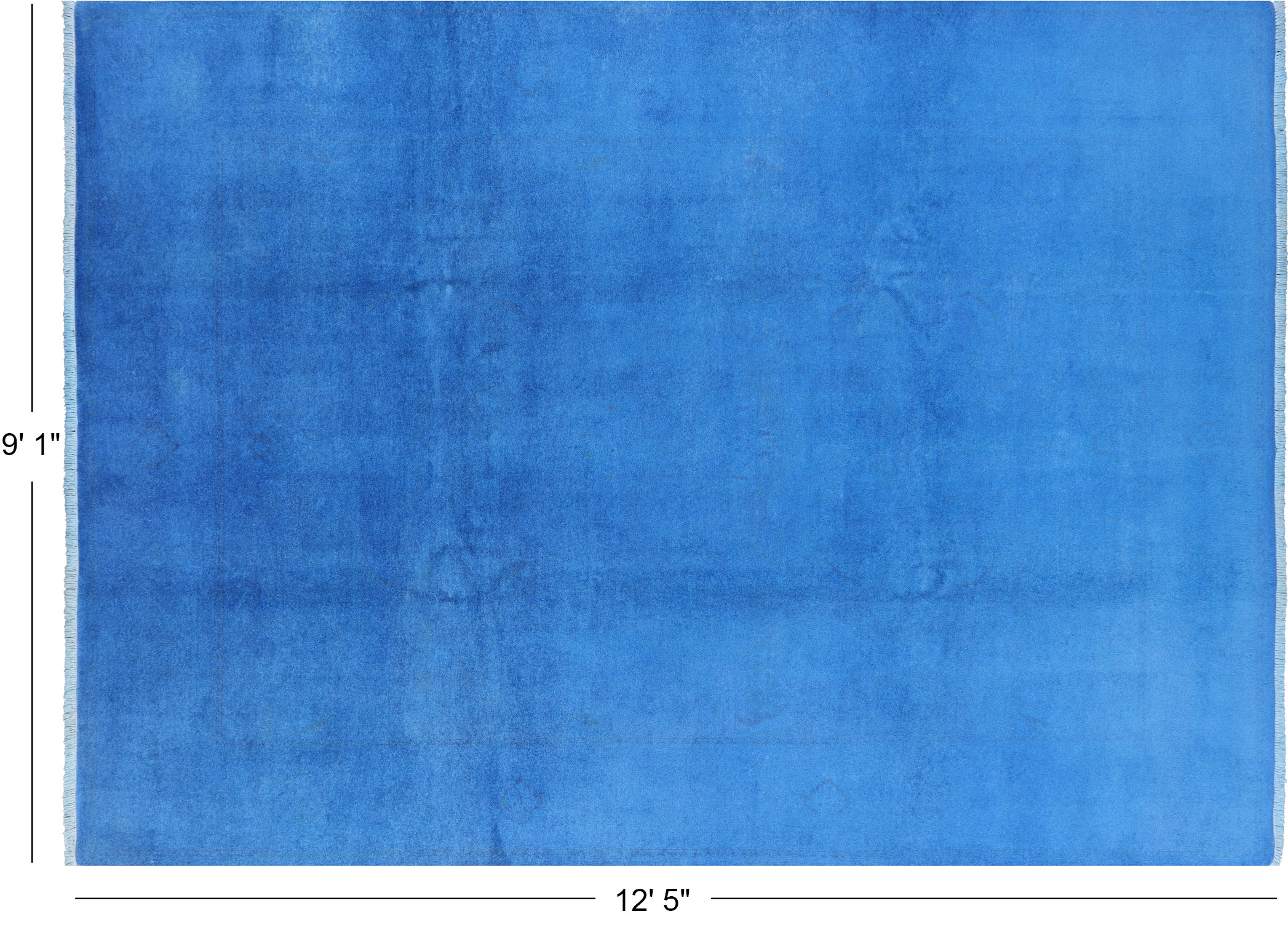 Blue 9' 1" X 12' 5" Hand Knotted Full Pile Overdyed Wool Rug - PB4814