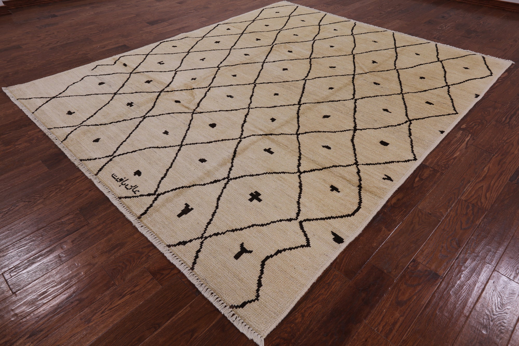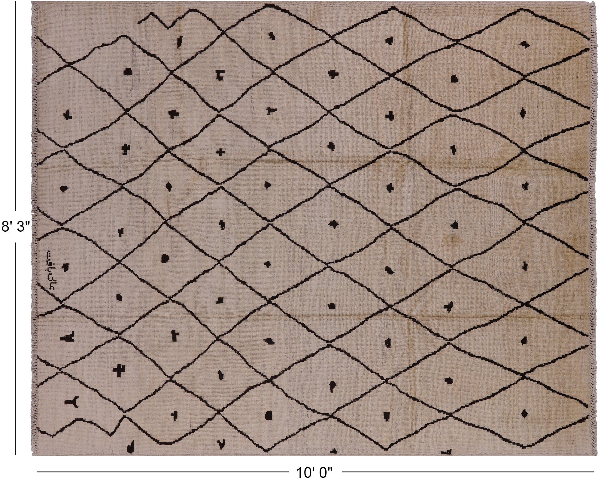 Ivory 8' 3" X 10' 0" Signed Moroccan Handmade Wool Area Rug - P4877
