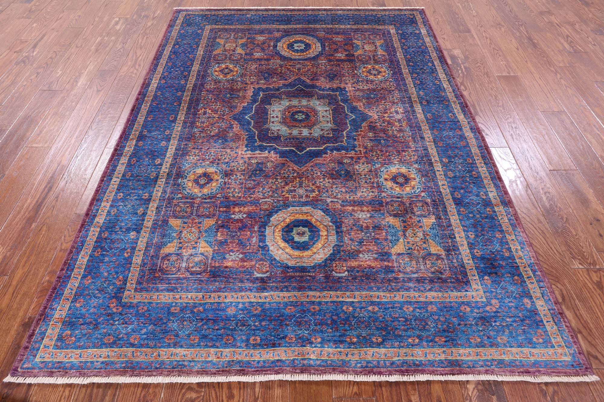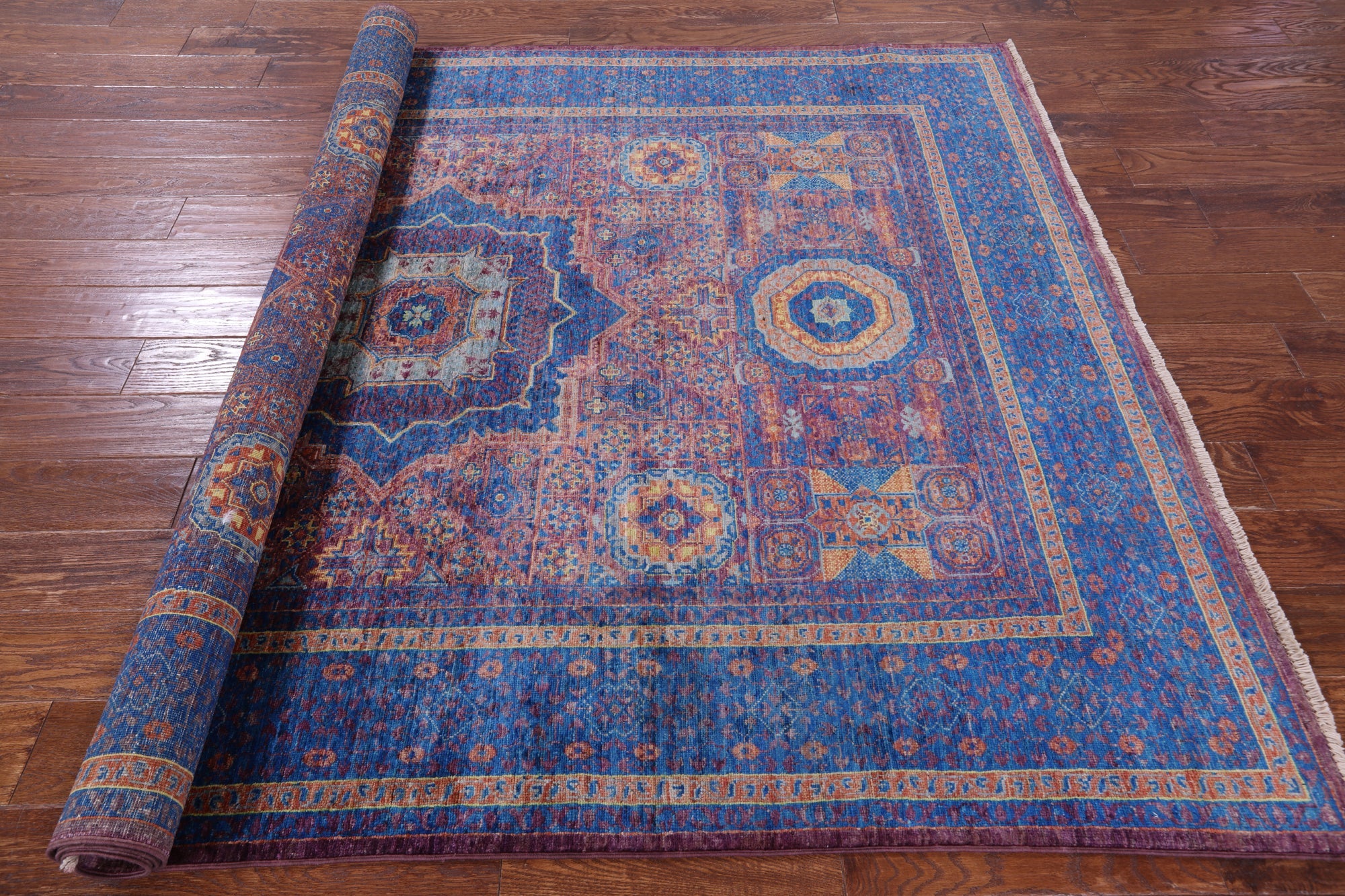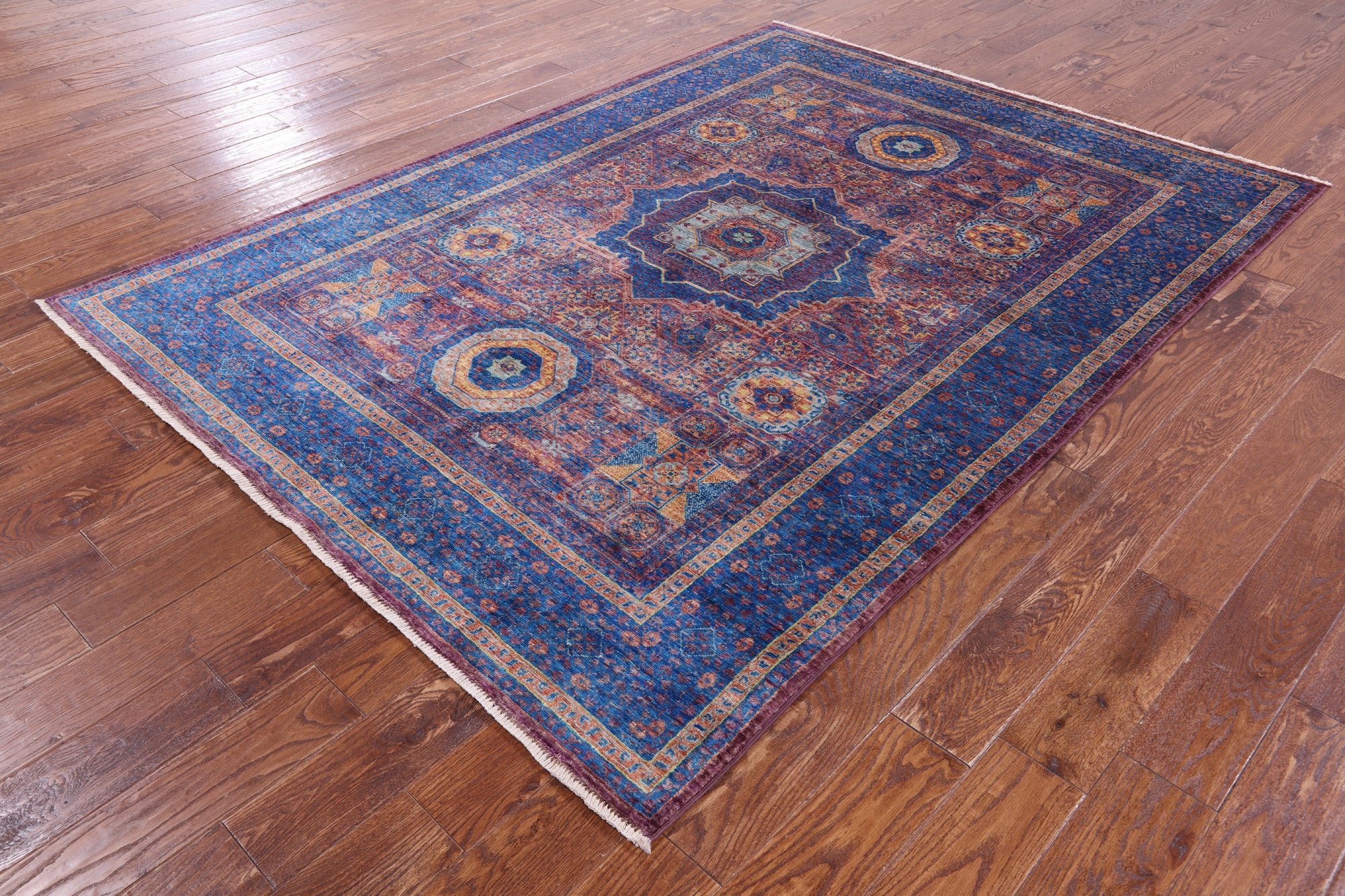 Purple 5' 9" X 7' 11" Mamluk Geometric Hand-Knotted Rug - Q13991 is backordered and will ship as soon as it is back in stock.