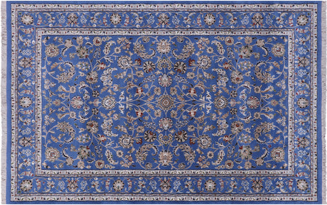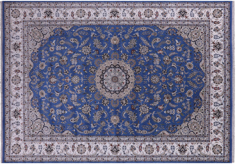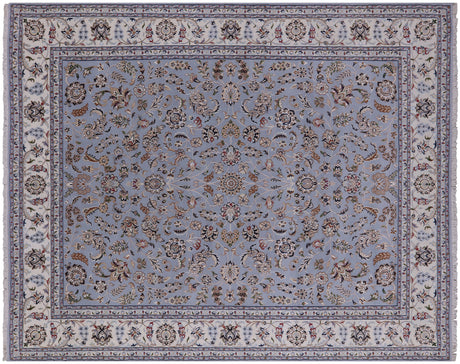 Blue 6' 0" X 9' 2" Persian Nain Handmade Wool & Silk Rug - Q23748